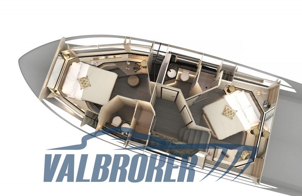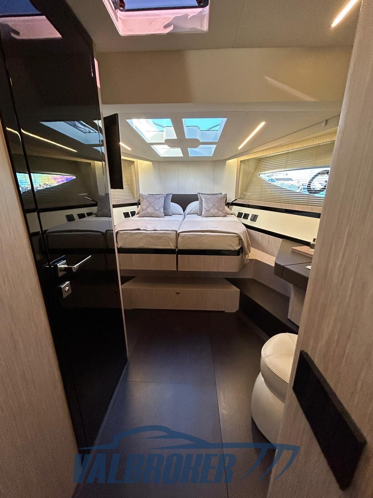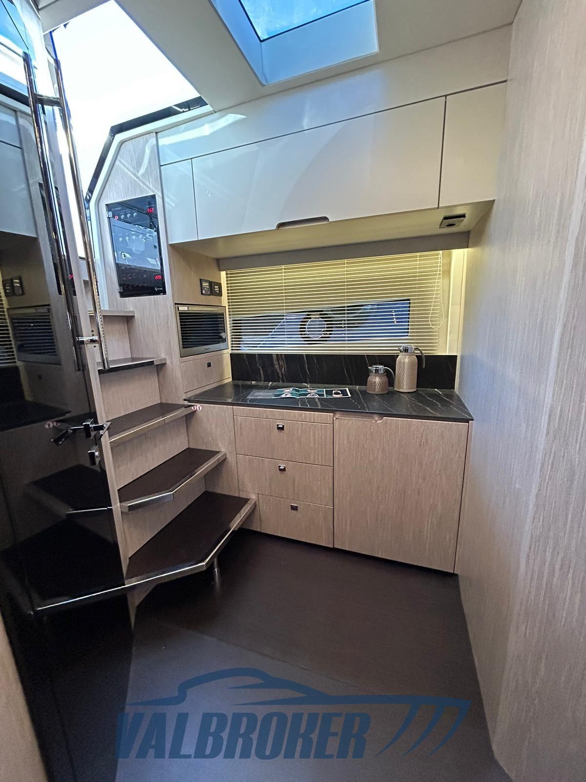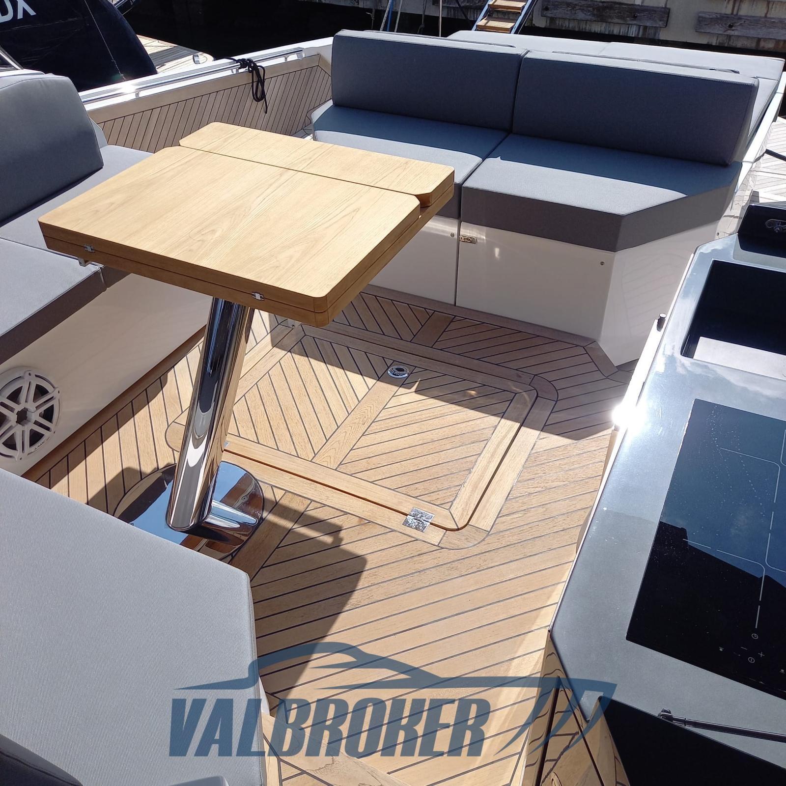 Ancre (elettronica DPS), Auto Dynamic Trim Interceptor (Volvo Penta), Eau sous pression, 4 Batteries, Taquets pliants, Passavant en teck, Douche de cockpit, Propulseur d'étrave (proporzionale), Flaps électriques, Hard top, Extincteur(s) fixe(s), Lavabo dans le cockpit, Éclairage de courtoisie, Spots sous-marins, Passerelle (con gradini, idraulica a scomparsa), Plateforme arrière (tender lift 400 kg), 2 Pompe de cale automatique, Porte latérale, Cockpit en teck, Guindeau électrique, Echelle de bain (idraulica), table de cockpit (teak + tavolo prua), T-Top (nero lucido in carbonio), Winch électrique avant.