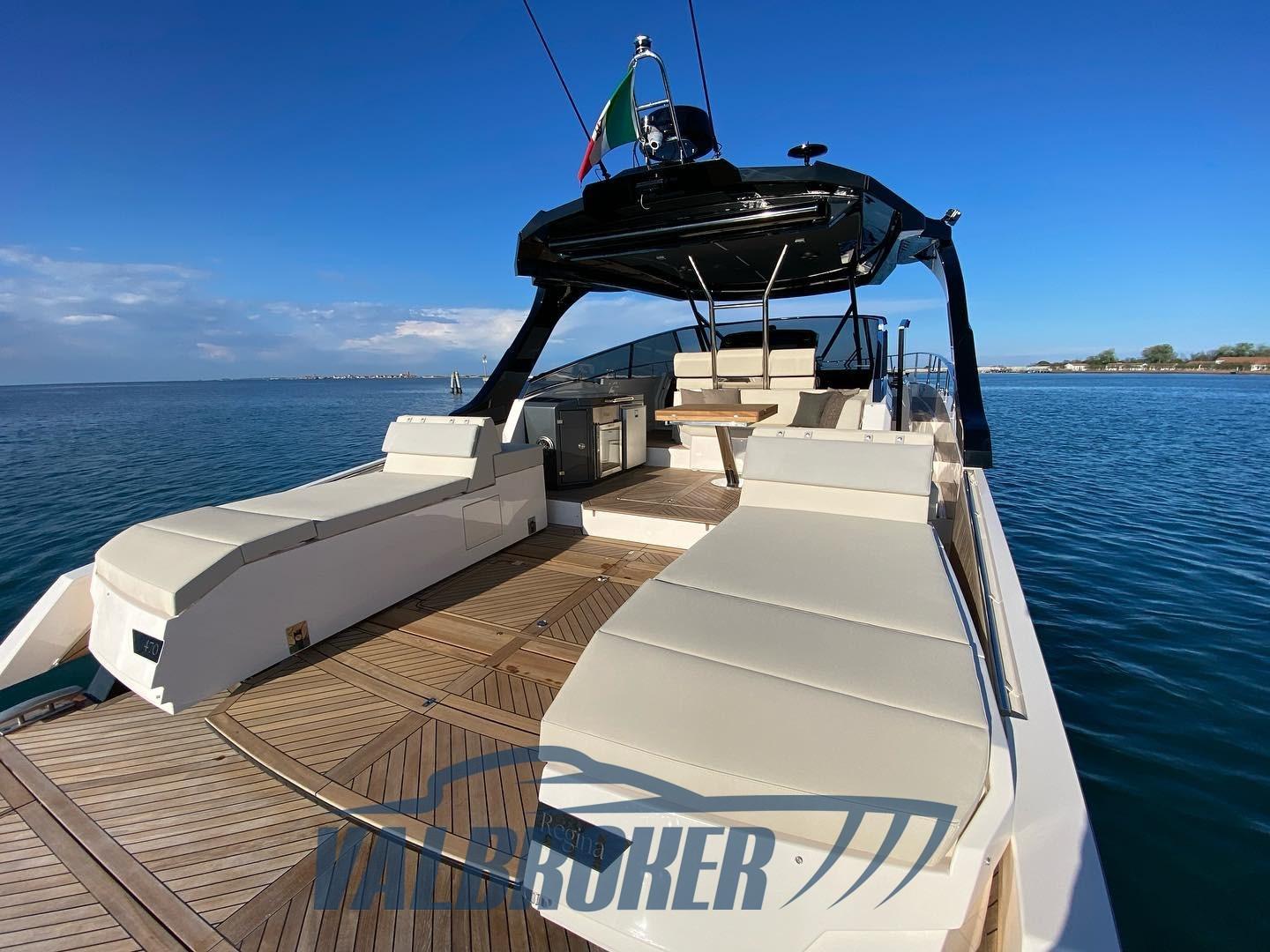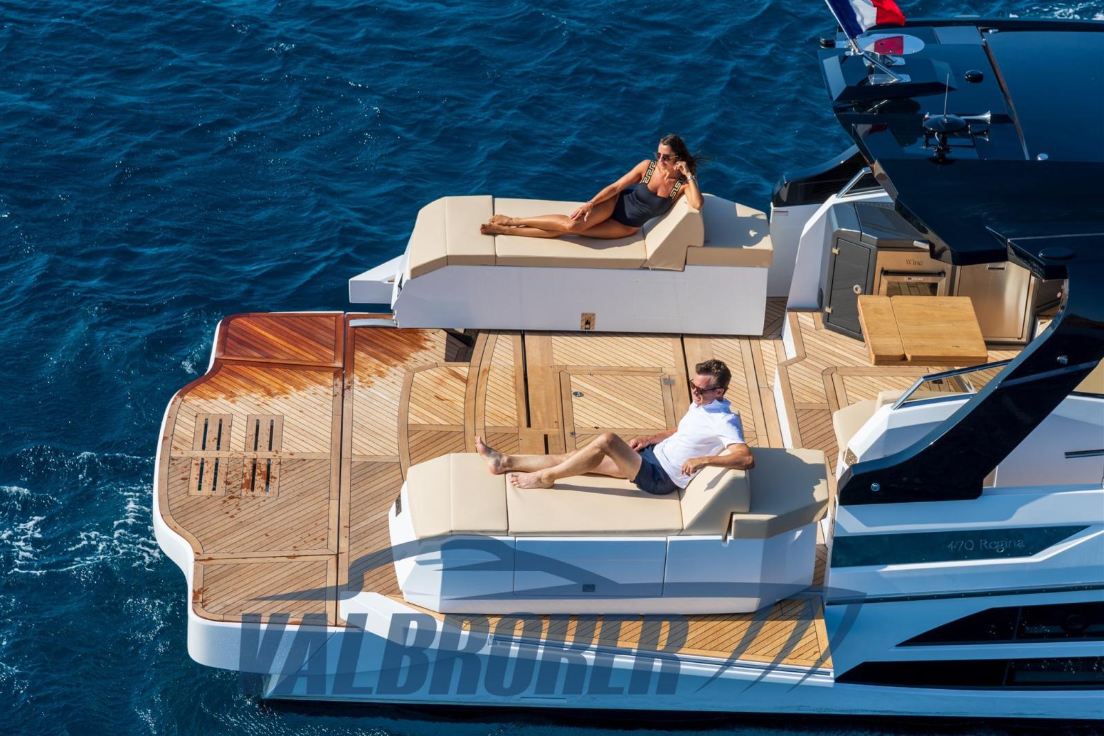 FIM Regina 470 un yacht unique et innovant MADE IN ITALY. Il a remporté le prix de la « révélation de l’année » au salon nautique de Cannes 2023. BATEAU DE DÉMONSTRATION. Profitez au maximum des espaces extérieurs, grâce aux mouvements à l’arrière et à l’avant. Le bain de soleil d’étrave, en se traduisant latéralement, crée un véritable espace convivial à l’avant. Le salon arrière garantit une grande polyvalence, grâce à la possibilité de configurer la dînette extérieure de différentes manières. Le cockpit arrière peut être agrandi grâce à un mécanisme de division du bain de soleil : cela crée une zone centrale spacieuse, qui assure une habitabilité maximale.