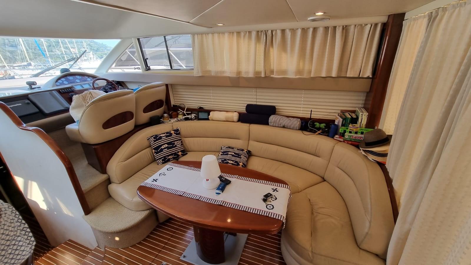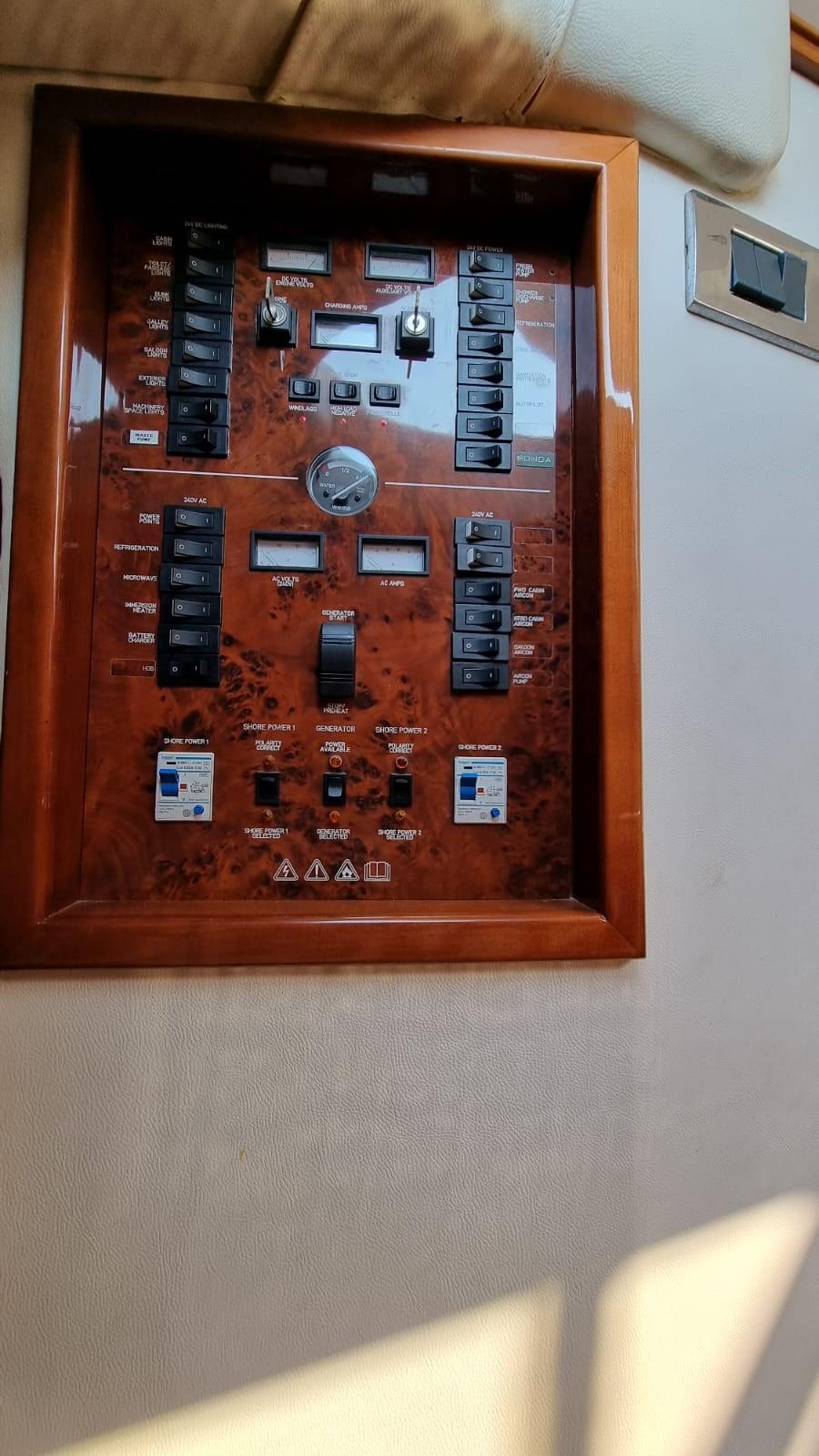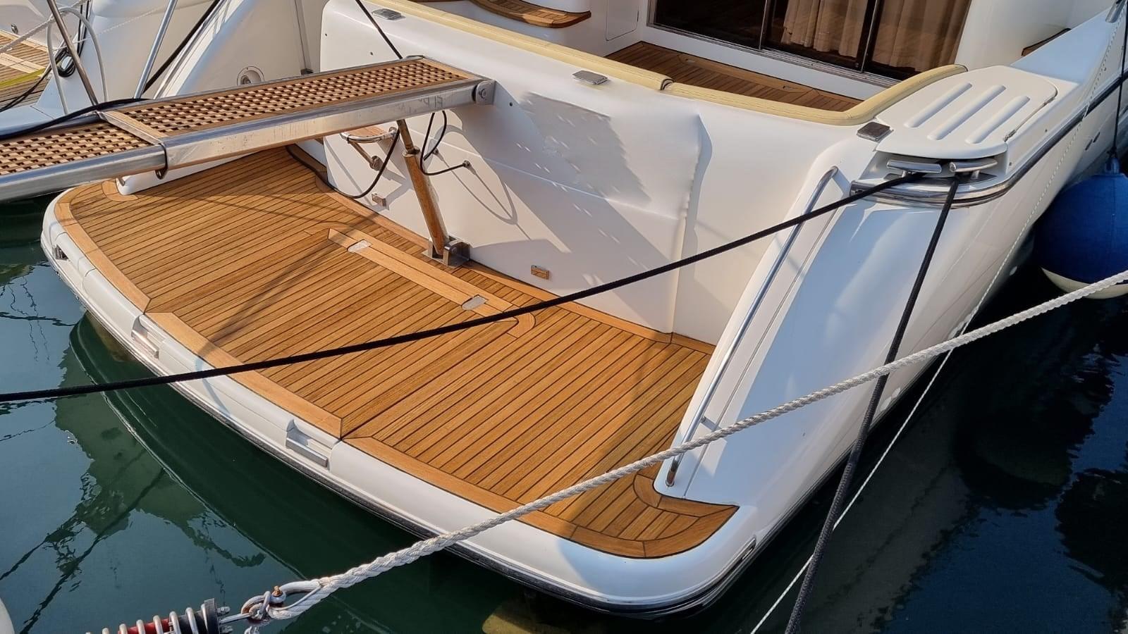 Alarme moteur, Alarme de pompe de cale, Eau sous pression, 6 Batteries (Sostituite 2020 Gel), 2 Chargeur de batterie (Servizi e batt. Gtuppo), Douche de cockpit, Double barre à roue, Phare de poursuite, Flaps hydrauliques, Extincteur(s) fixe(s) (A gas), Indicateurs de flaps, Lavage de chaine, Éclairage de courtoisie, Passerelle (Idraulica), Plateforme arrière, Pompe de cale automatique, Pompe de cale manuelle, Porte latérale, Cockpit en teck (Nuovo 2019), Prise de quai, Onduleur, Répétiteur électronique, Rollbar, Guindeau électrique (Nuovo 2021), Echelle de bain, Annexe (2.50 mt con motore honda 4t nuovo 2021), Filières avec sortie latèrale, Winch électrique avant.