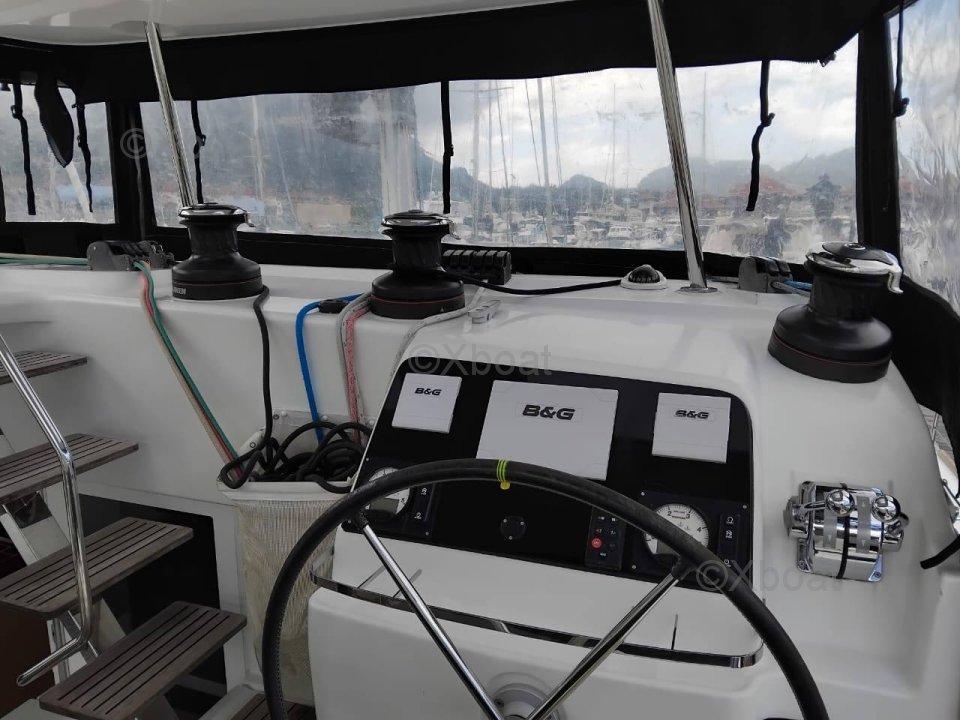 Ce Lagoon 450 S est visible et disponible aux Seychelles. Son emplacement est idéal pour des visites et des essais en mer.