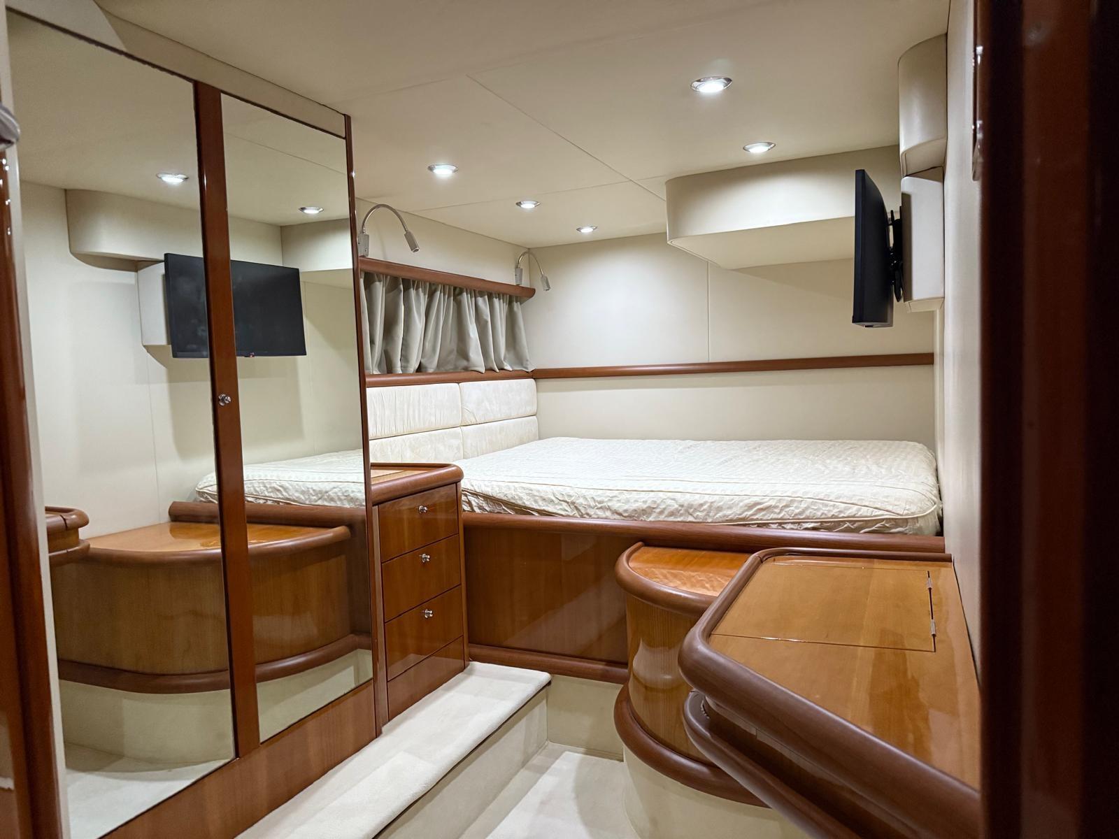 Elégant Sunseeker Predator 61 de 2002, coque blanche entièrement réaménagée en 2014 et propulsée par 2 x MAN 1100 common rail installés neufs en 2014. Équipé des équipements les plus modernes : GPS Axion 2 Pro-S12 (2025), antenne radar Cyclone 55wt (2025), onduleur 2000W (2025), générateur 15kW, batterie neuve (2025) et chargeur de batterie. L’équipement comprend un propulseur d’étrave et de poupe, une antenne satellite Raymarine, un enrouleur de câble électrique encore neuf. Confort au top avec 3 cabines, 2 salles de bains, garage et plate-forme plongeable, climatisation également dans le cockpit, cave à vin de 20 bouteilles, réfrigérateur à double tiroir, machine à glaçons, réfrigérateur et grill dans le cockpit. Également à bord se trouve un dessalinisateur de 140 l/h pour une autonomie maximale. Bateau plein d’accessoires, idéal pour des croisières dans le luxe et la sécurité totales.