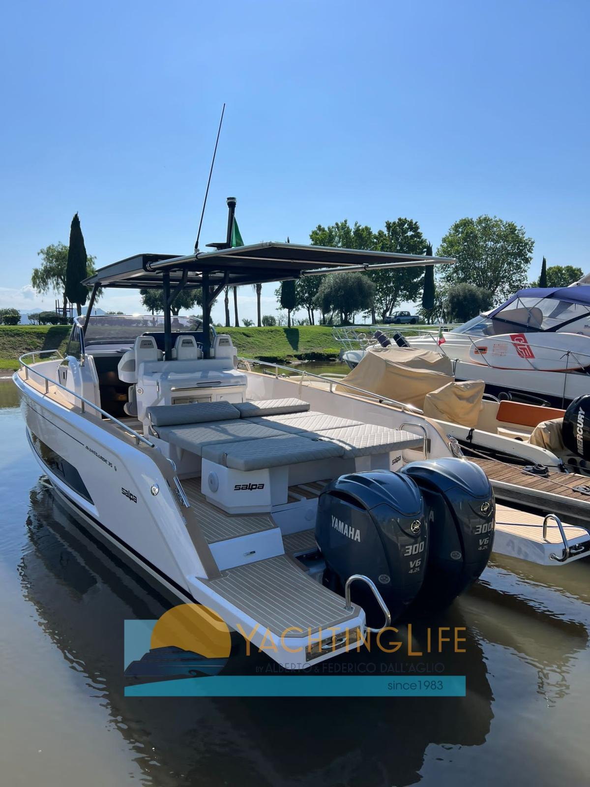Eau sous pression, 2 Douche de cockpit, Flaps électriques (Zip Wake), Indicateurs de flaps, Lavabo dans le cockpit, Pompe de cale automatique, Cockpit en teck (sintetico), Prise de quai, Guindeau électrique, 2 Echelle de bain, table de cockpit (elettrico), Corne.