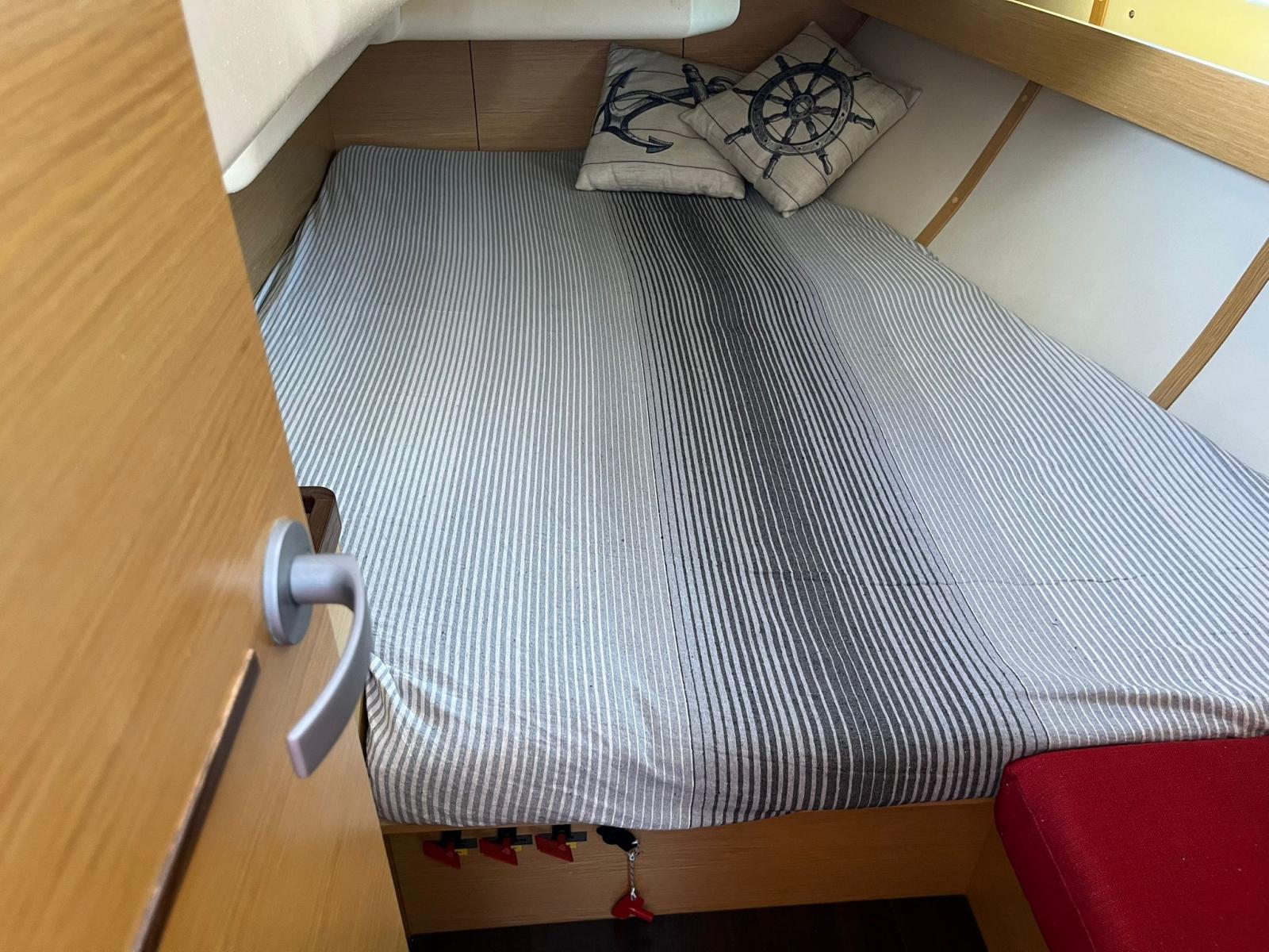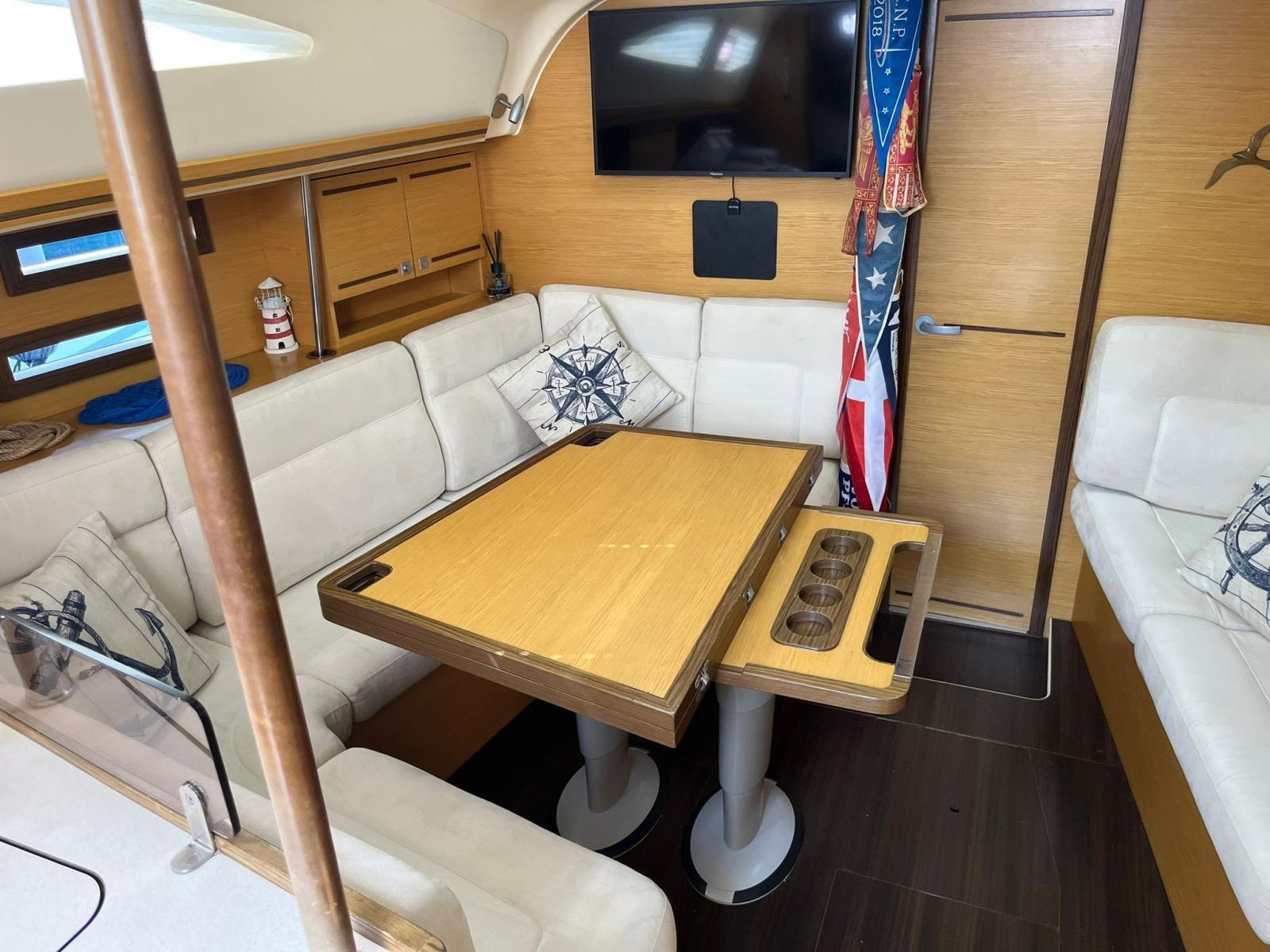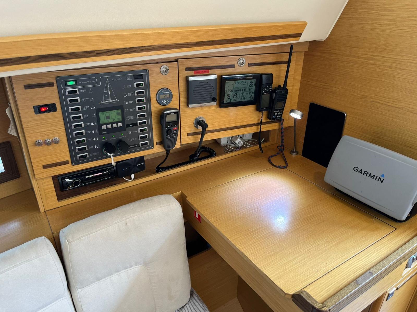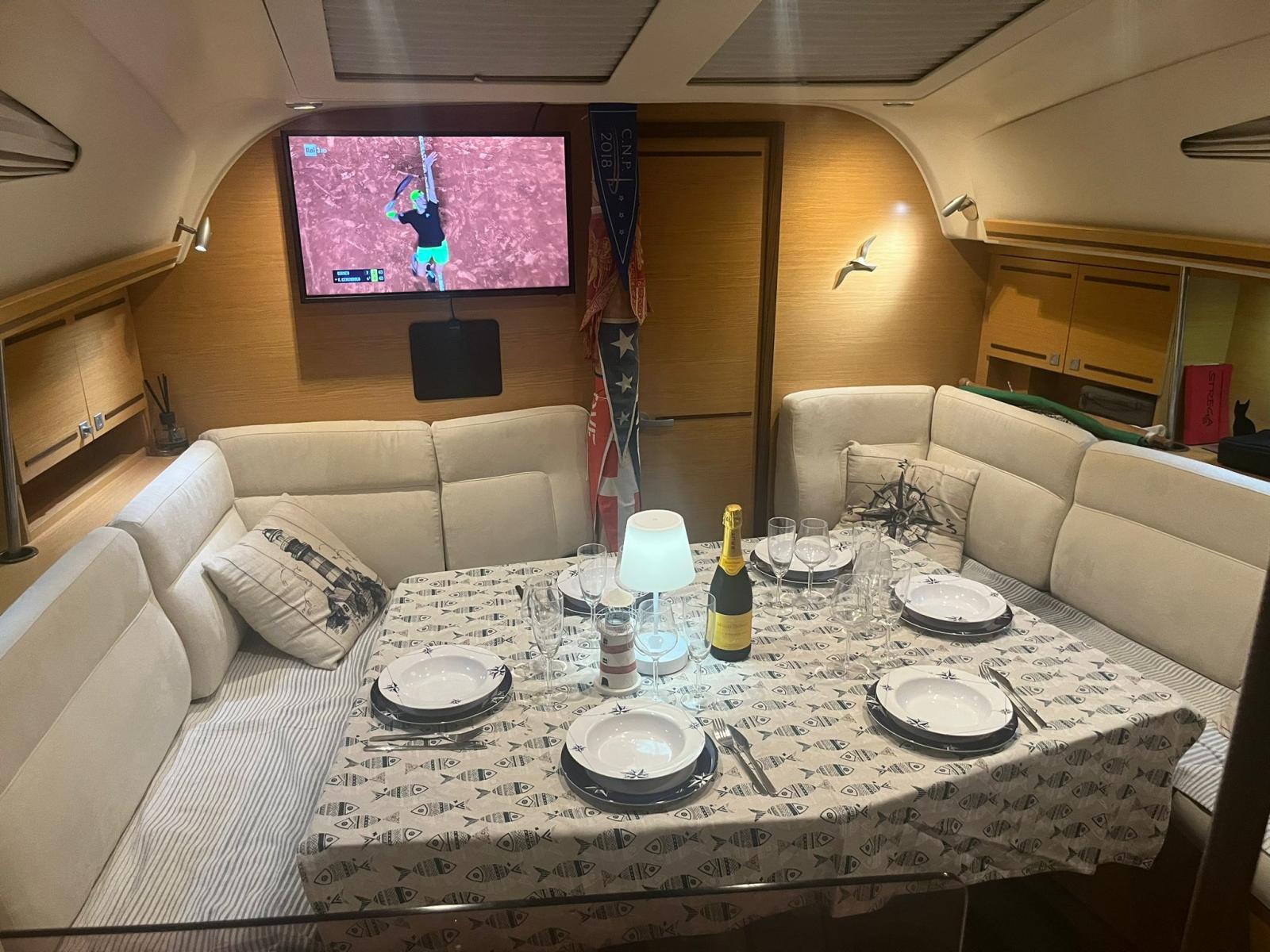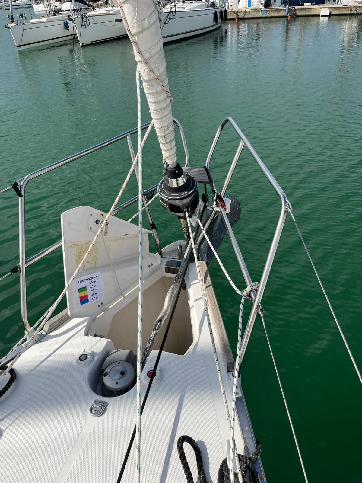 Alarme moteur, Alternateur, Ancre (50 METRI CATENA D 8), Eau sous pression, Batteries (2024), Câble d’alimentation à quai, Double barre à roue (CARBONIO), Passerelle (CARBONIO), Pompe de cale automatique, Cockpit en teck, Prise de quai, Guindeau électrique, Gréement monotoron, table de cockpit (A SCOMPARSA), Table pliante de salon, 4 Winch.