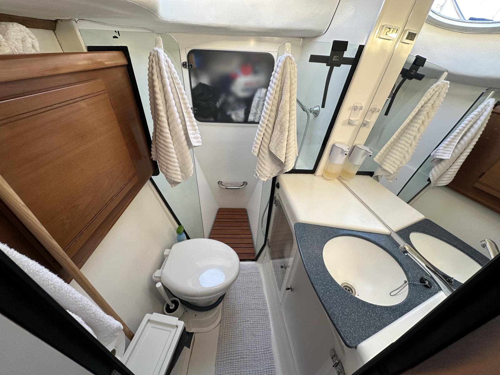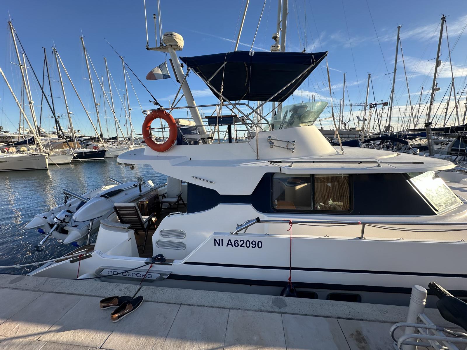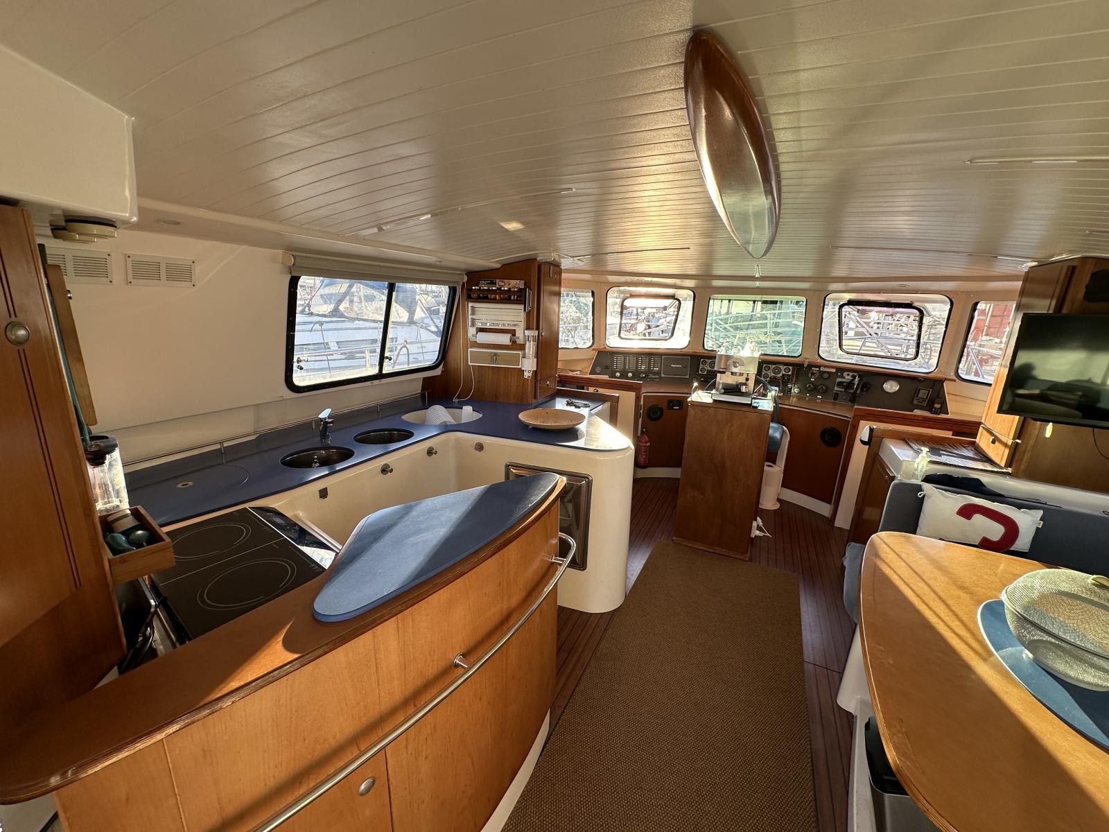Avec ses deux moteurs Yanmar de fiables, il peut parcourir jusqu'à 1000 miles à une vitesse moyenne de 10/12 kn.