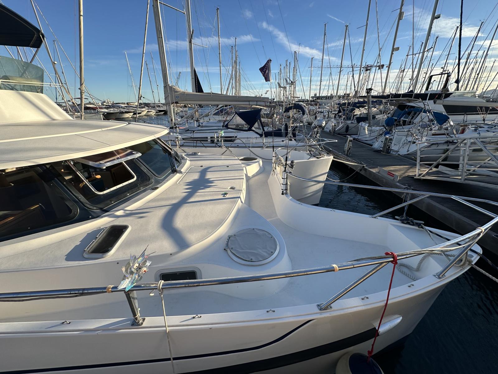 L'équipe CAP MED YACHT CONSULTING à le plaisir de vous proposer à la vente ce magnifique catamaran à moteur Fountaine Pajot Maryland 37 de 1999 qui a une grande autonomie de croisière et une conception de coque qui lui confère des qualités de navigation exceptionnelles.