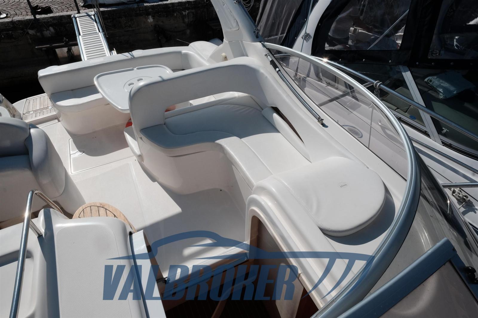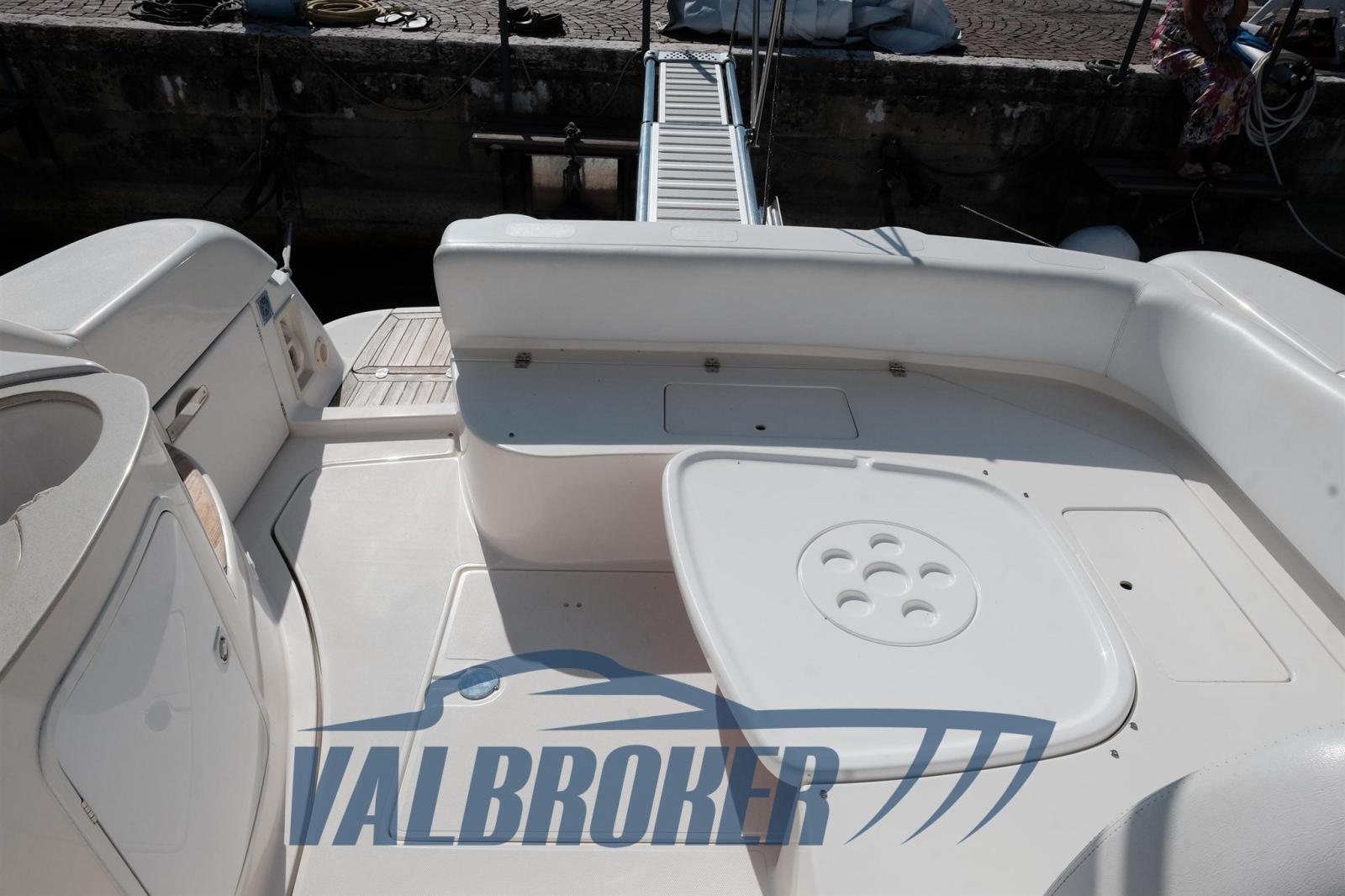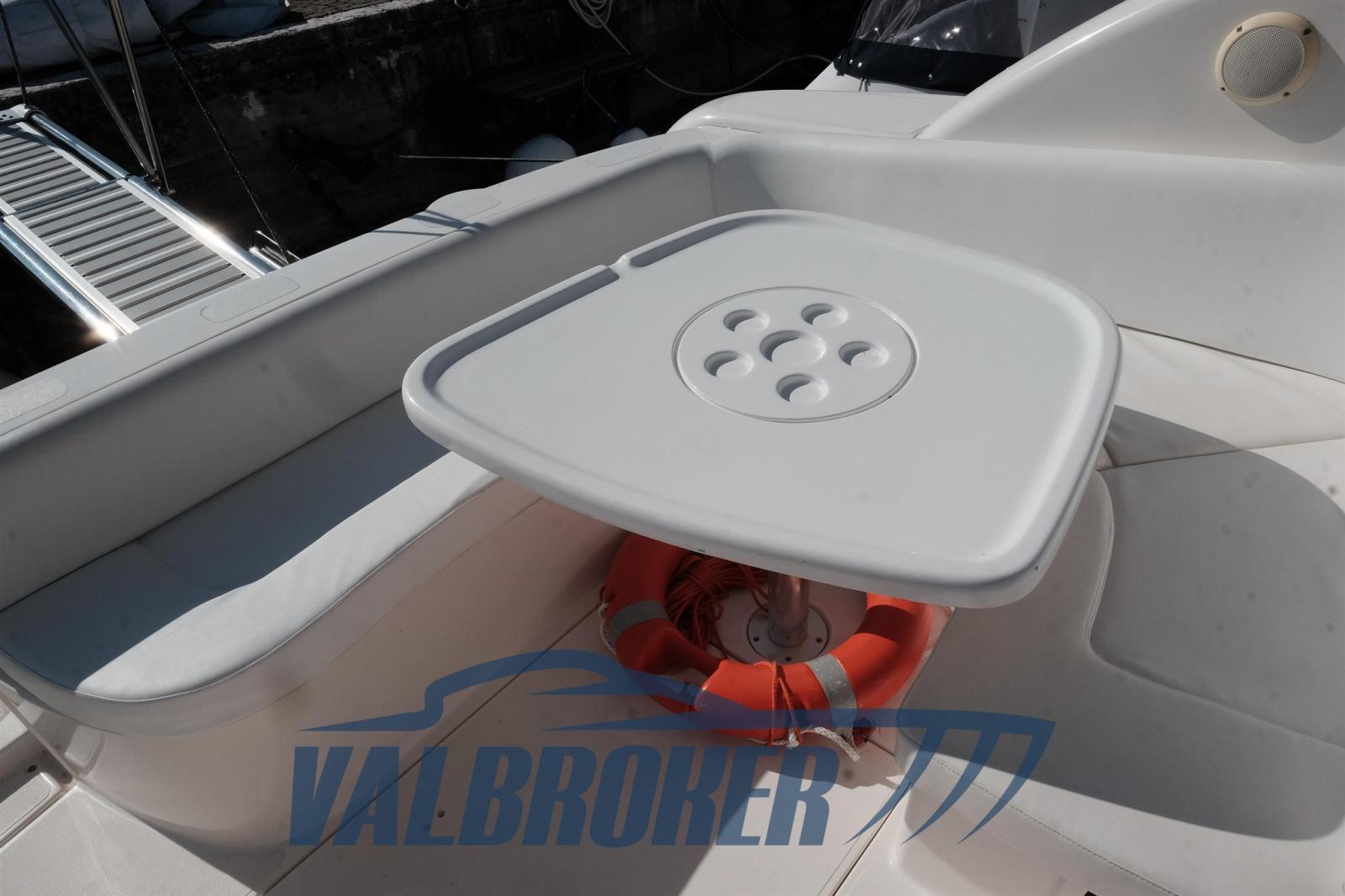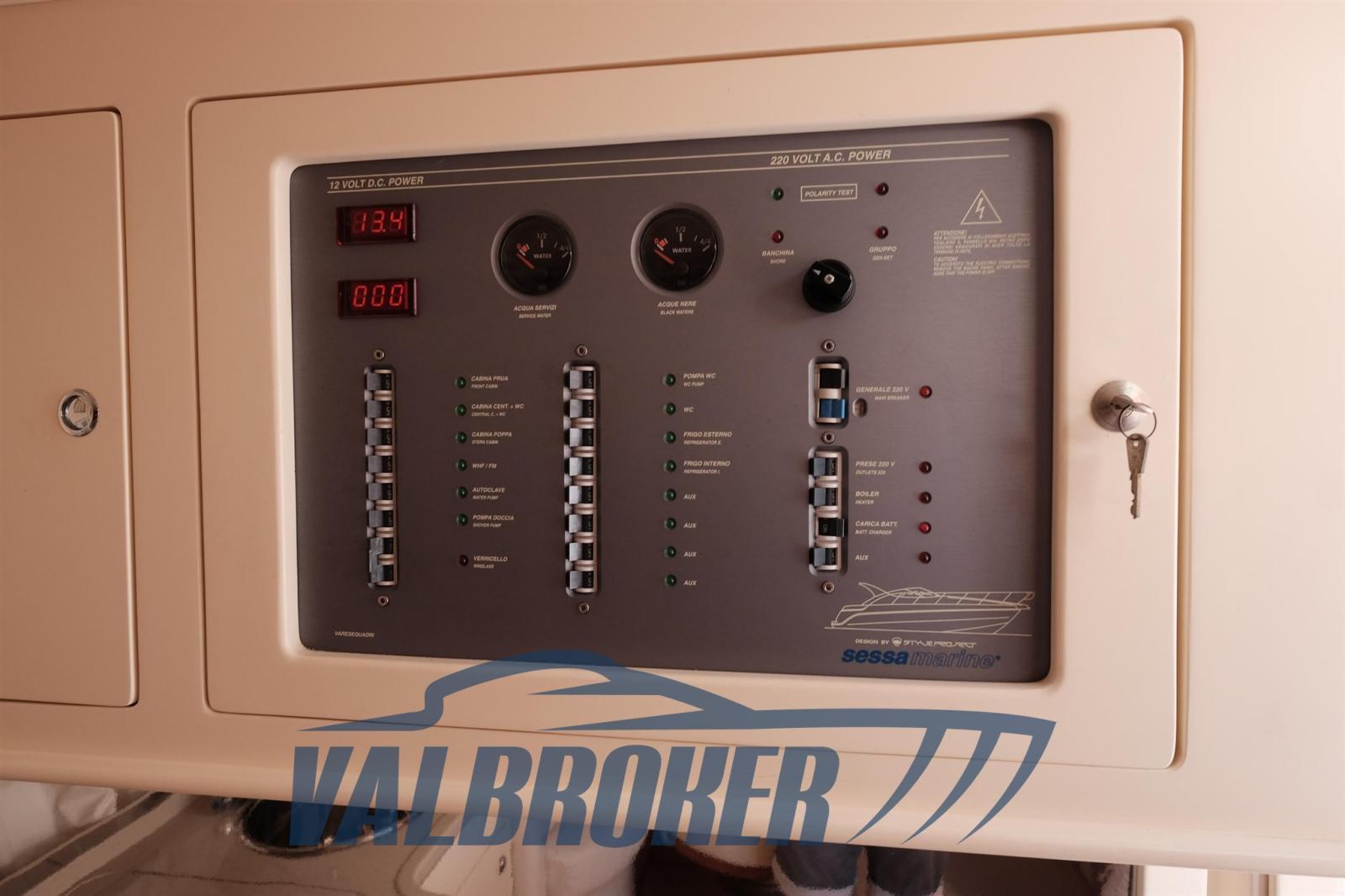 Ancre (40 m catena), Ouverture du compartiment moteur électrique, Eau sous pression, 3 Batteries, Douche de cockpit, Flaps hydrauliques, Lavabo dans le cockpit, Éclairage de courtoisie, Spots sous-marins, Passerelle (Idraulica), Plateforme arrière (Teak), Rollbar, Guindeau électrique (Comando anche a prua), Echelle de bain, table de cockpit (Si trasforma in prendisole).
