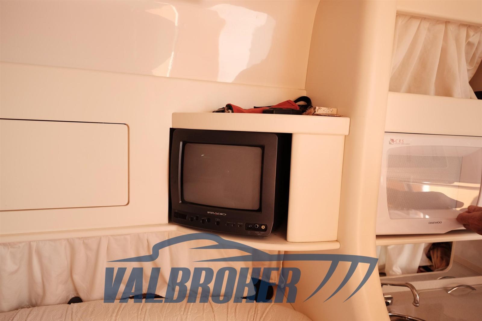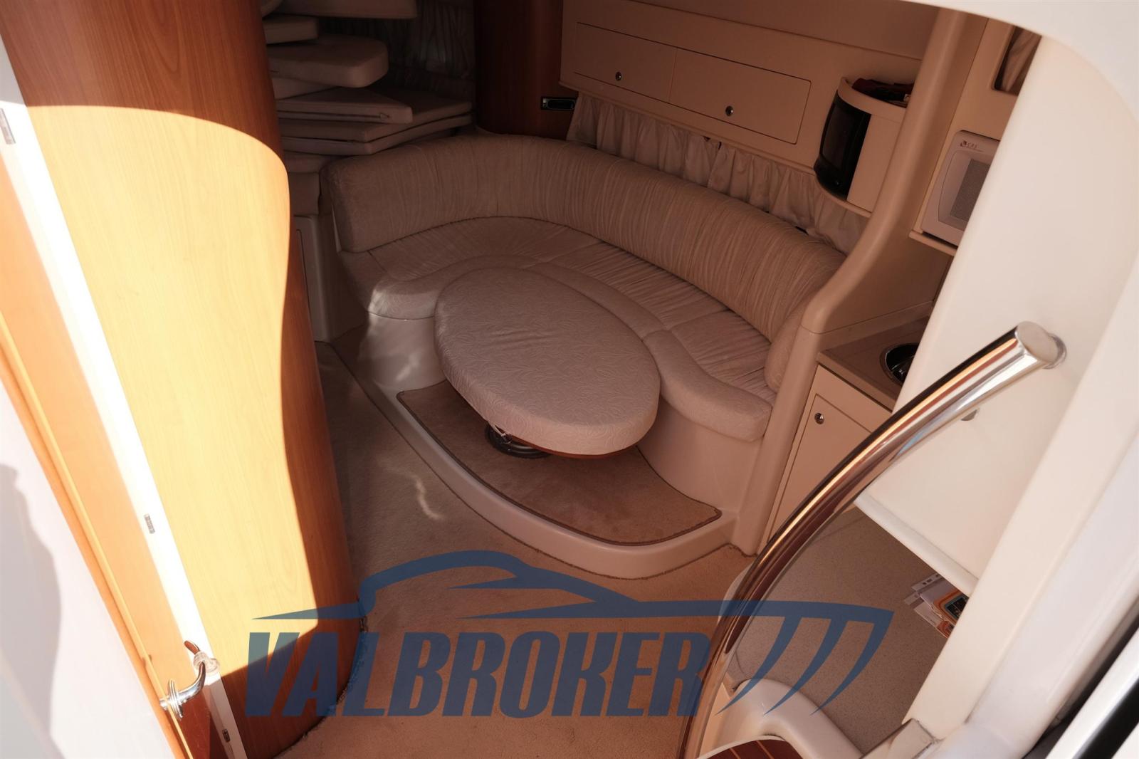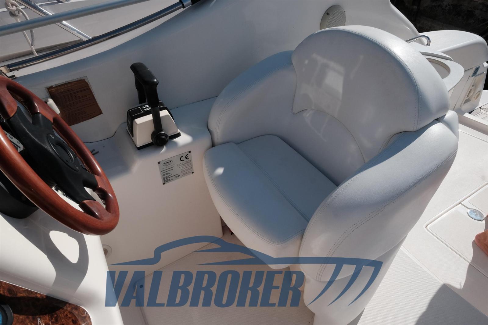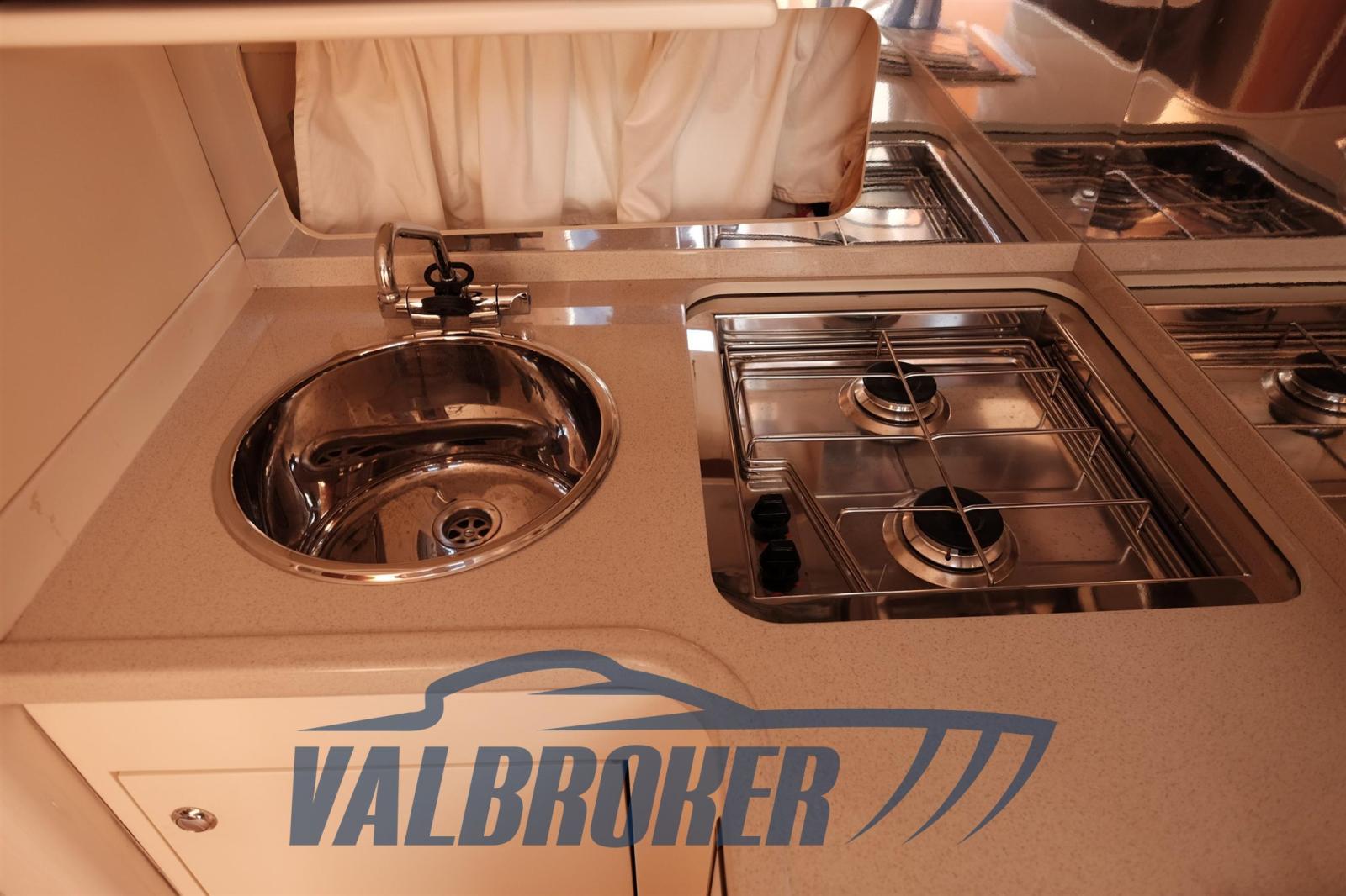 Ancre (40 m catena), Ouverture du compartiment moteur électrique, Eau sous pression, 3 Batteries, Douche de cockpit, Flaps hydrauliques, Lavabo dans le cockpit, Éclairage de courtoisie, Spots sous-marins, Passerelle (Idraulica), Plateforme arrière (Teak), Rollbar, Guindeau électrique (Comando anche a prua), Echelle de bain, table de cockpit (Si trasforma in prendisole).