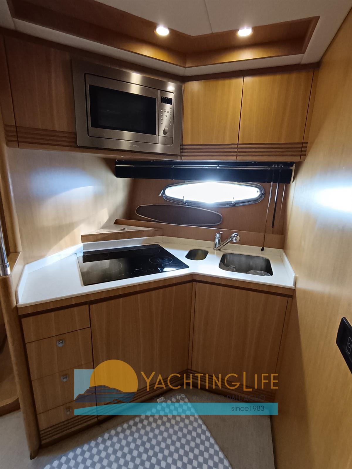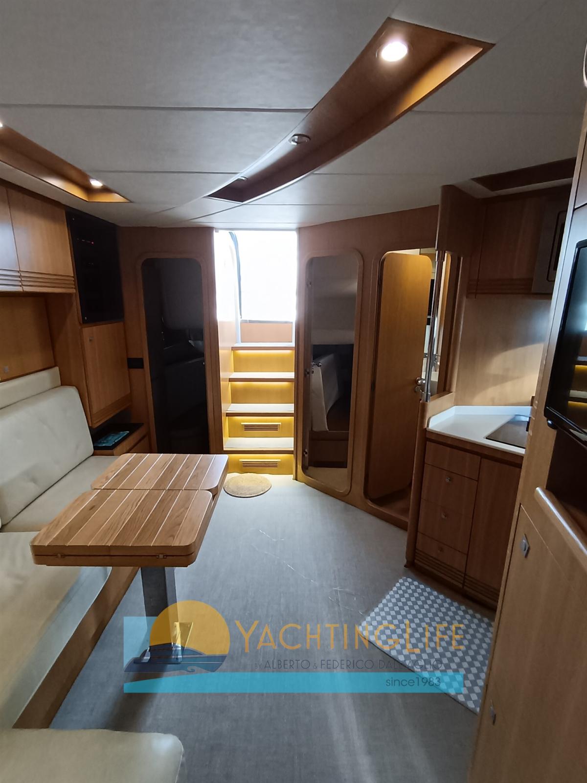 Alarme moteur, Alarme de pompe de cale, Ouverture du compartiment moteur électrique, Eau sous pression, Passavant en teck, Douche de cockpit, Flaps hydrauliques, Hard top, Extincteur(s) fixe(s), Indicateurs de flaps, Lavabo dans le cockpit, Éclairage de courtoisie, Passerelle (idraulica), Plateforme arrière, Pompe de cale automatique, Porte latérale, Cockpit en teck, Prise de quai, Guindeau électrique, Echelle de bain, table de cockpit, Corne, Winch électrique arrière.