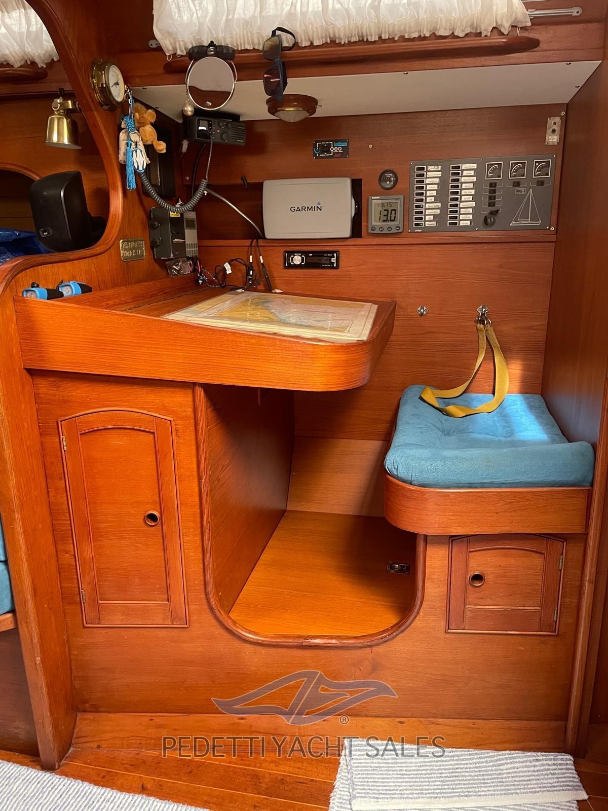 Eau sous pression, Douche de cockpit, Passerelle, Pompe de cale manuelle, Cockpit en teck, Prise de quai, Guindeau électrique, Gréement monotoron, Echelle de bain, Chaise support HB, table de cockpit, Table pliante de salon.