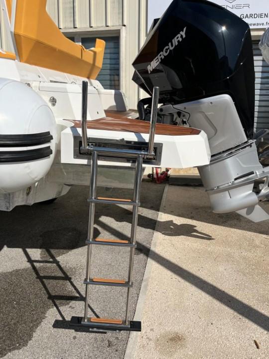 Avec ses 2 x 300cv, les performances sont plus que raisonnables et vous permettent d'atteindre rapidement les 45 noeuds.