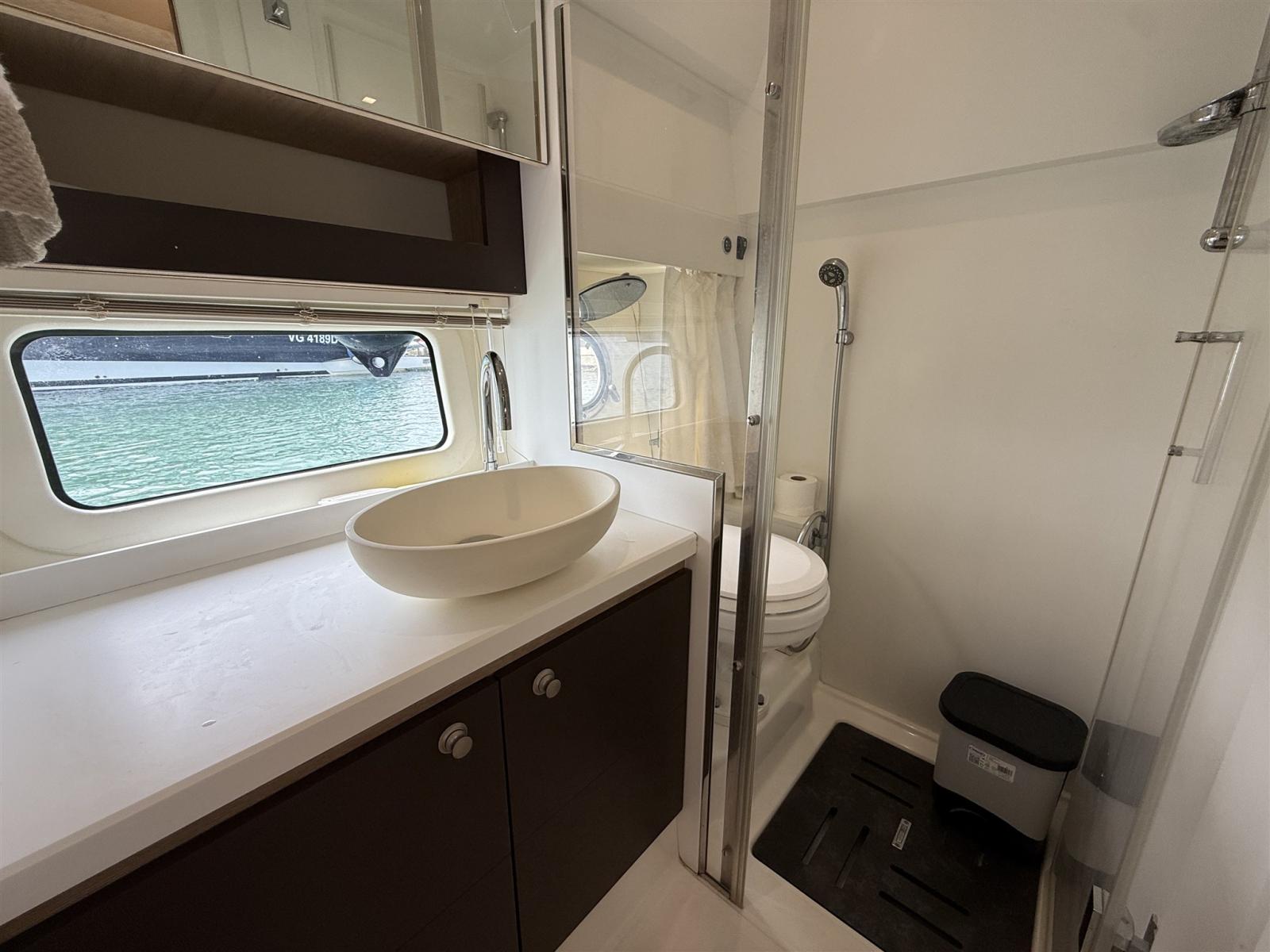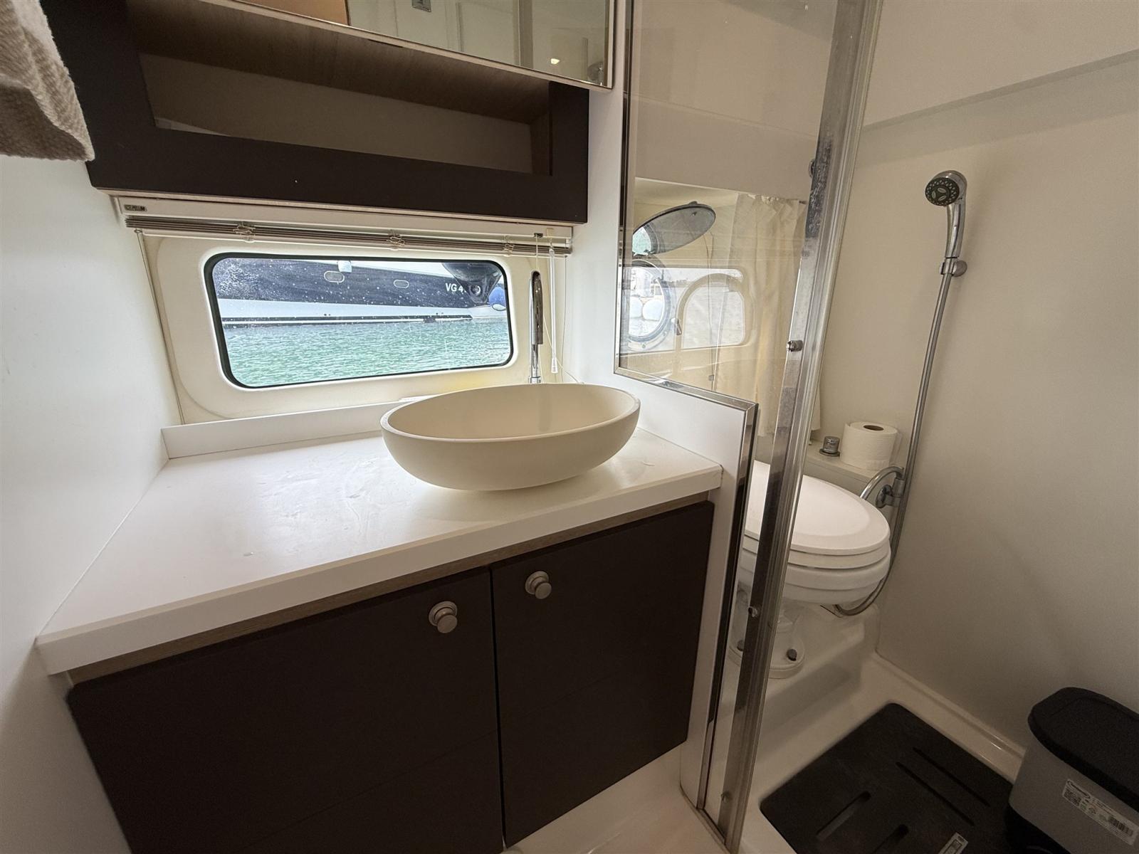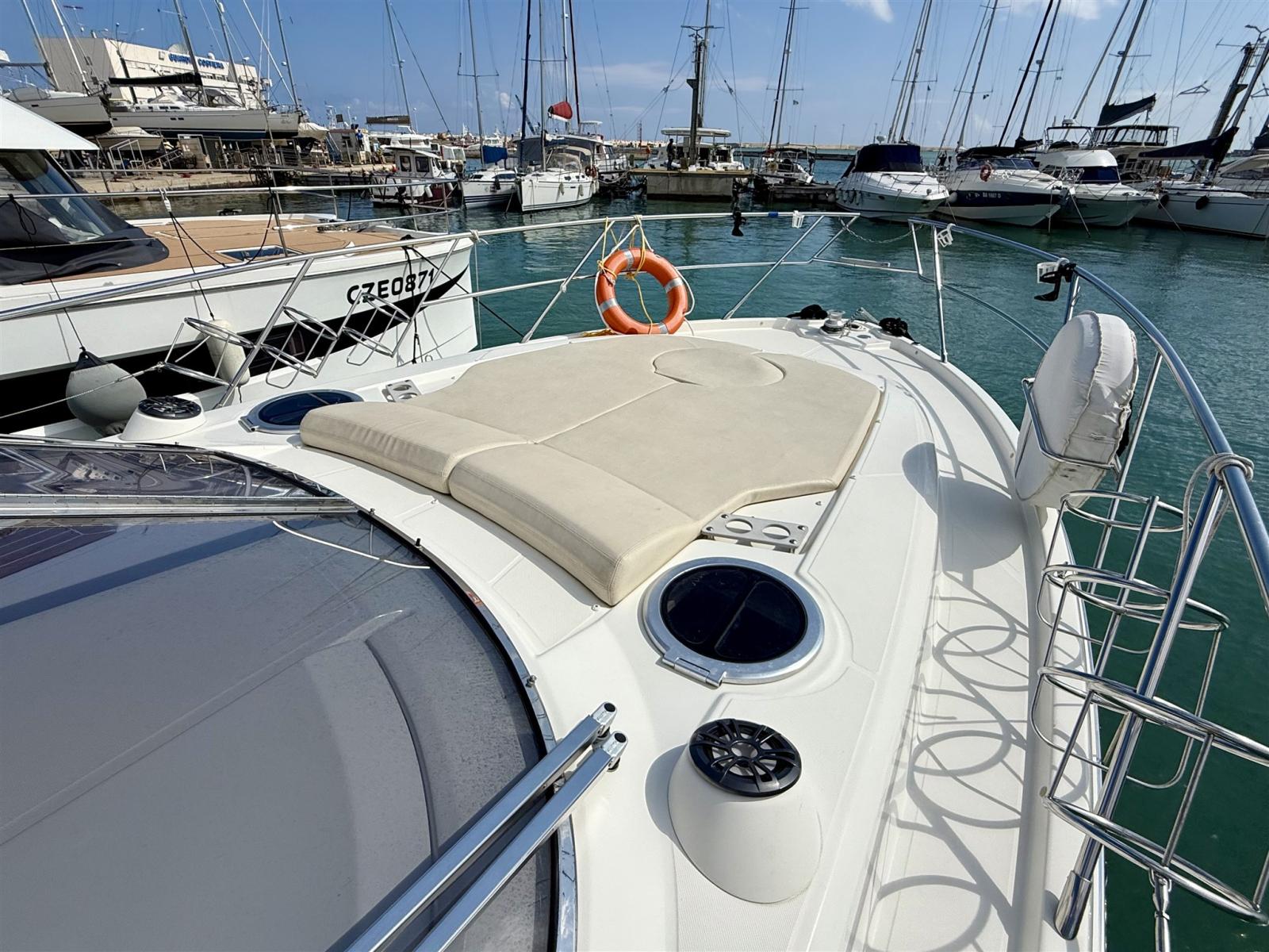 Ancre (15 KG), Eau sous pression, Câble d’alimentation à quai, Douche de cockpit, Propulseur d'étrave (SIDEPOWER), Flaps hydrauliques, Lavabo dans le cockpit, Éclairage de courtoisie, Défenses, Plateforme arrière, Pompe de cale manuelle, Porte latérale, Cockpit en teck, Prise de quai, Connexion eau sous pression à quai, Guindeau électrique, Echelle de bain, table de cockpit, Table pliante de salon.