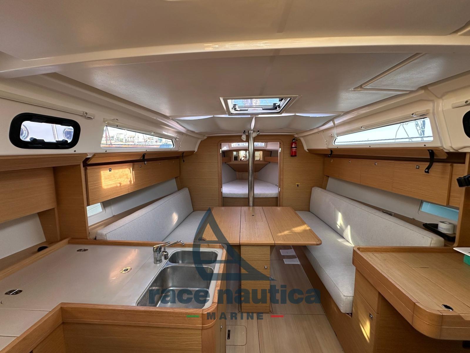 Hublot ouvrant supplémentaire dans la grande cabine arrière à bâbord du cockpit, intérieur en chêne, comptoirs en Corian gris, planchers en chêne, supplément pour moteur à voile de 29 CV, propulseur d’étrave rétractable, pack de croisière électronique, hélice repliable bipale, 2 treuils AR T40 pour grand-voile, génois et écoutes de gennaker, équipement gennaker avec mât de spi fixe, mise à niveau pour sièges de cockpit en teck synthétique avec joints gris, Protection d’étrave en acier inoxydable, coussins de cockpit de couleur chinè, ancre avec chaîne de 50m, 6 défenses, 3 amarres, réservoir d’eau supplémentaire.