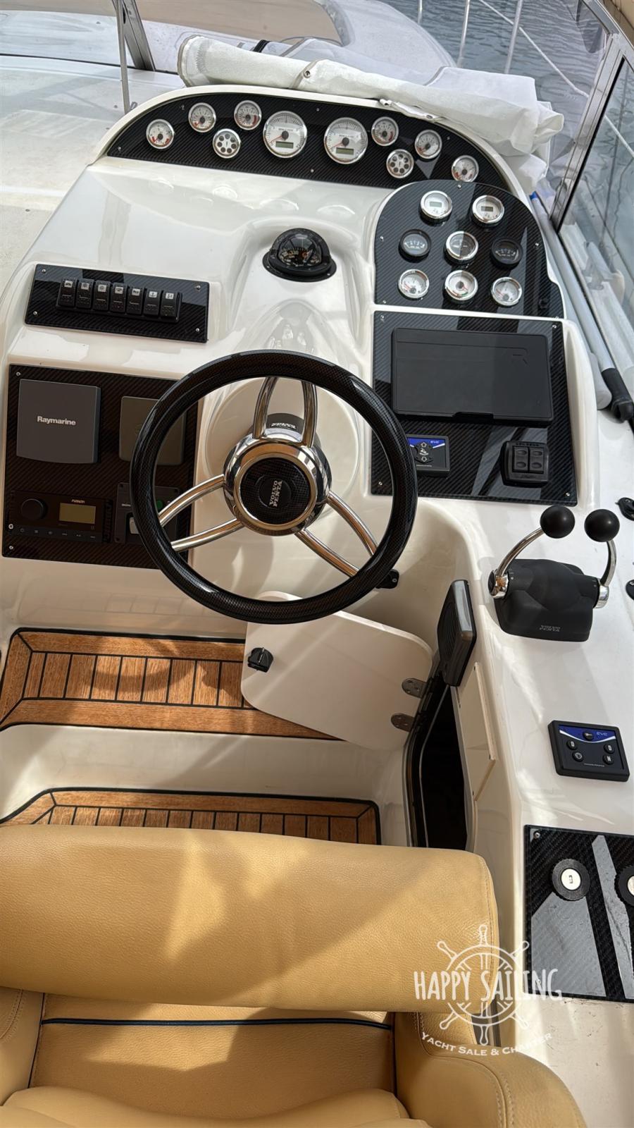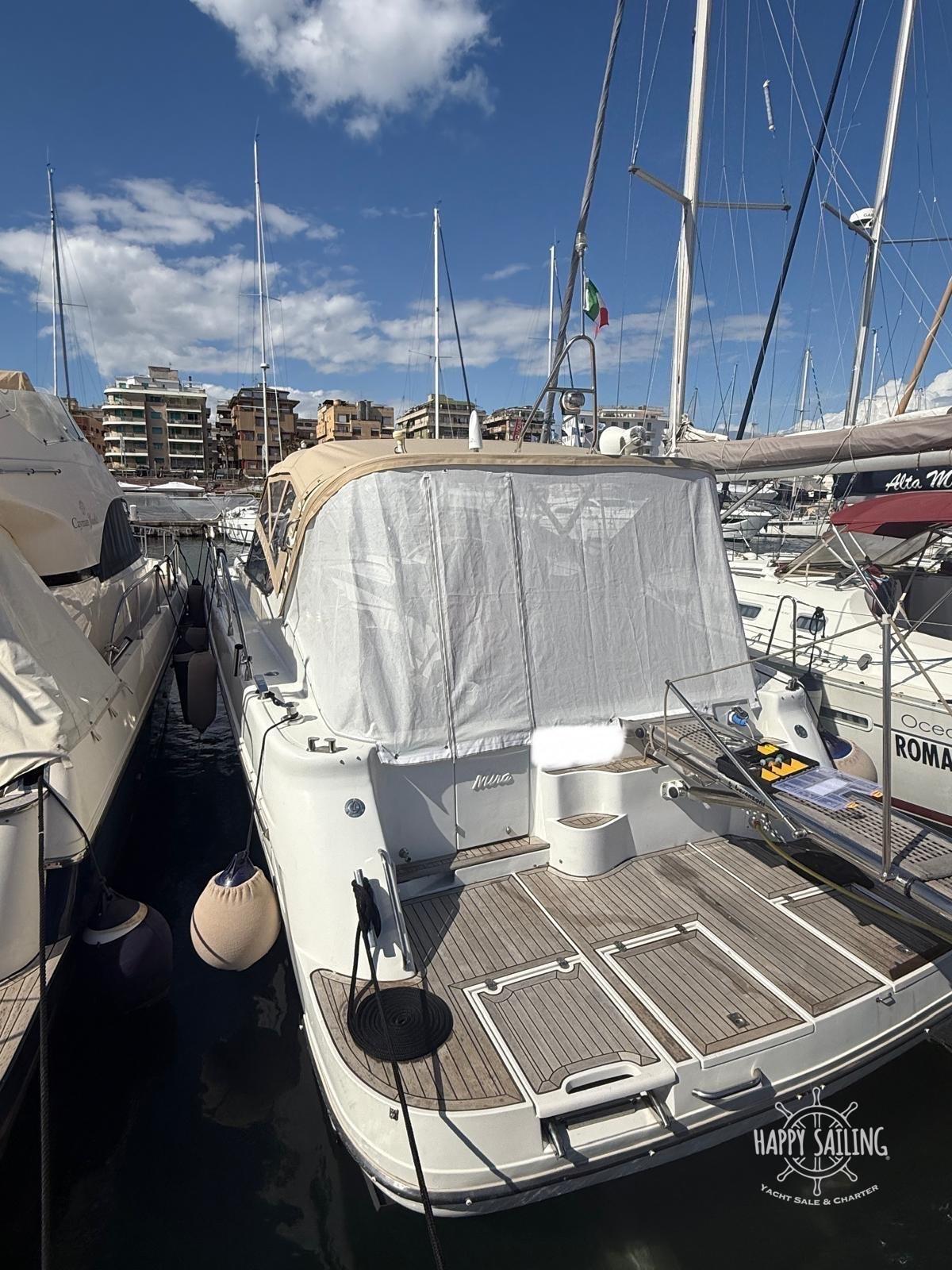 Alarme moteur, Eau sous pression, Douche de cockpit, Flaps électriques, Éclairage de courtoisie, Passerelle, Plateforme arrière, Cockpit en teck, table de cockpit.