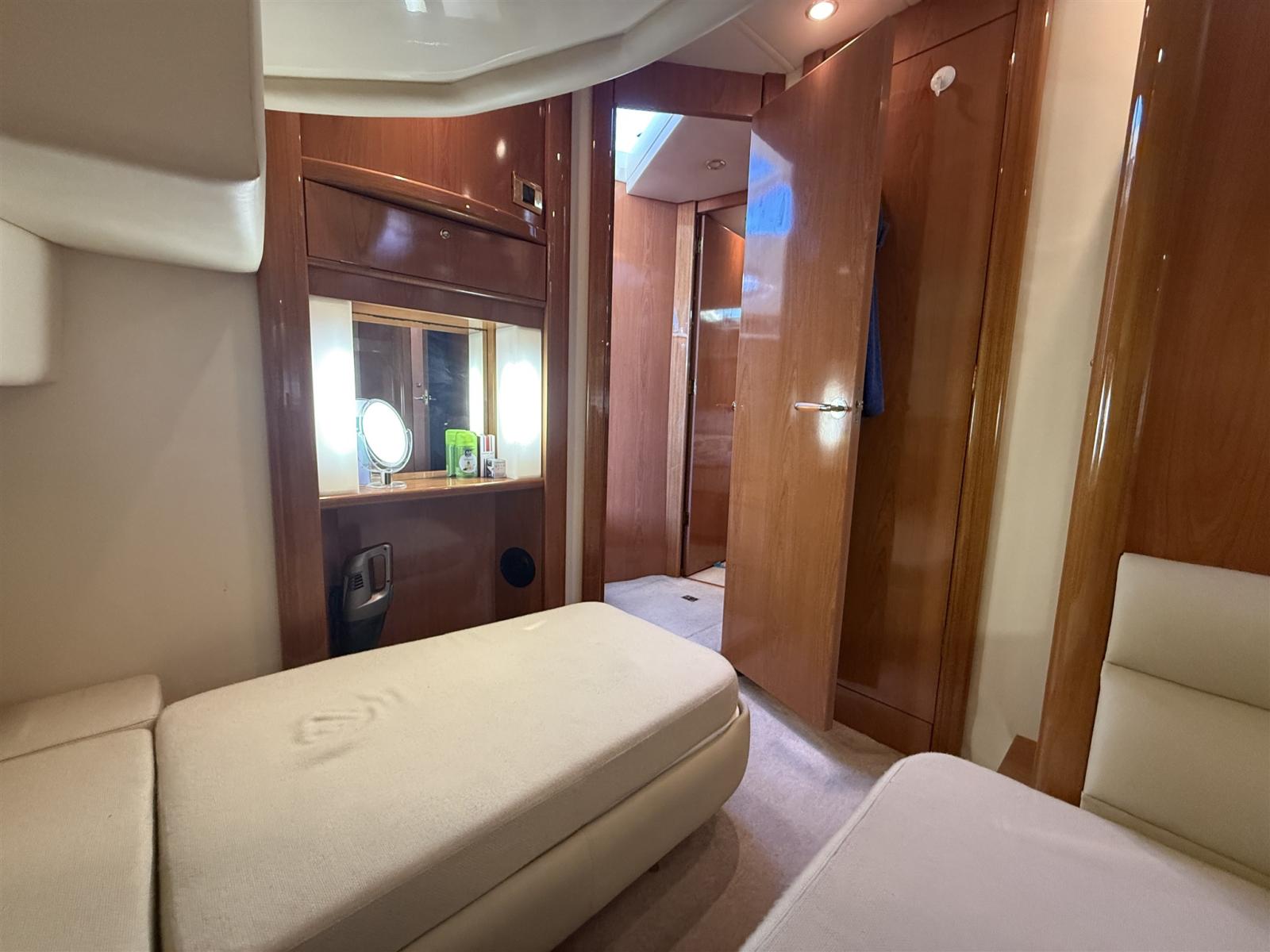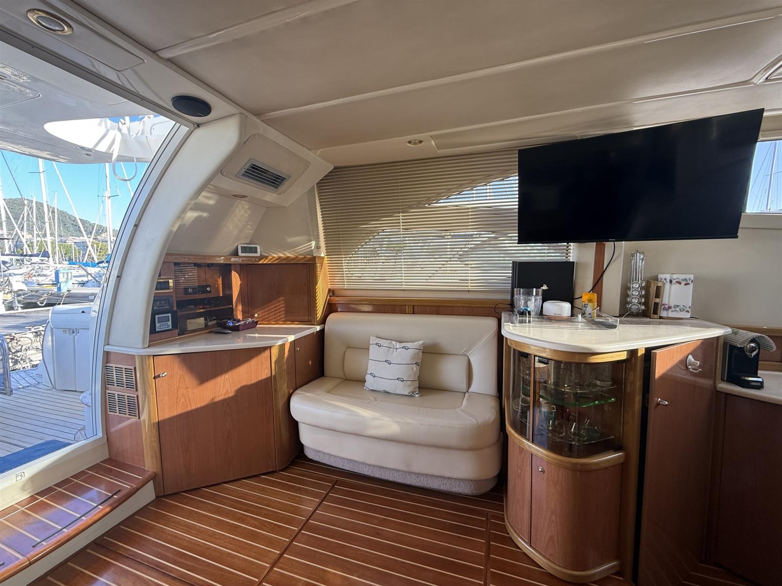 Alarme moteur, Alarme de pompe de cale, Alternateur, Eau sous pression, Câble d’alimentation à quai, Filères, Douche de cockpit, Double barre à roue, Phare de poursuite, Flaps électriques, Extincteur(s) fixe(s), Indicateurs de flaps, Lavabo dans le cockpit, Éclairage de courtoisie, Spots sous-marins, Défenses, Passerelle, Plateforme arrière, Pompe de cale automatique, Pompe de cale manuelle, Porte latérale, Cockpit en teck, Prise de quai, Répétiteur électronique, Rollbar, Guindeau électrique, Echelle de bain, table de cockpit, Filières avec sortie latèrale, Corne.
