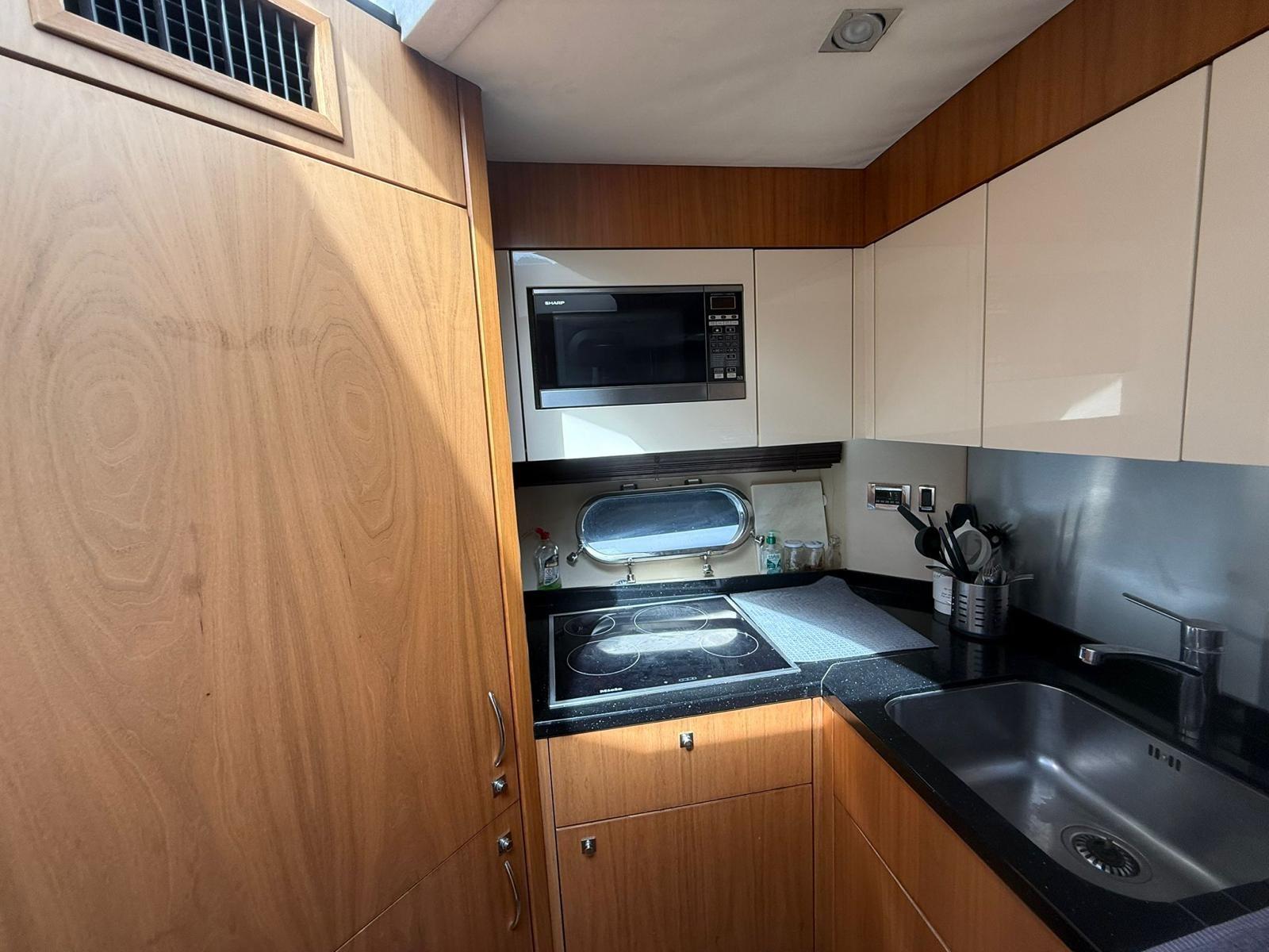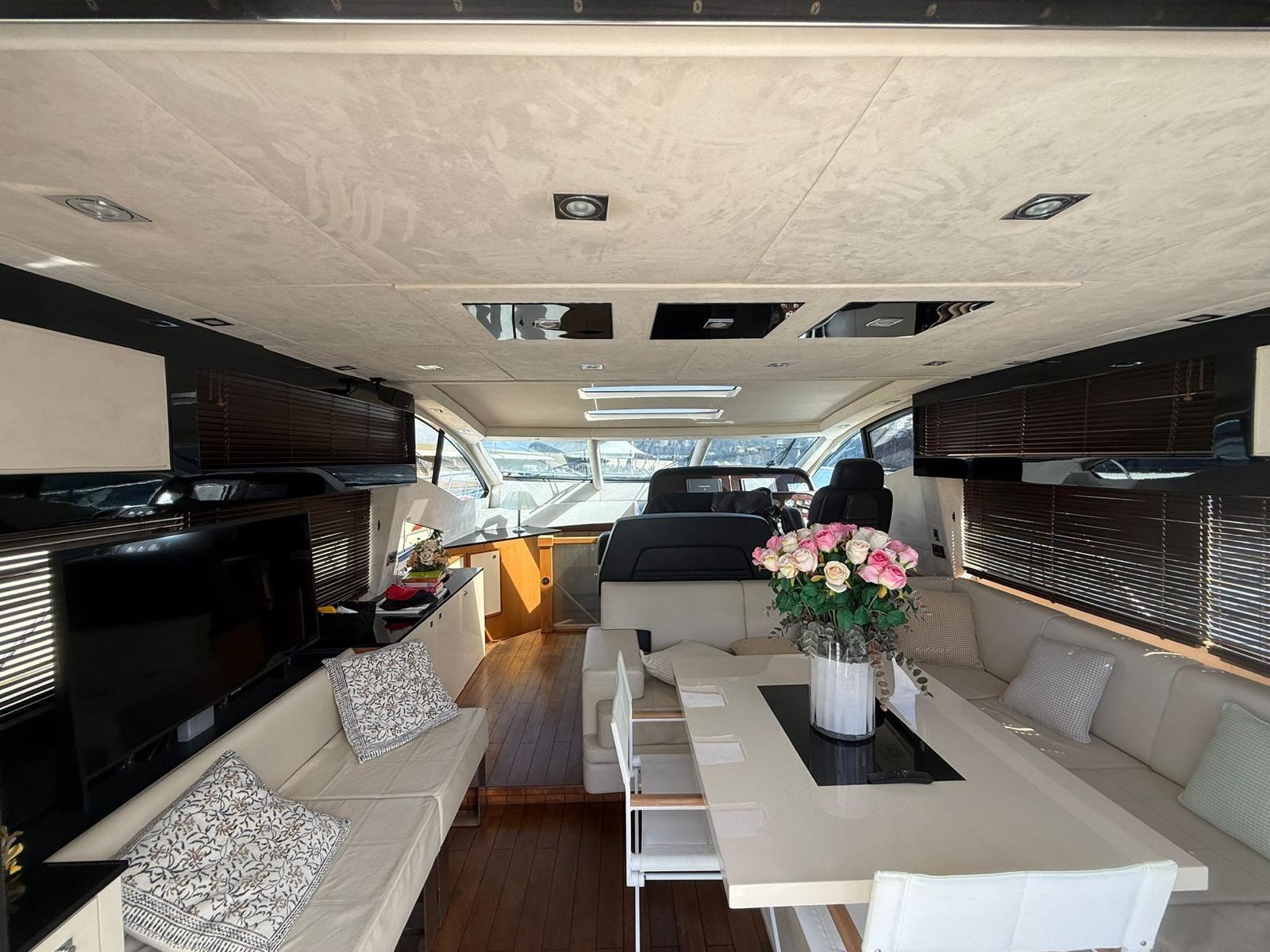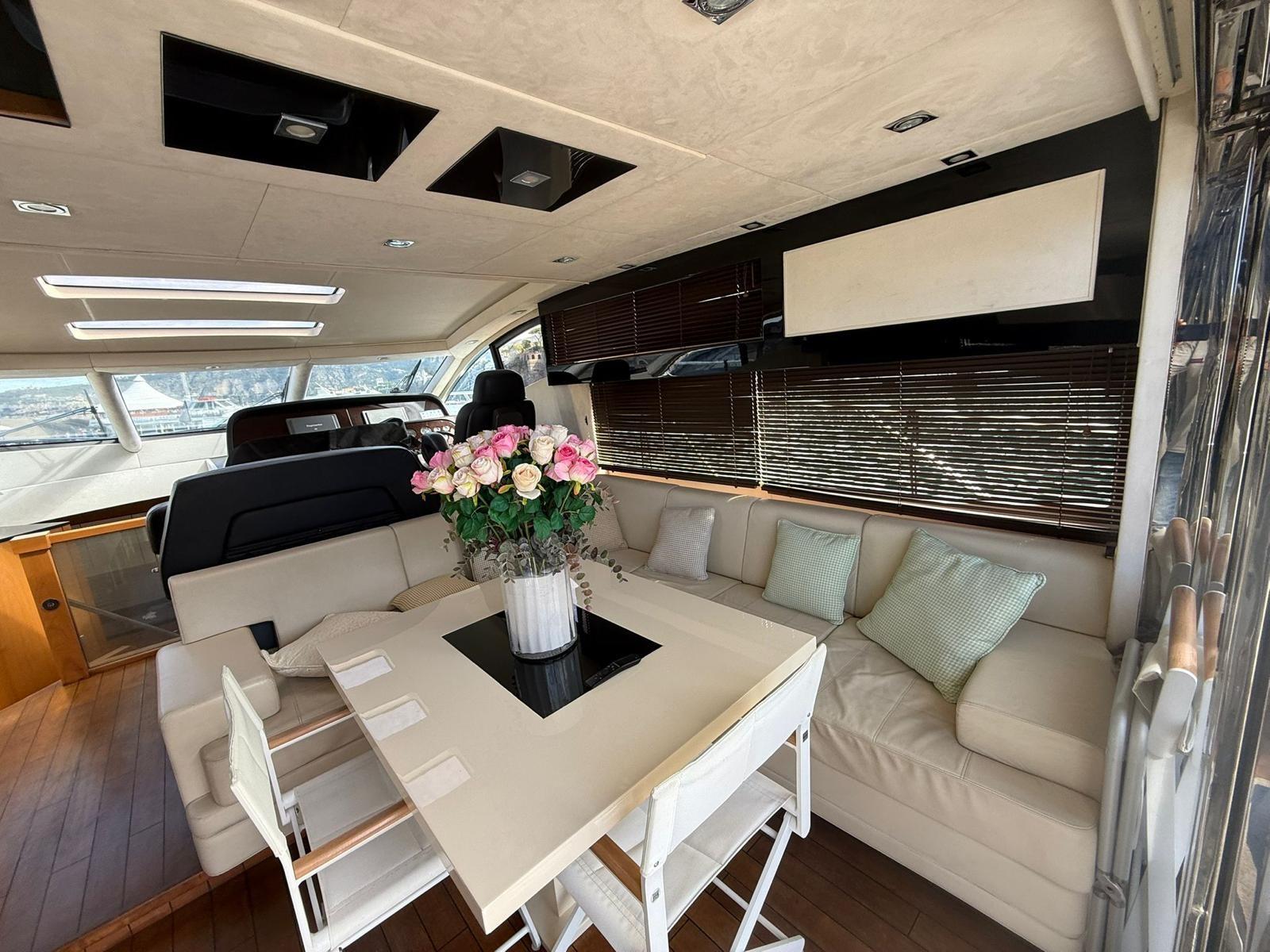 Alarme moteur, Alarme de pompe de cale, Alternateur, Eau sous pression, Passavant en teck, Douche de cockpit, Flaps hydrauliques, Garage à annexe, Hard top, Extincteur(s) fixe(s), Indicateurs de flaps, Lavage de chaine, Lavabo dans le cockpit, Éclairage de courtoisie, Spots sous-marins, Passerelle, Plateforme arrière, Pompe de cale automatique, Pompe de cale manuelle, Pont en teck, Porte latérale, Cockpit en teck, Prise de quai, Connexion eau sous pression à quai, Guindeau électrique, Echelle de bain, table de cockpit, Table pliante de salon, Annexe, Corne, 2 Winch électrique arrière, Winch électrique avant.