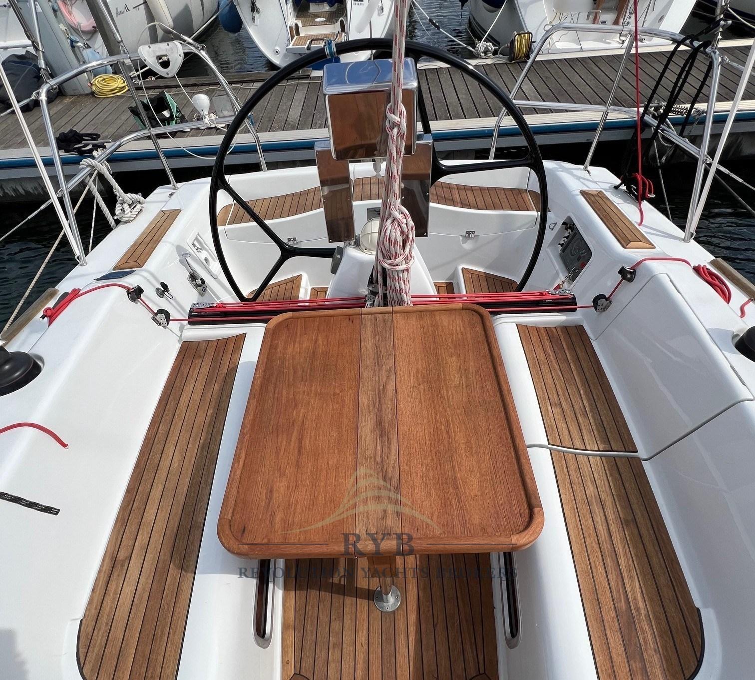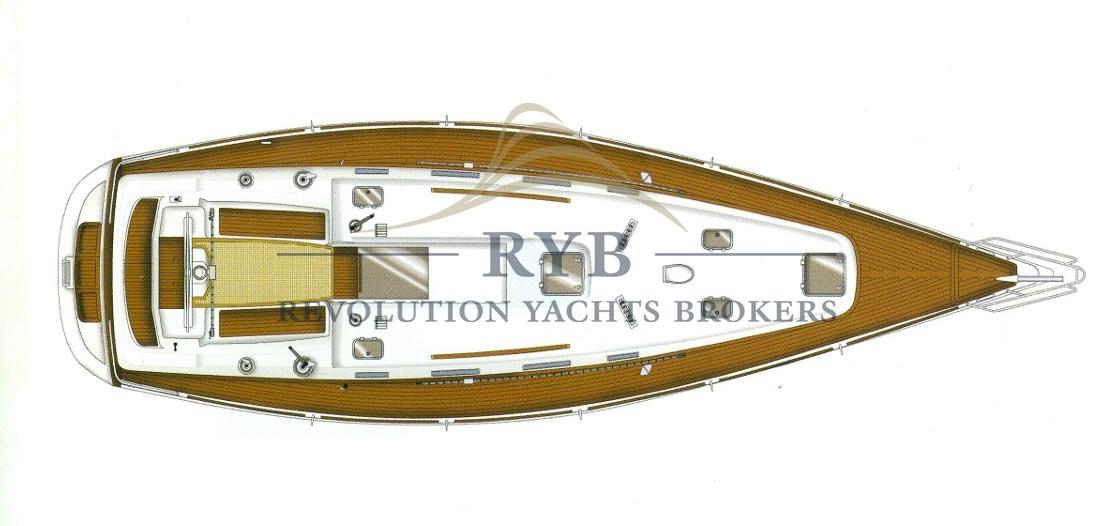 Ancre (DELTA 20 KG + 65 m. di catena, diam.8), Chargeur de batterie (45aH), Douche de cockpit, Propulseur d'étrave (RMC - RETRATTILE), Éclairage de courtoisie, Plateforme arrière, Cockpit en teck, Guindeau électrique (1400W + Pulsantiera con contametri e strumento ripetitore comando in pozzetto), Gréement monotoron, Echelle de bain, table de cockpit (PIEGHEVOLE E ASPORTABILE), Winch, 3 Winch électrique (HARKEN), Windex.
