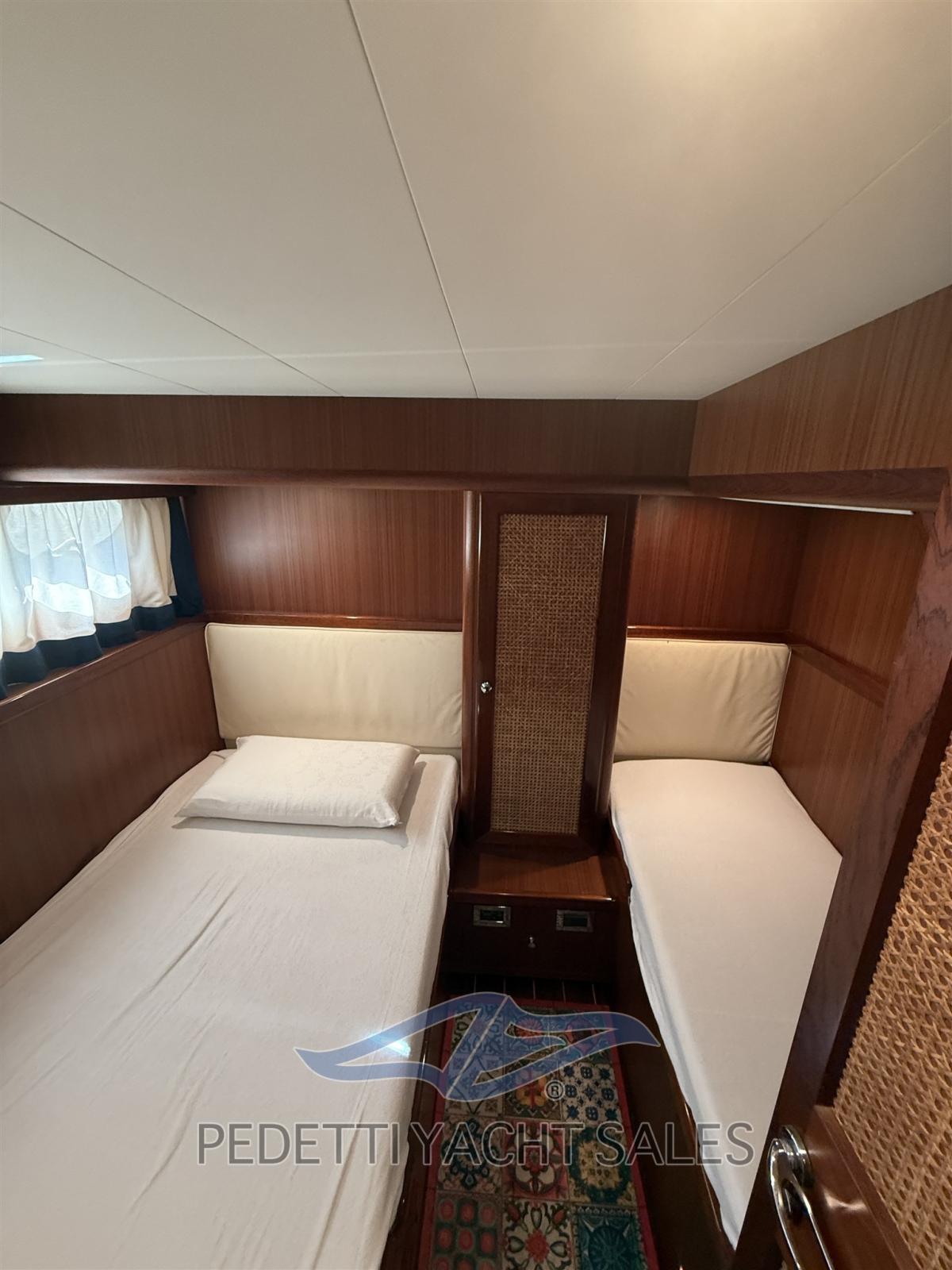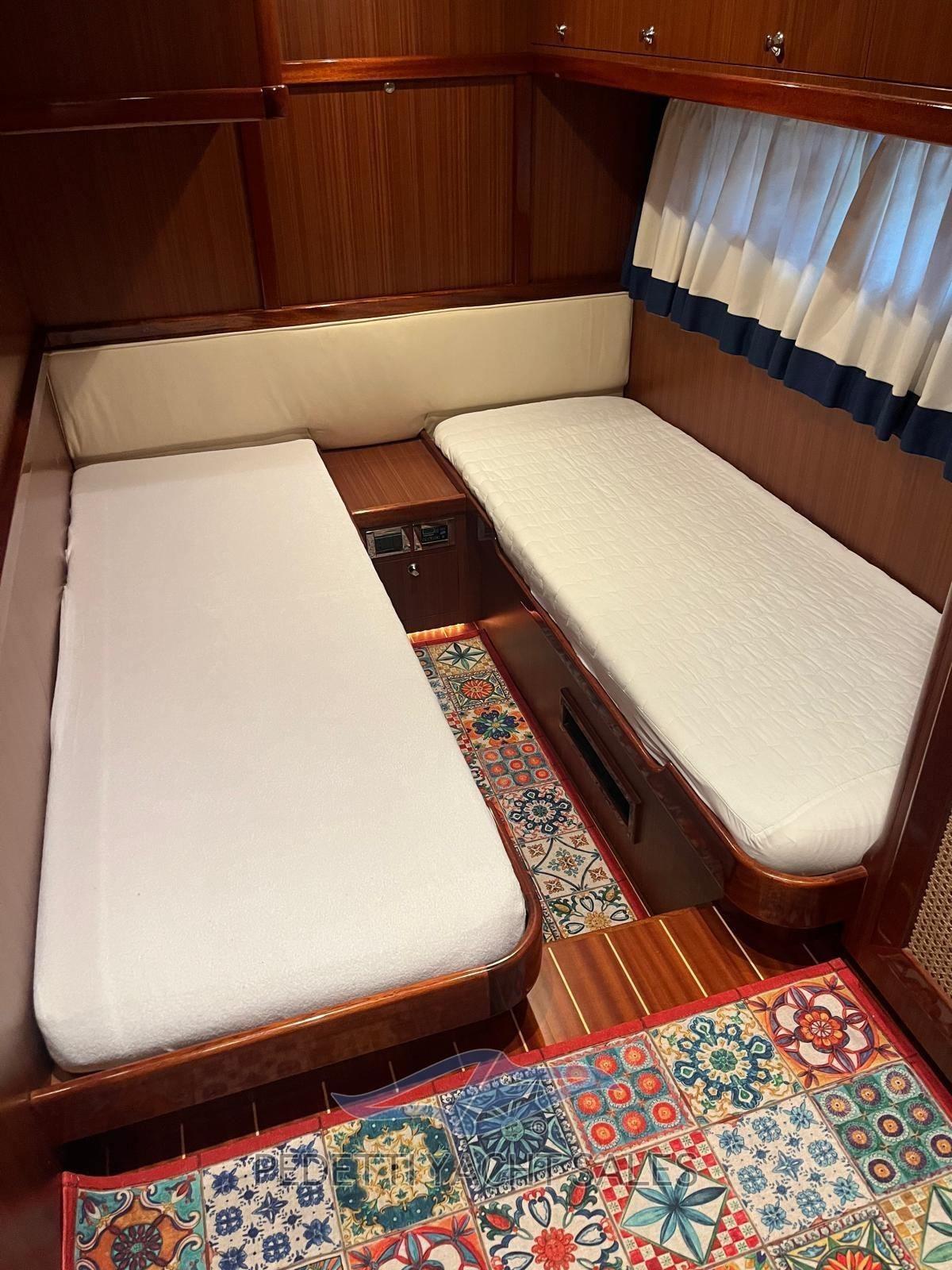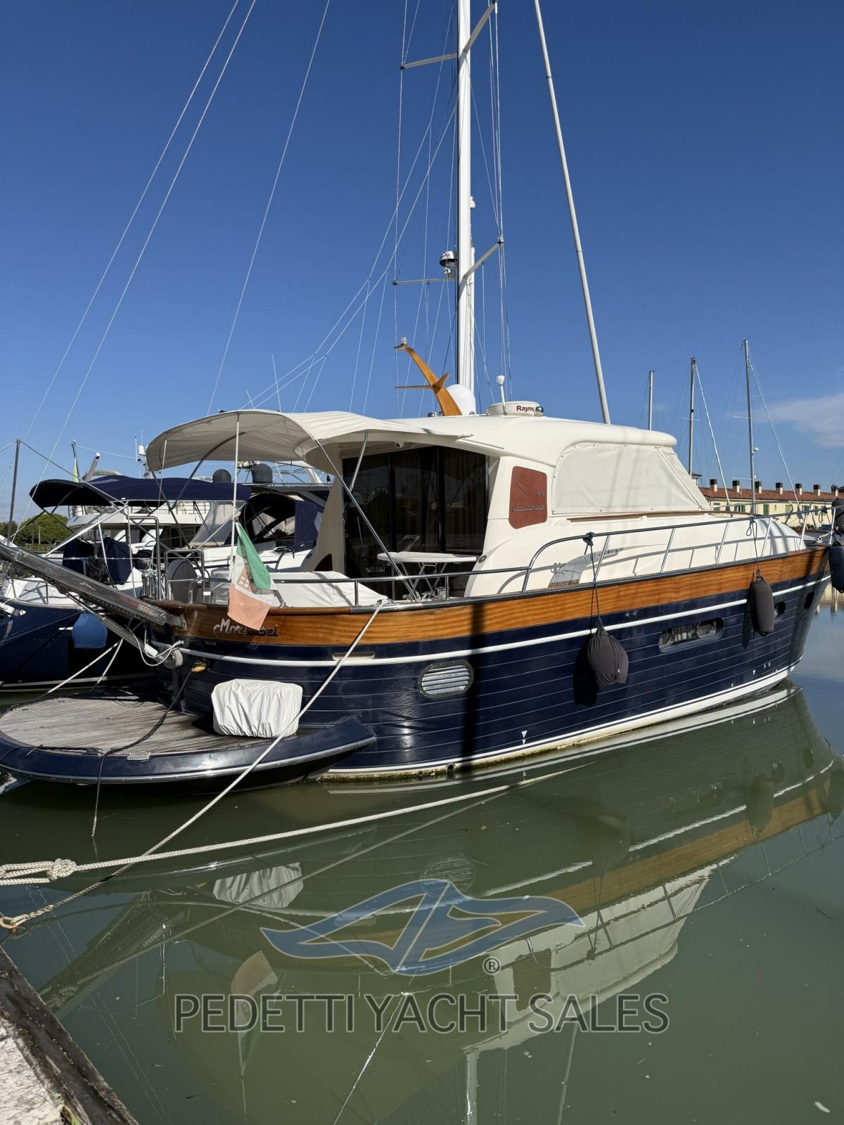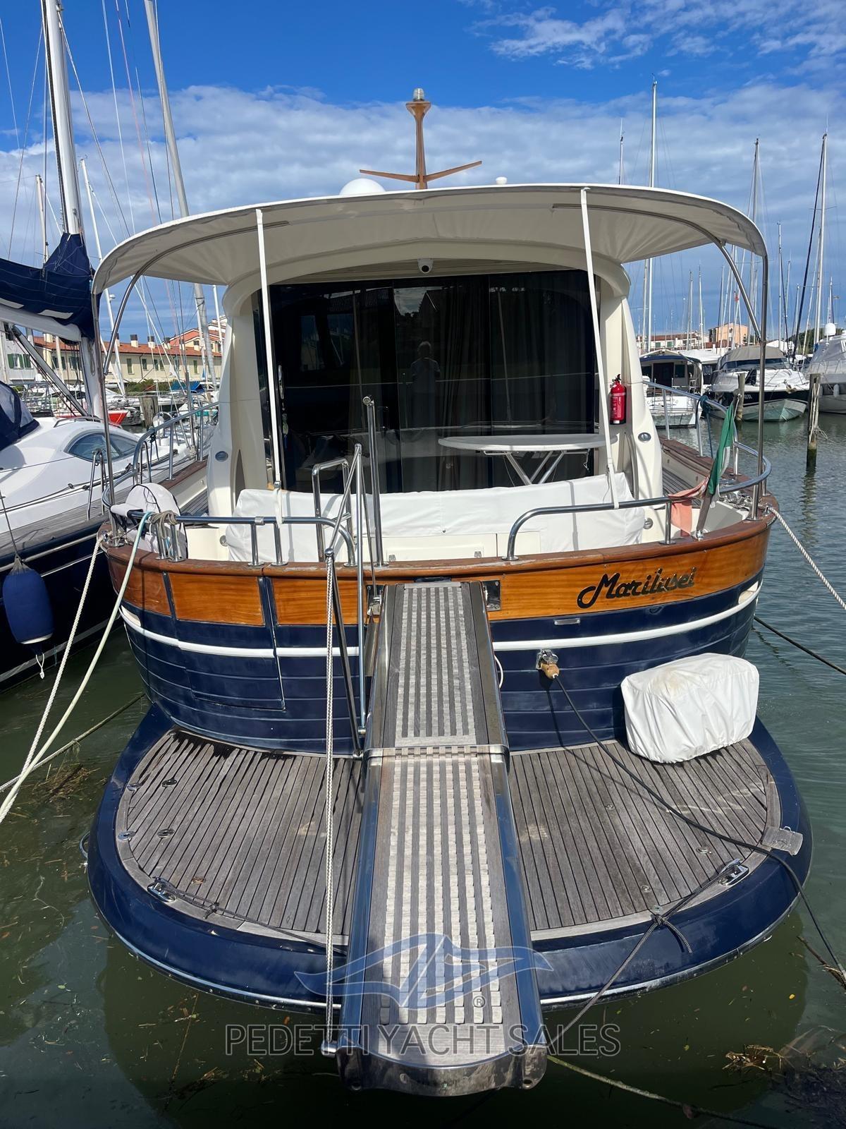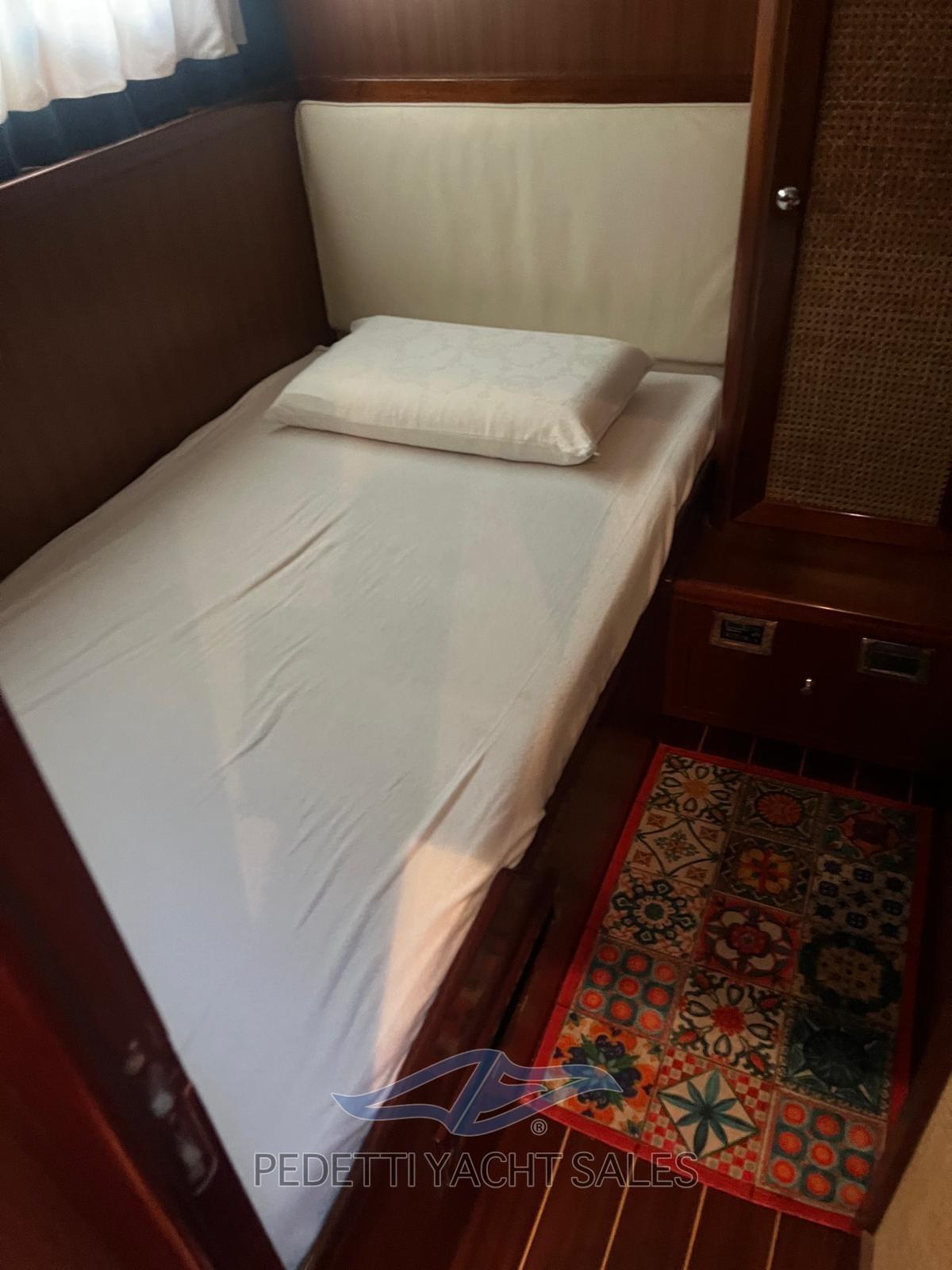 Bateau gozzo classique Sorrentino produit en 2007 qui allie élégance, confort et performance. D’une longueur de 13,2 mètres (14,60 pieds) et d’une largeur de 4,7 mètres, ce bateau offre des intérieurs spacieux avec trois cabines, deux salles de bains et une cabine d’équipage indépendante, parfaite pour les croisières en famille et entre amis. D’un point de vue technique, il est propulsé par deux puissants moteurs Volvo Penta de 480 ch chacun avec environ 1 000 heures de moteur, capables d’atteindre une vitesse de croisière d’environ 26 nœuds et des pointes maximales allant jusqu’à 31 nœuds, grâce à une coque réputée pour son excellente navigabilité. La navigation est facilitée par une électronique de pointe, notamment le GPS, le radar, le pilote automatique et le propulseur d’étrave. Annexe Zodiac avec moteur hors-bord 4t.