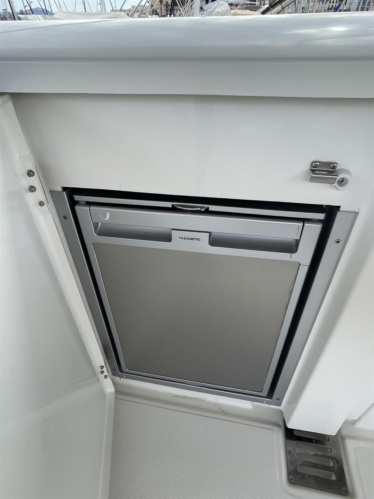 Côté bâbord, rédrigérateur et four micro-onde/grill (de 2022 jamais utilisé).
