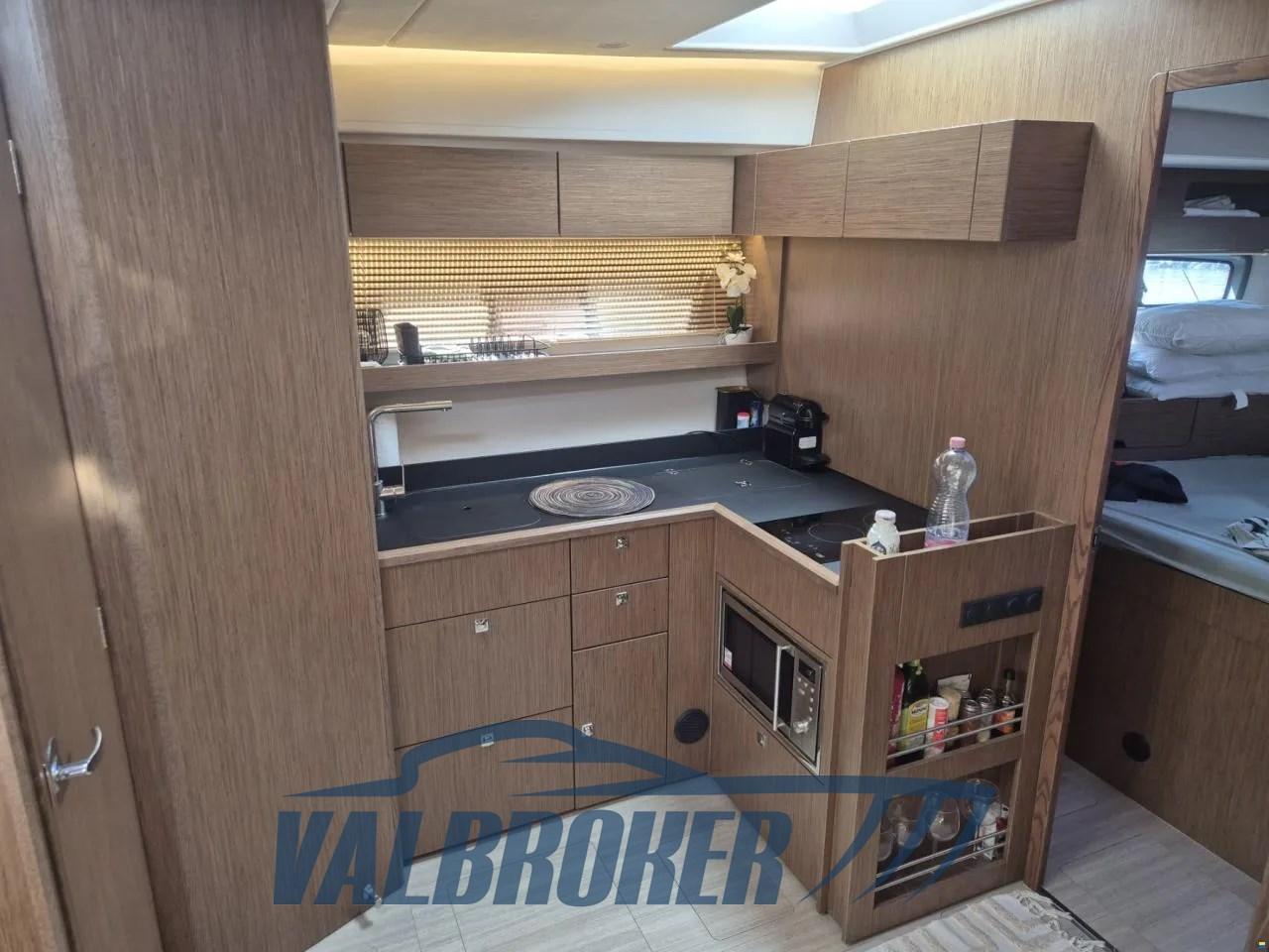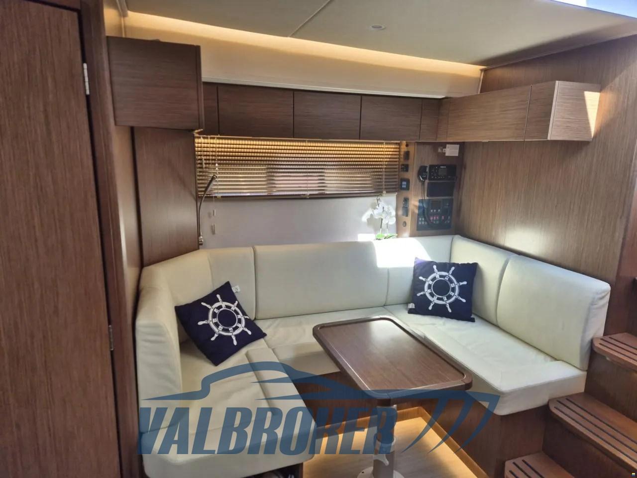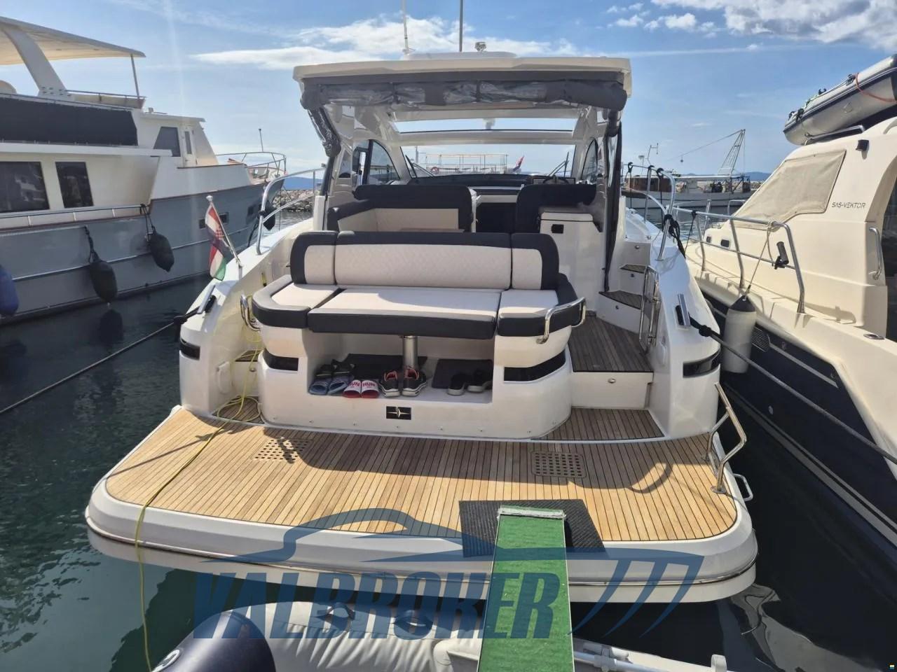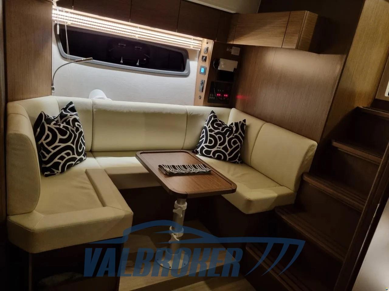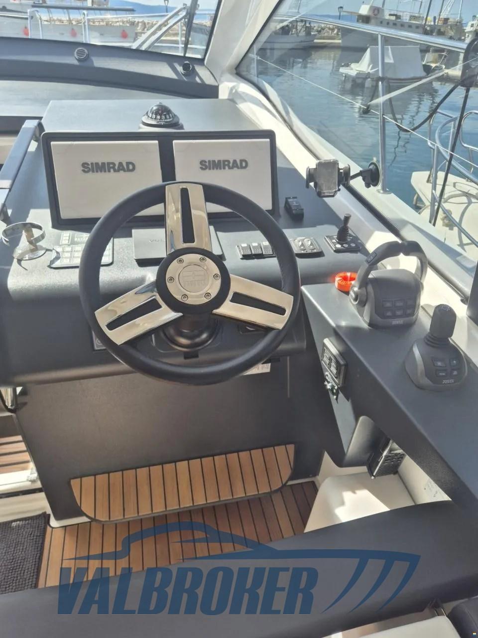 Avec un cockpit confortable et un grand bain de soleil qui peut être transformé en un coin salon avec une table face à la mer, ainsi qu’une plate-forme spacieuse et surdimensionnée, c’est le bateau à moteur idéal pour d’agréables journées en mer en famille et entre amis. Toit rigide ouvrant, plate-forme en teck surdimensionnée, radar, joystick Volvo Penta, double écran Simrad, ordinateur de bord Volvo, propulseur d’étrave, climatisation chaud/froid. Sous le pont, il abrite deux cabines : la cabine principale arrière et une cabine VIP à l’avant. 2x moteurs diesel Volvo Penta D6 380 avec peu d’heures de fonctionnement.