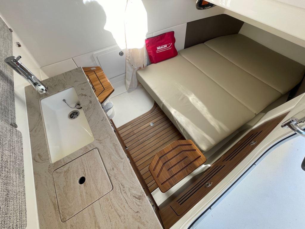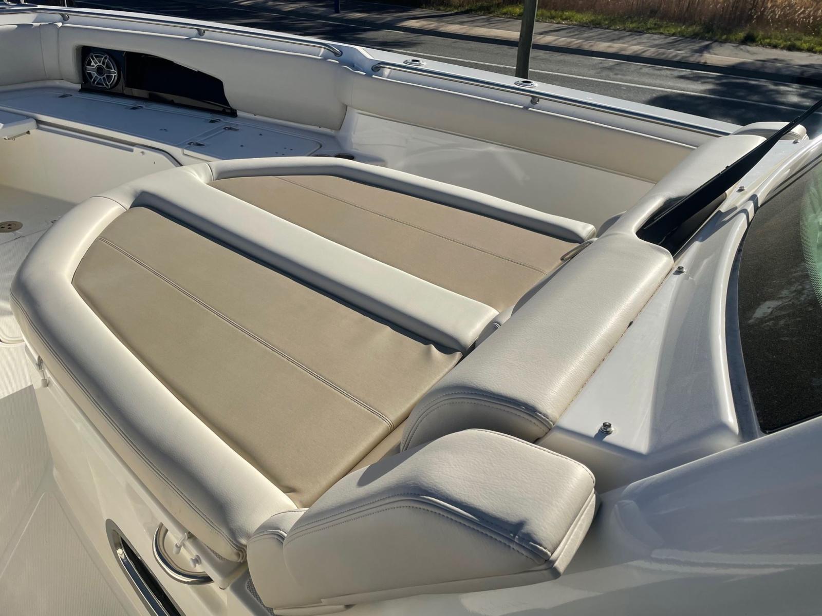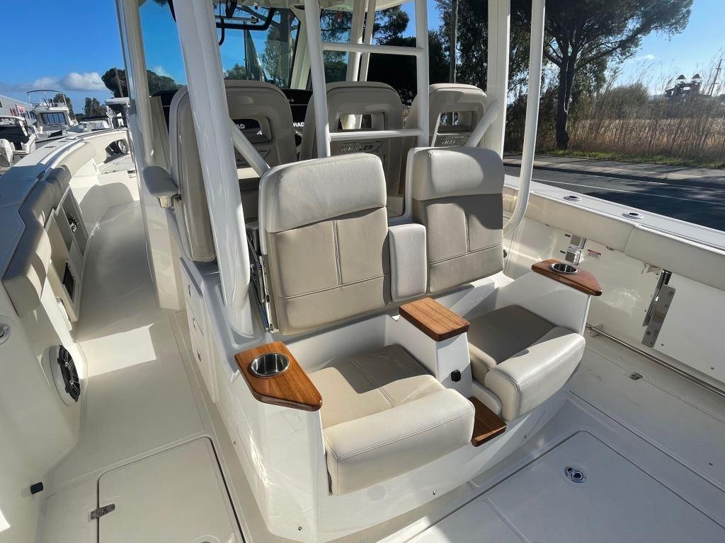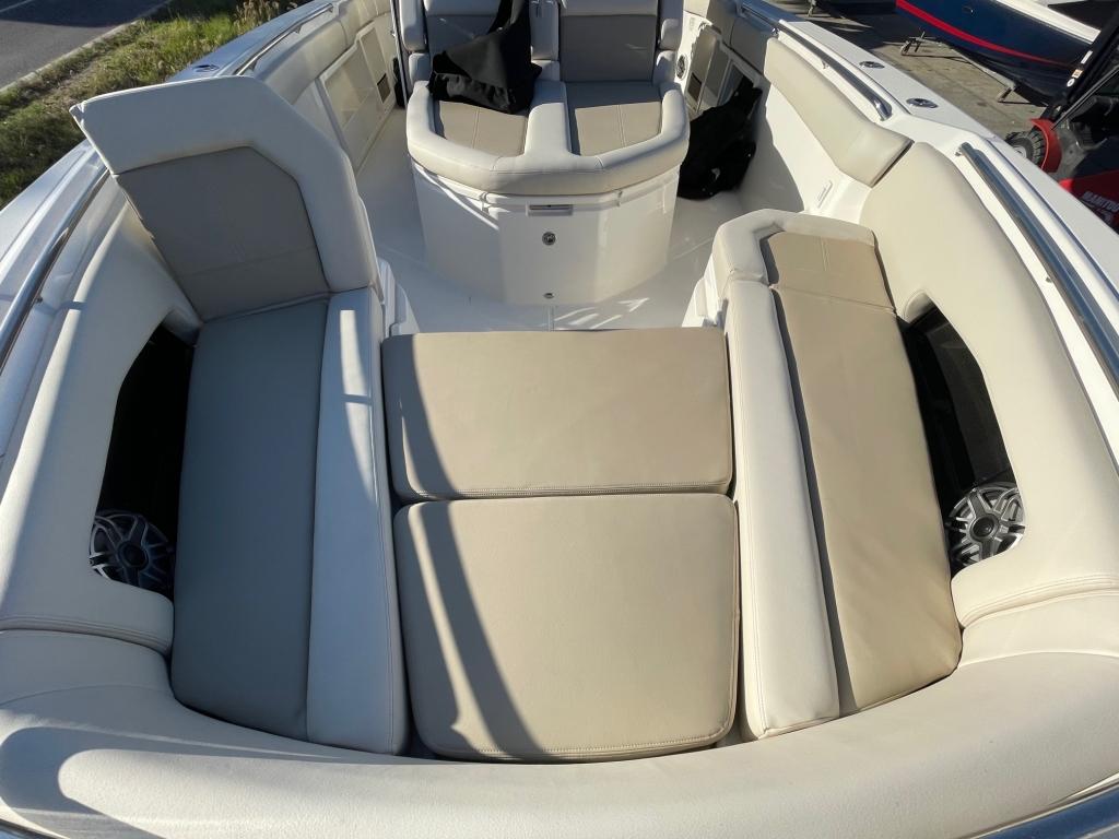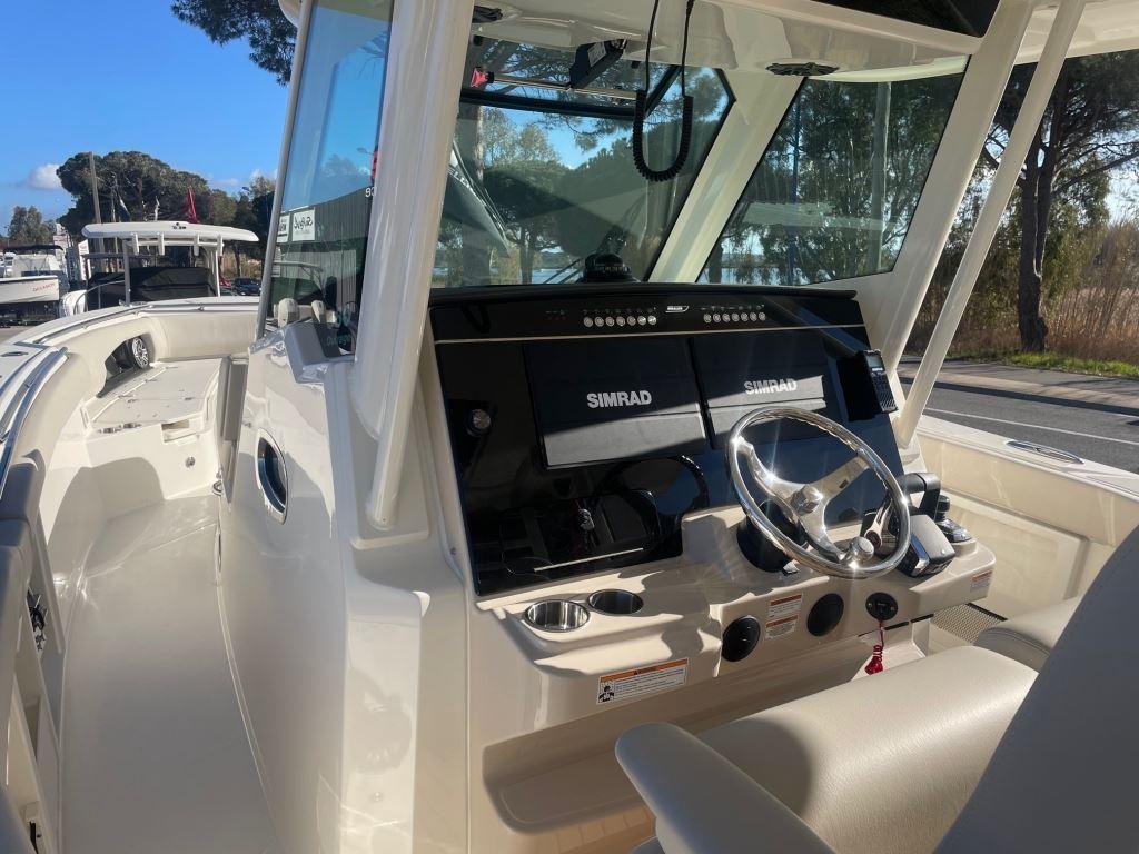 Couleurs : coque blanche, moteurs blancs, montants hard top et liston blancs, logos chrome, tauds noirs.