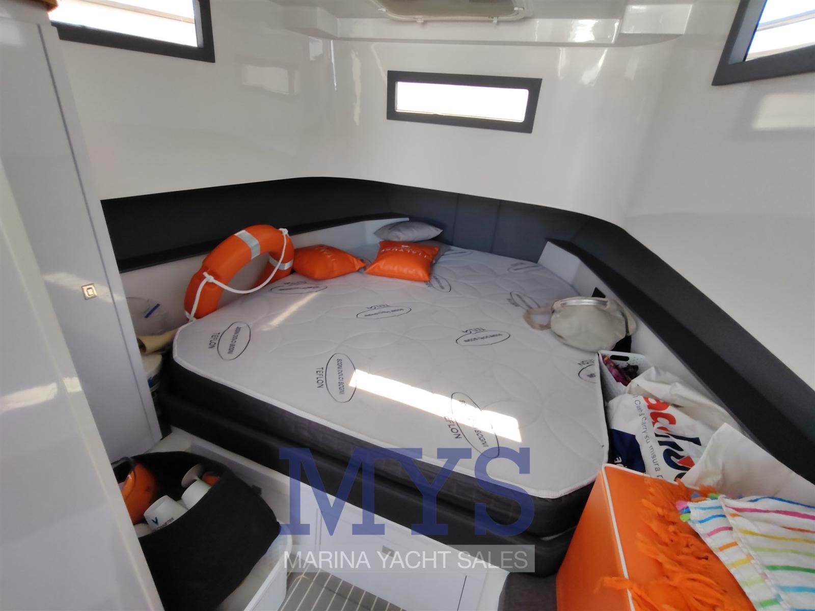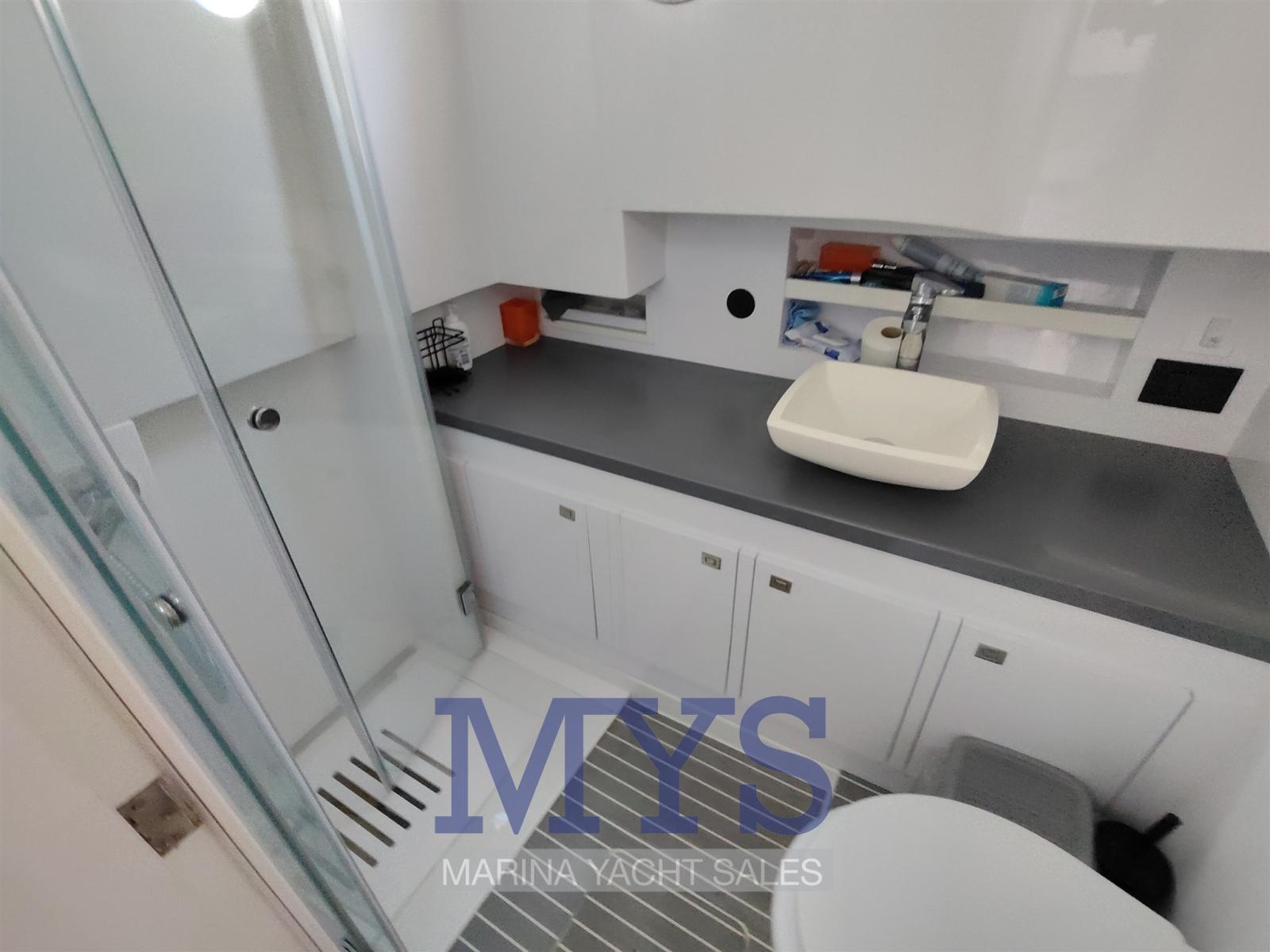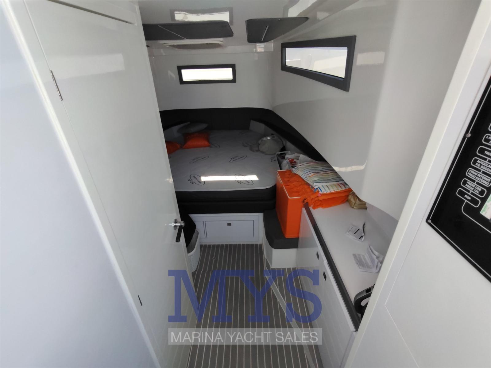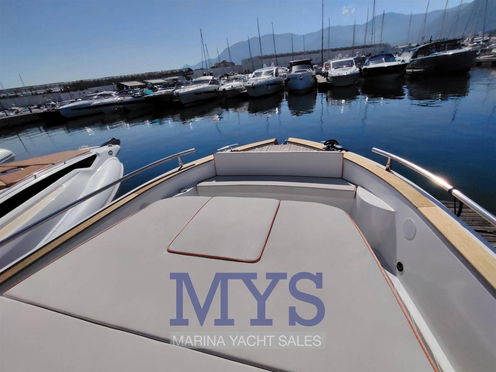 Alarme moteur, Alarme de pompe de cale, Alternateur, Ouverture du compartiment moteur électrique, Eau sous pression, Câble d’alimentation à quai, Douche de cockpit (anche a prua), Flaps électriques, Extincteur(s) fixe(s), Lavabo dans le cockpit, Éclairage de courtoisie, Spots sous-marins, Pompe de cale automatique, Porte latérale, Cockpit en teck (sintetico), Prise de quai, Guindeau électrique, table de cockpit, Corne, T-Top.