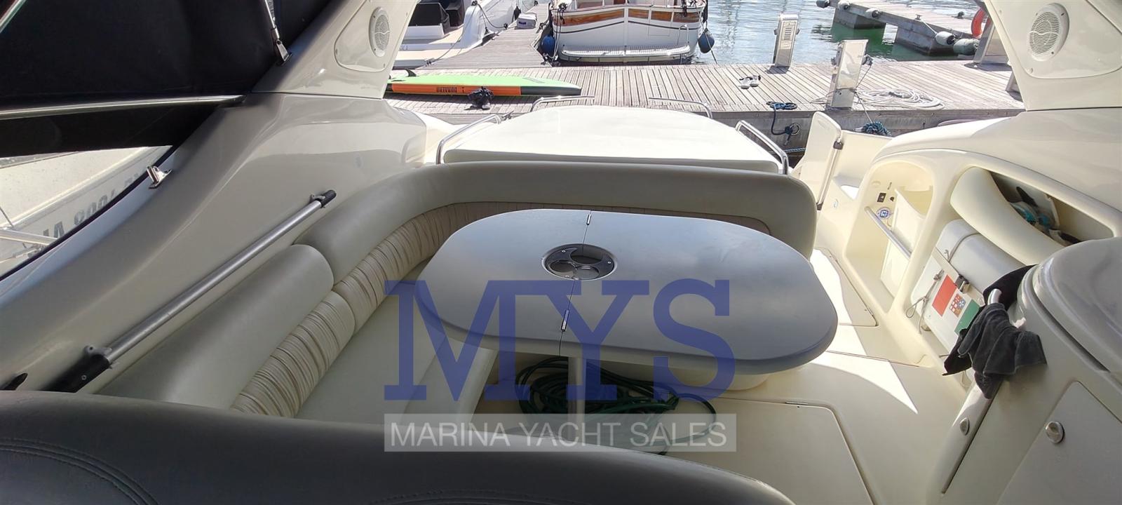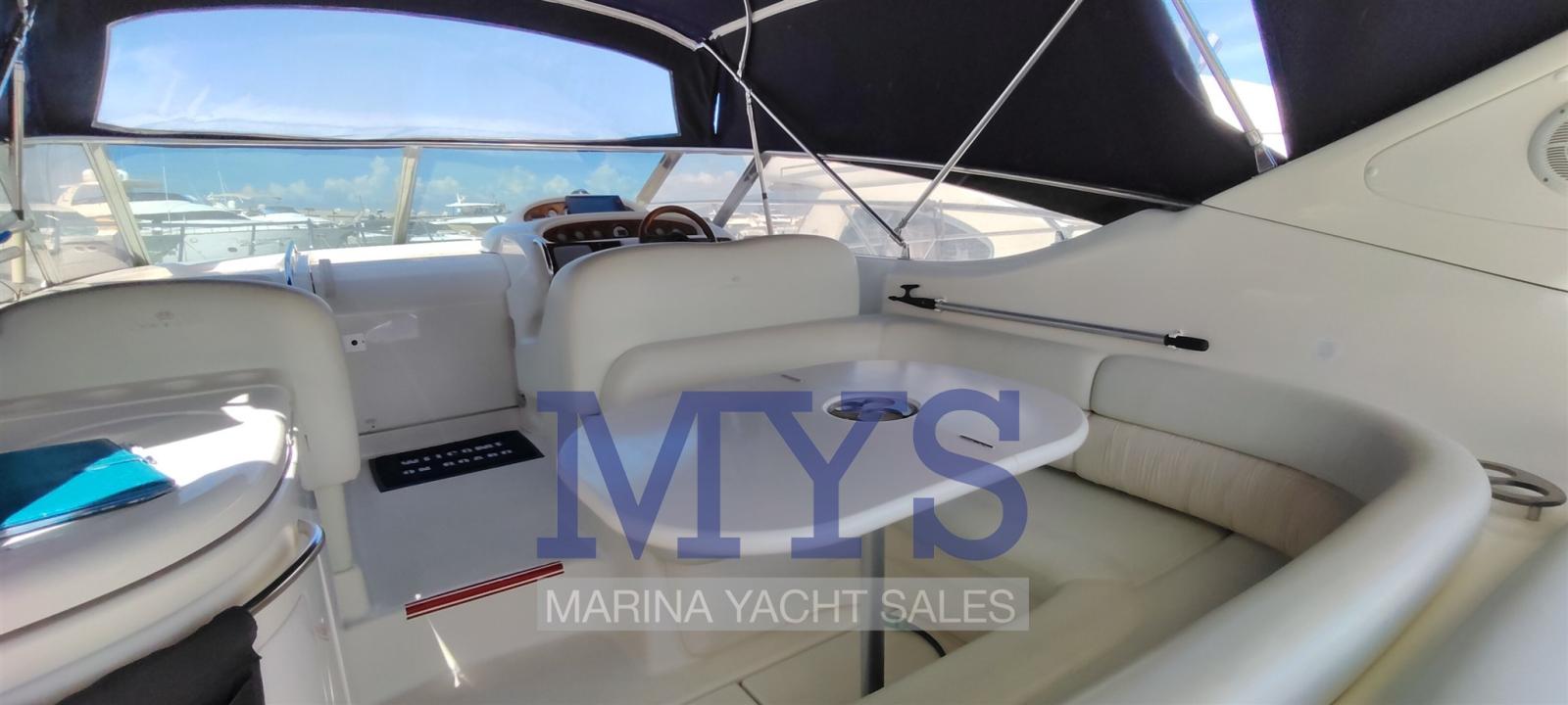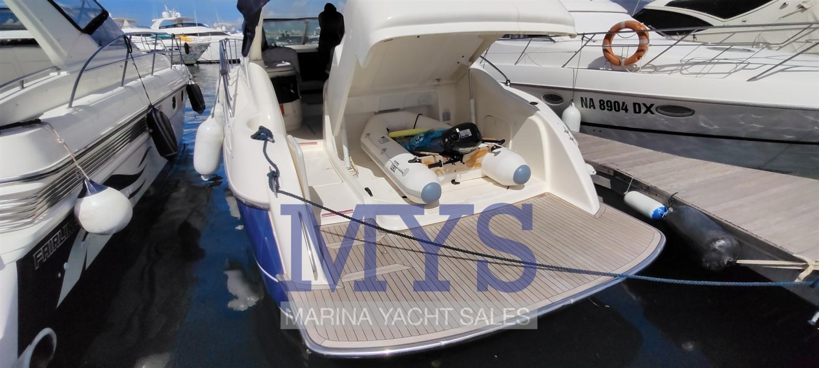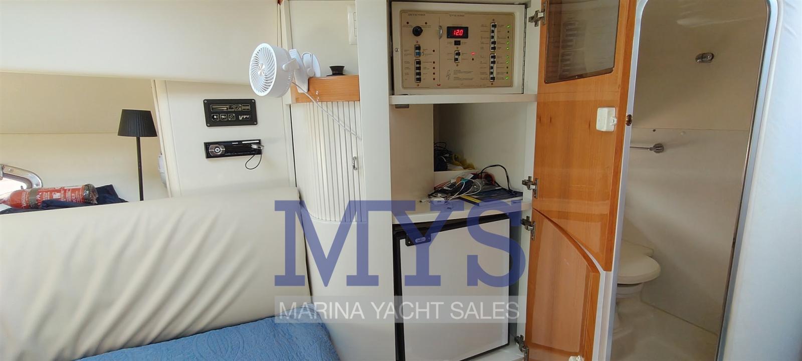 Alarme moteur, Alarme de pompe de cale, Alternateur, Eau sous pression, Câble d’alimentation à quai, Filères, Douche de cockpit, Flaps hydrauliques, Garage à annexe, Indicateurs de flaps, Lavabo dans le cockpit, Éclairage de courtoisie, Plateforme arrière, Pompe de cale automatique, Pont en teck, Porte latérale, Prise de quai, Rollbar, Guindeau électrique, Echelle de bain, table de cockpit, Annexe, Corne, T-Top.