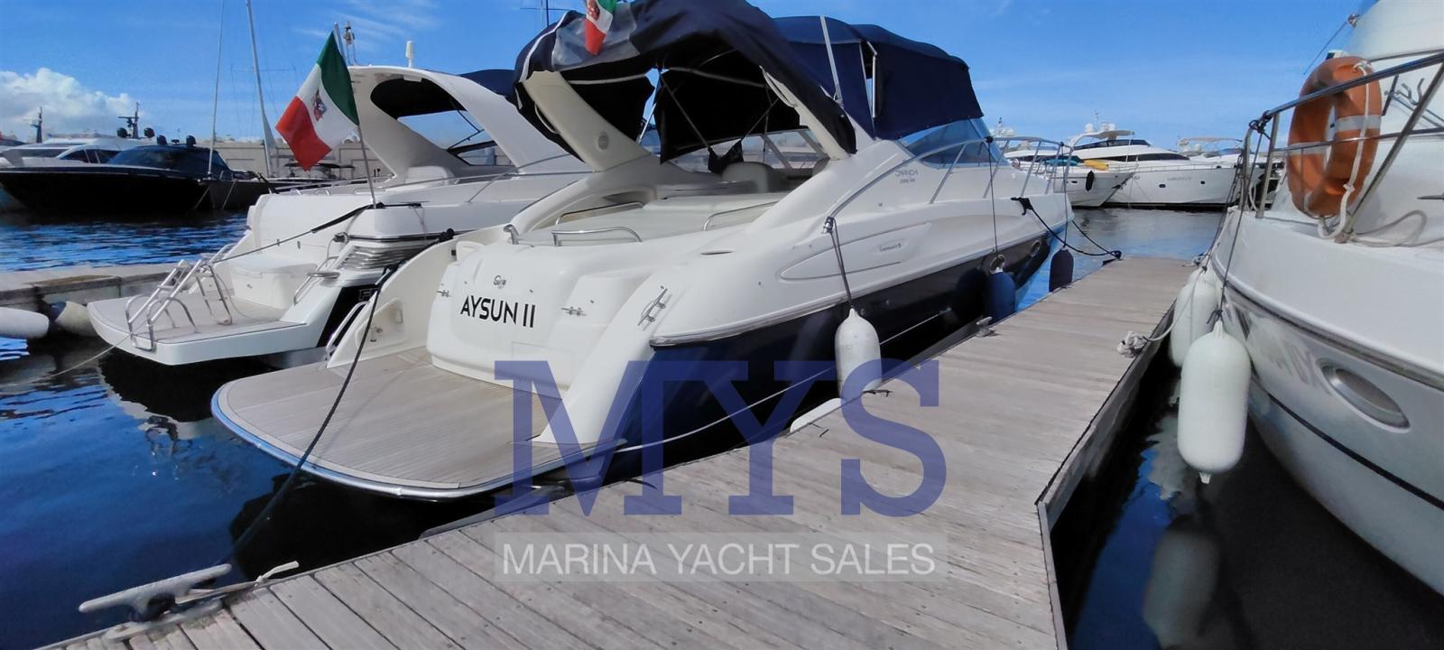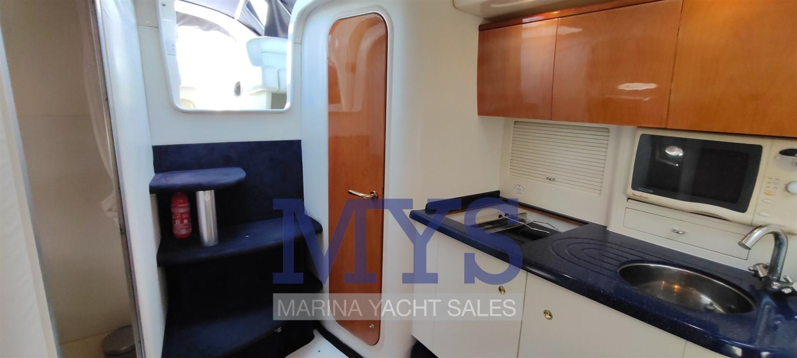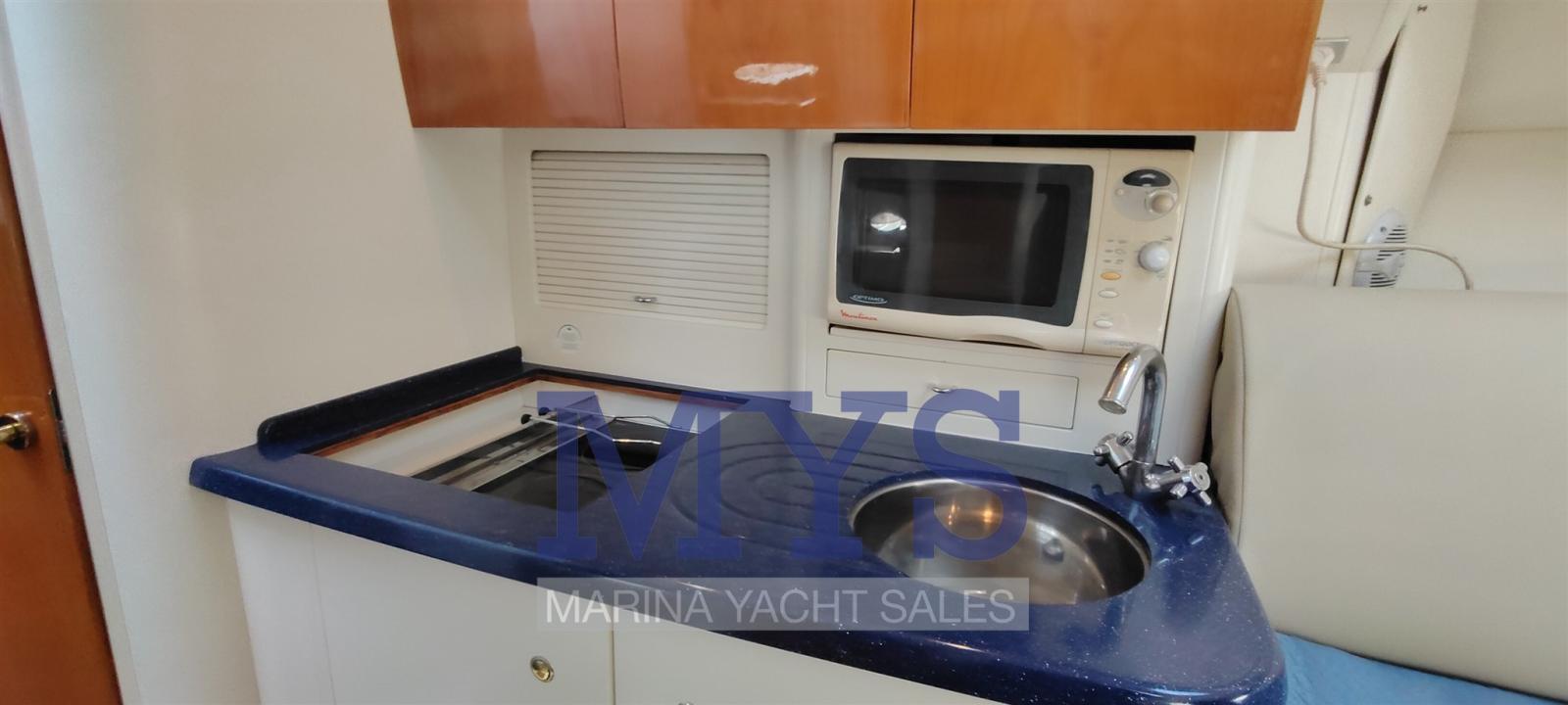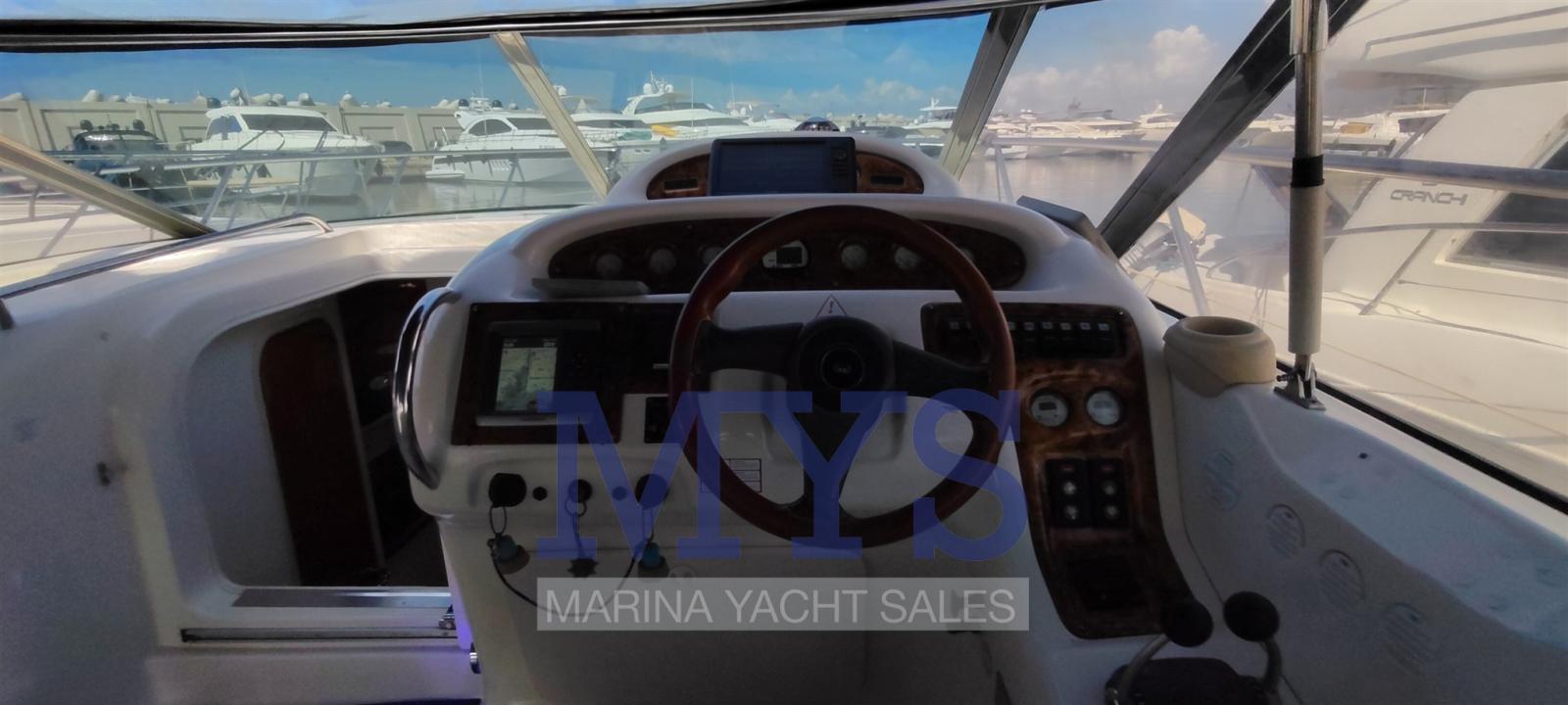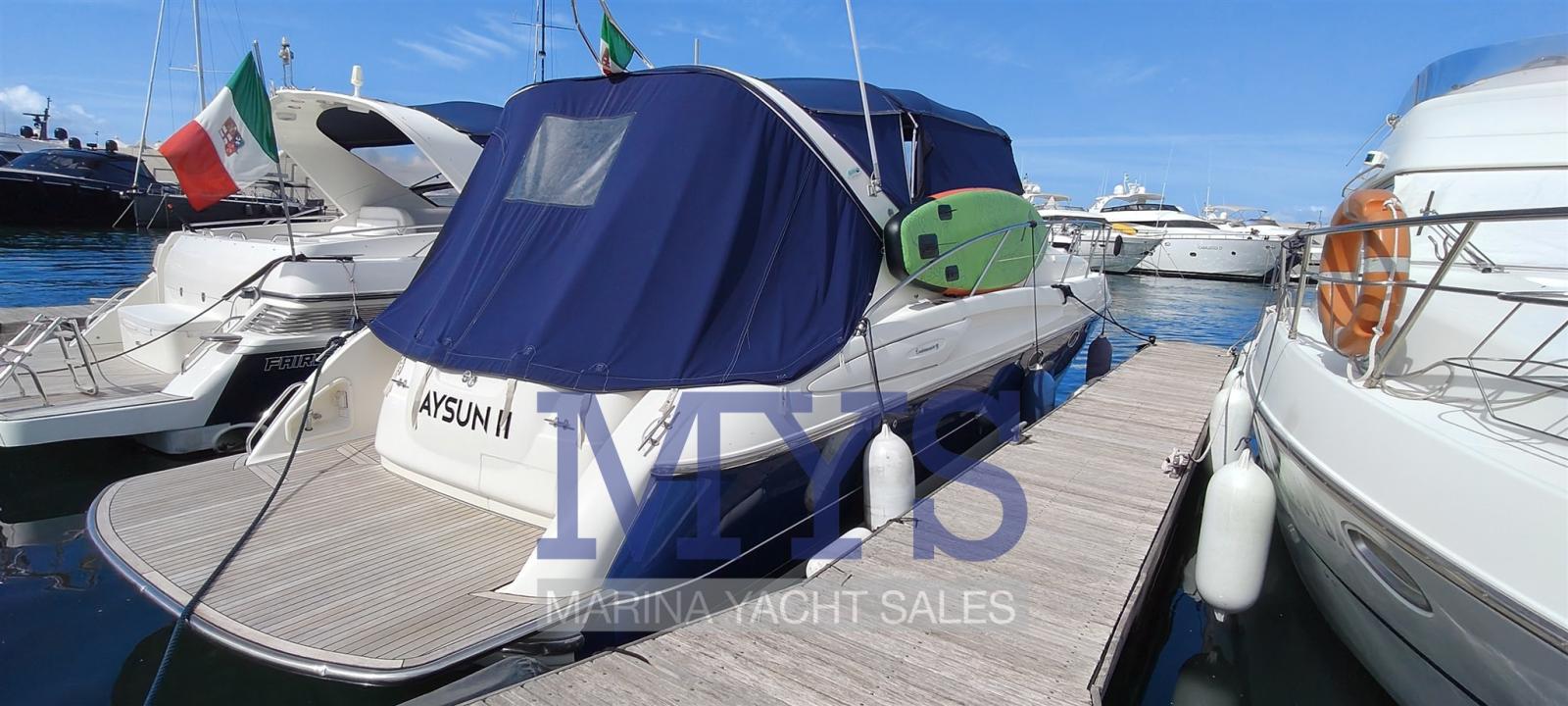 Alarme moteur, Alarme de pompe de cale, Alternateur, Eau sous pression, Câble d’alimentation à quai, Filères, Douche de cockpit, Flaps hydrauliques, Garage à annexe, Indicateurs de flaps, Lavabo dans le cockpit, Éclairage de courtoisie, Plateforme arrière, Pompe de cale automatique, Pont en teck, Porte latérale, Prise de quai, Rollbar, Guindeau électrique, Echelle de bain, table de cockpit, Annexe, Corne, T-Top.