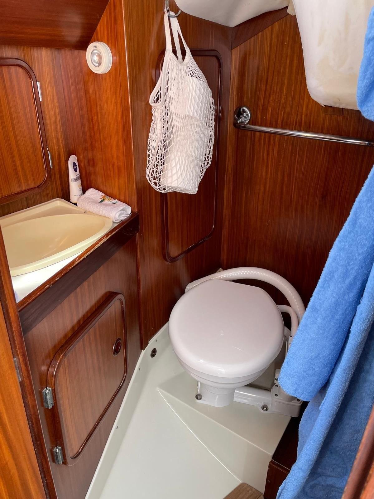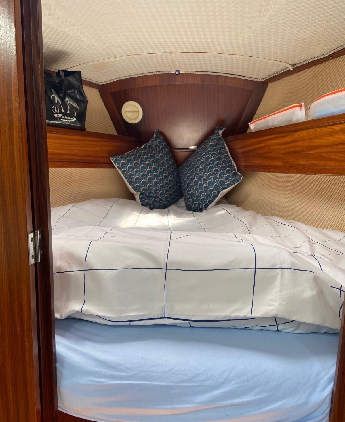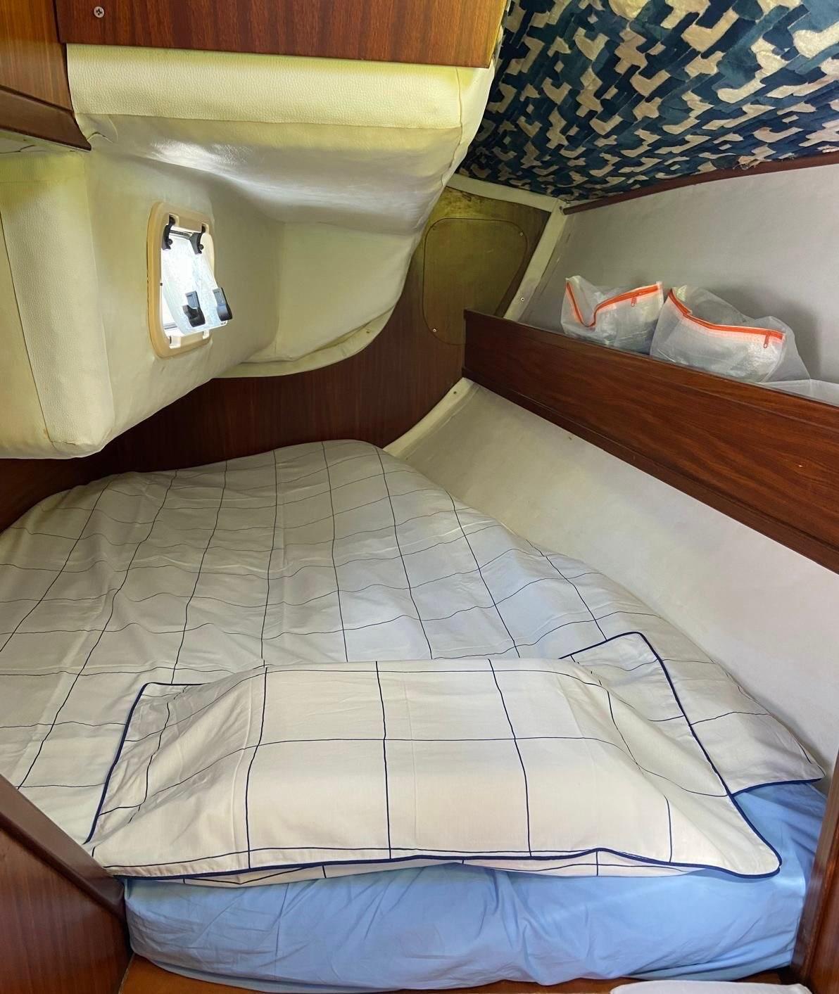 Bimini et capote et nouveaux rideaux, conduites d’eau et nouvelles toilettes,