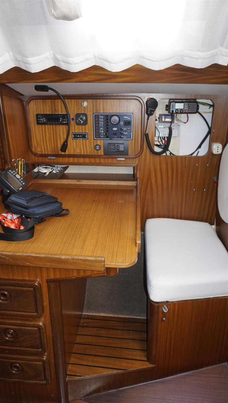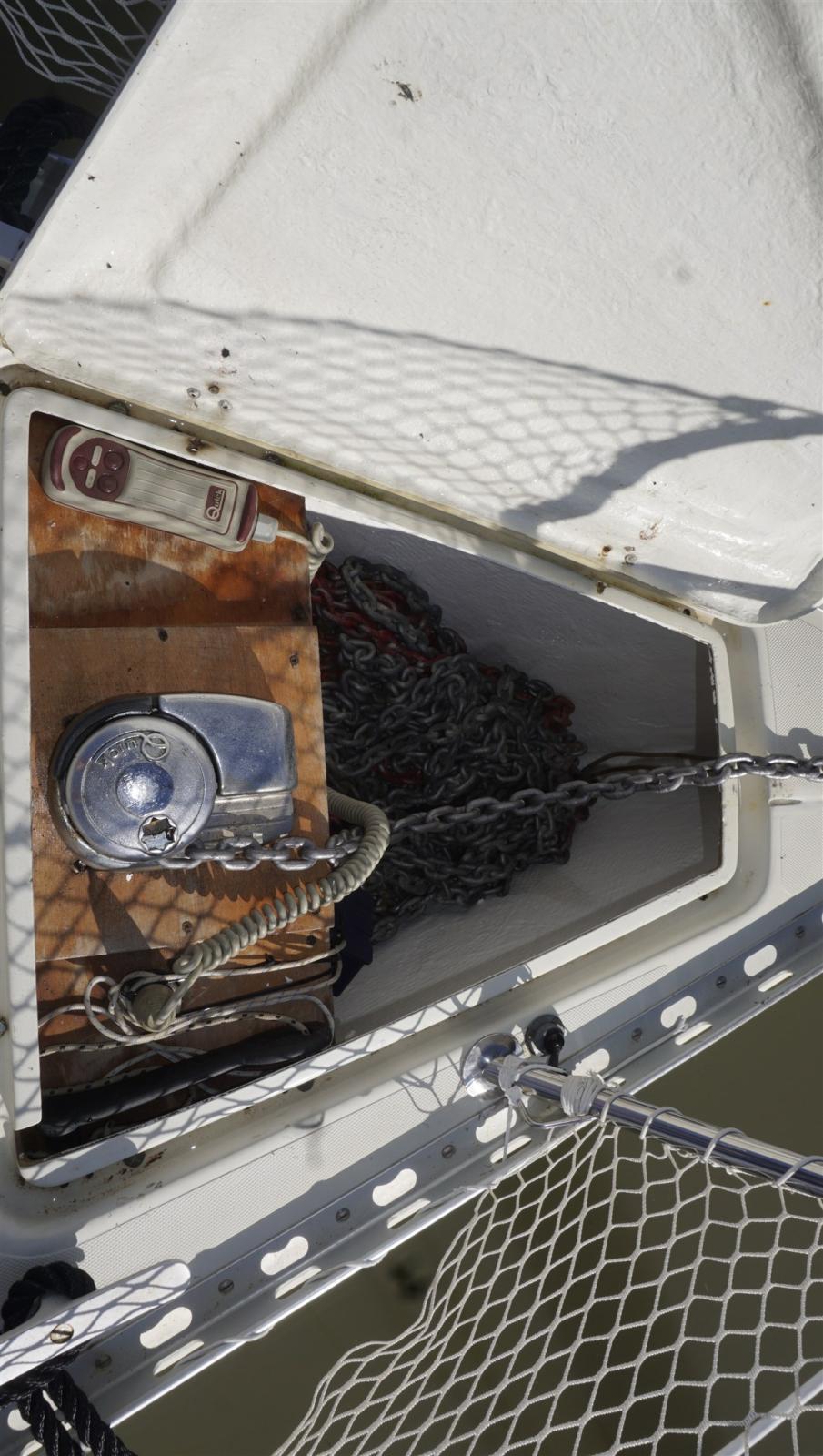Alarme moteur, Alternateur, Ancre (60 m chain), Eau sous pression, Batteries (2022/23), Chargeur de batterie (VICTRON 30A), Douche de cockpit, Panneau solaire, Défenses, Passerelle, Plateforme arrière, Pompe de cale manuelle, Prise de quai, Guindeau électrique, Echelle de bain, table de cockpit, Windex.