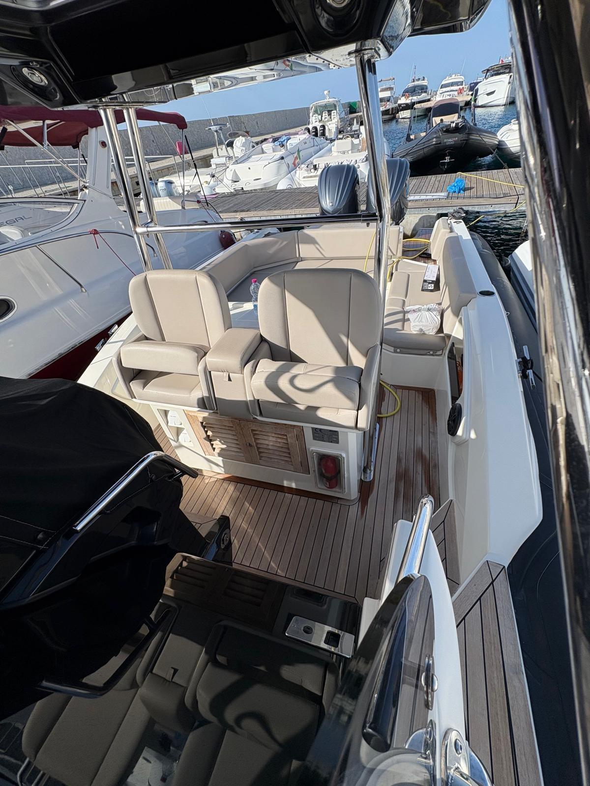 Alarme moteur, Alarme de pompe de cale, Alternateur, Eau sous pression, Passavant en teck, Câble d’alimentation à quai, Douche de cockpit, Lavabo dans le cockpit, Éclairage de courtoisie, Plateforme arrière, Pompe de cale automatique, Pompe de cale manuelle, Cockpit en teck, Prise de quai, Guindeau électrique, Echelle de bain, table de cockpit, Corne, T-Top.