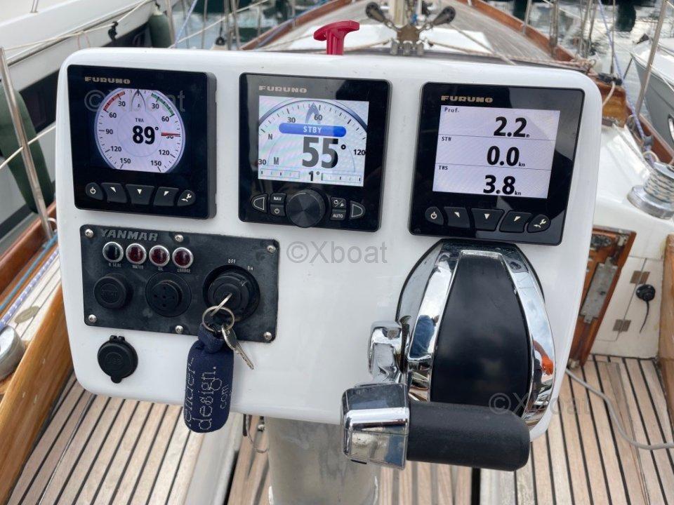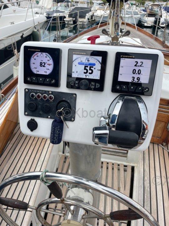 XBOAT ref :6209.ce Chassiron Grande Croisière est le modèle le plus connu du chantier Richard, mais cette version Flus Deck est très rare et très probablement unique. La conception générale est celle des carènes classiques qui allient qualités marines et confort à bord où il fait bon vivre. La construction est solide et sérieuse, quille longue, gréement bien équilibré. Acajou et iroko se partagent l'habillement du pont et de l'intérieur. Au niveau structurel l'ensemble coque/pont est renforcé par des cloisons intérieurs en C.P marine de 15mm d'épaisseur. En 2018 le bateau a été équipé d'une commande électrique pour le moteur Yanmar de 30CV ce qui rend les manoeuvres de port extrêmement douces et précises. Une électronique Furuno de qualité a été installée : sondeur, centrale de vent, pilote automatique directement sur secteur de barre. La coque est en polyester armé selon les spécifications du Lloyd's. Mon Chassiron est entretenu toute l'année par un marin qualifié. Je reste ouvert à toutes propositions après visite. Plus d'informations et photos sur le site xboat.fr