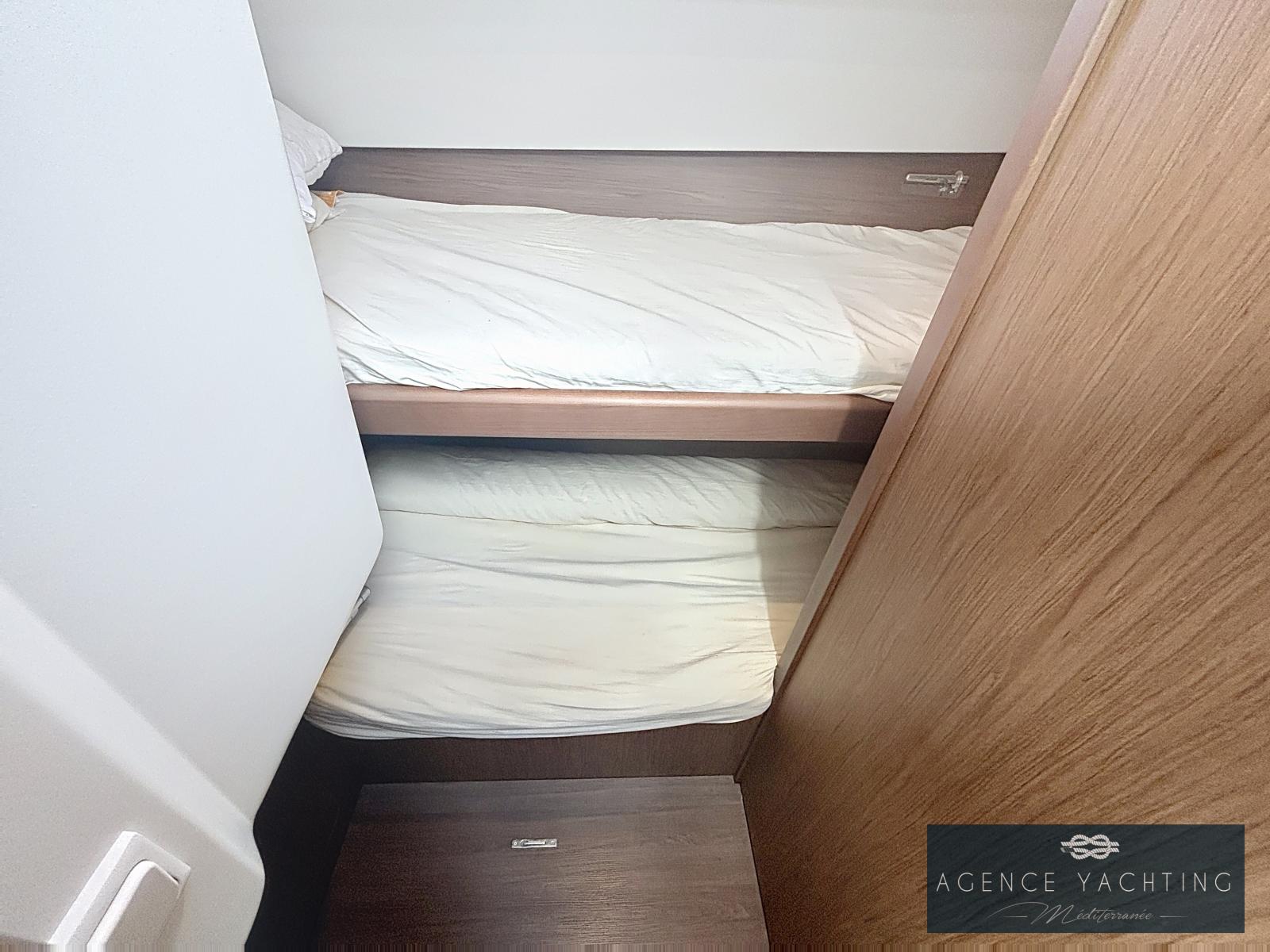 Son aménagement intérieur lumineux et spacieux, pensé pour optimiser le confort de vie à bord, se compose d’un salon accueillant, d’une cuisine équipée et de cabines bien agencées, permettant d’embarquer plusieurs passagers en toute sérénité.