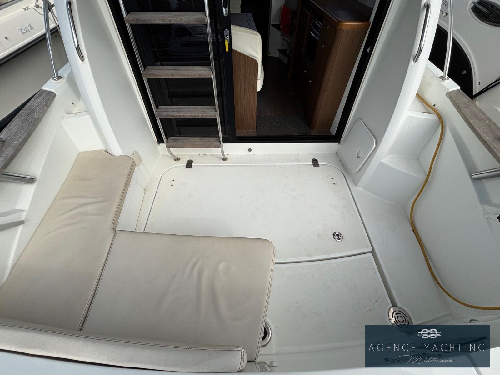 - Banquette en L et coussins de cockpit. Sellerie assortie