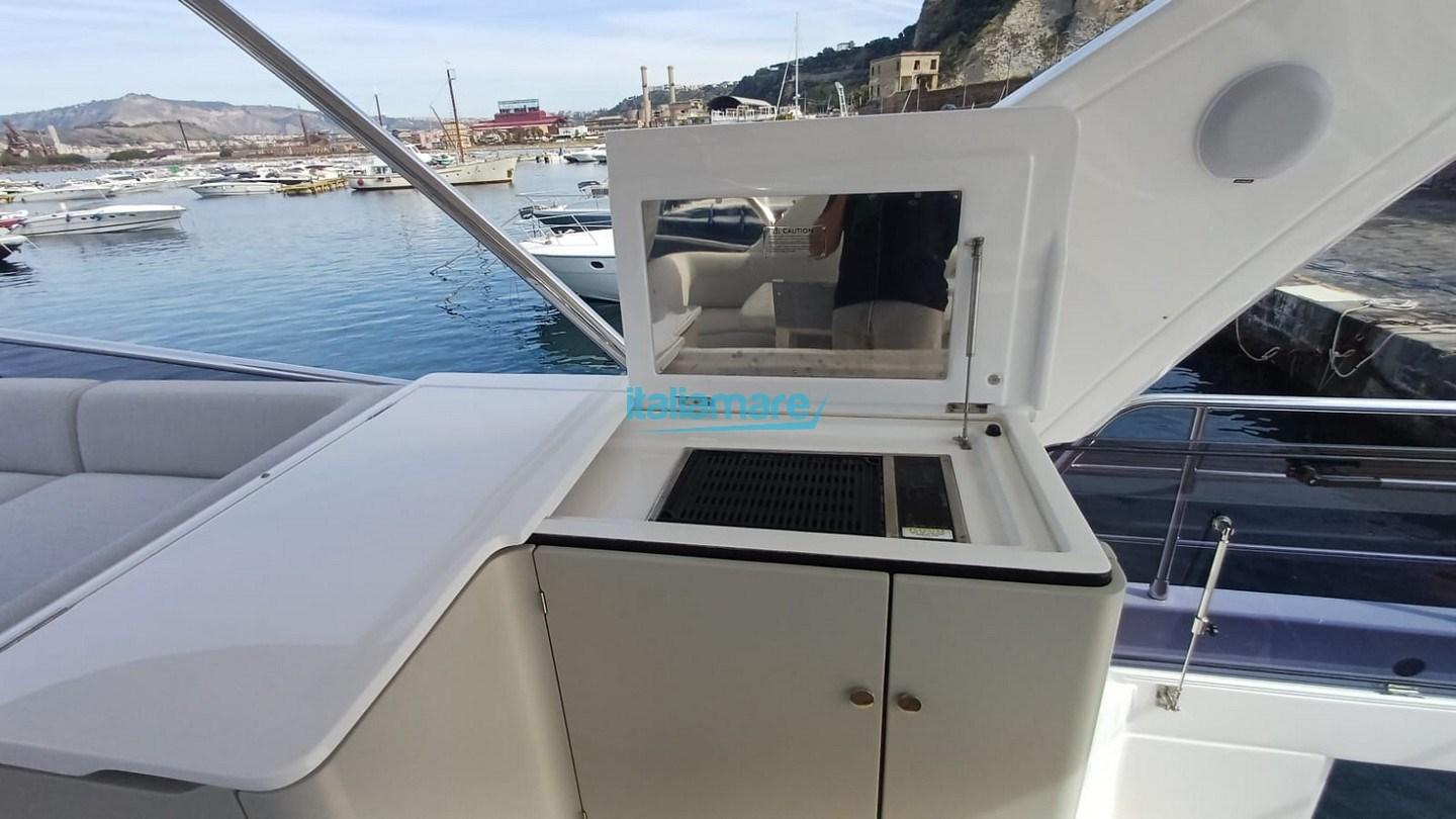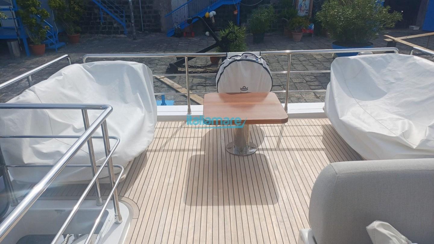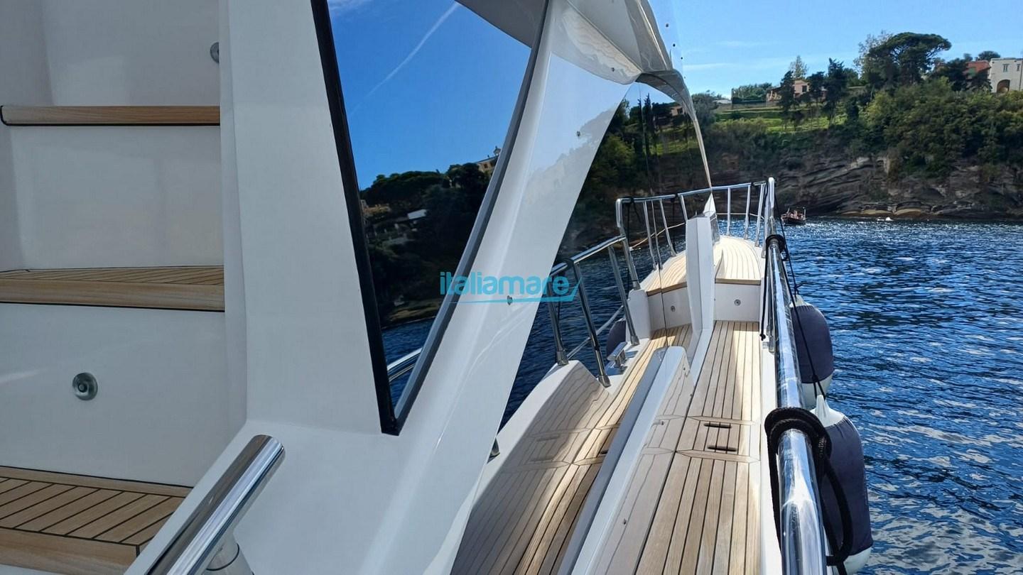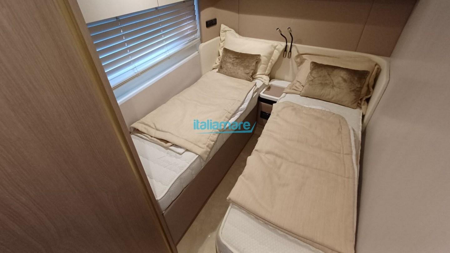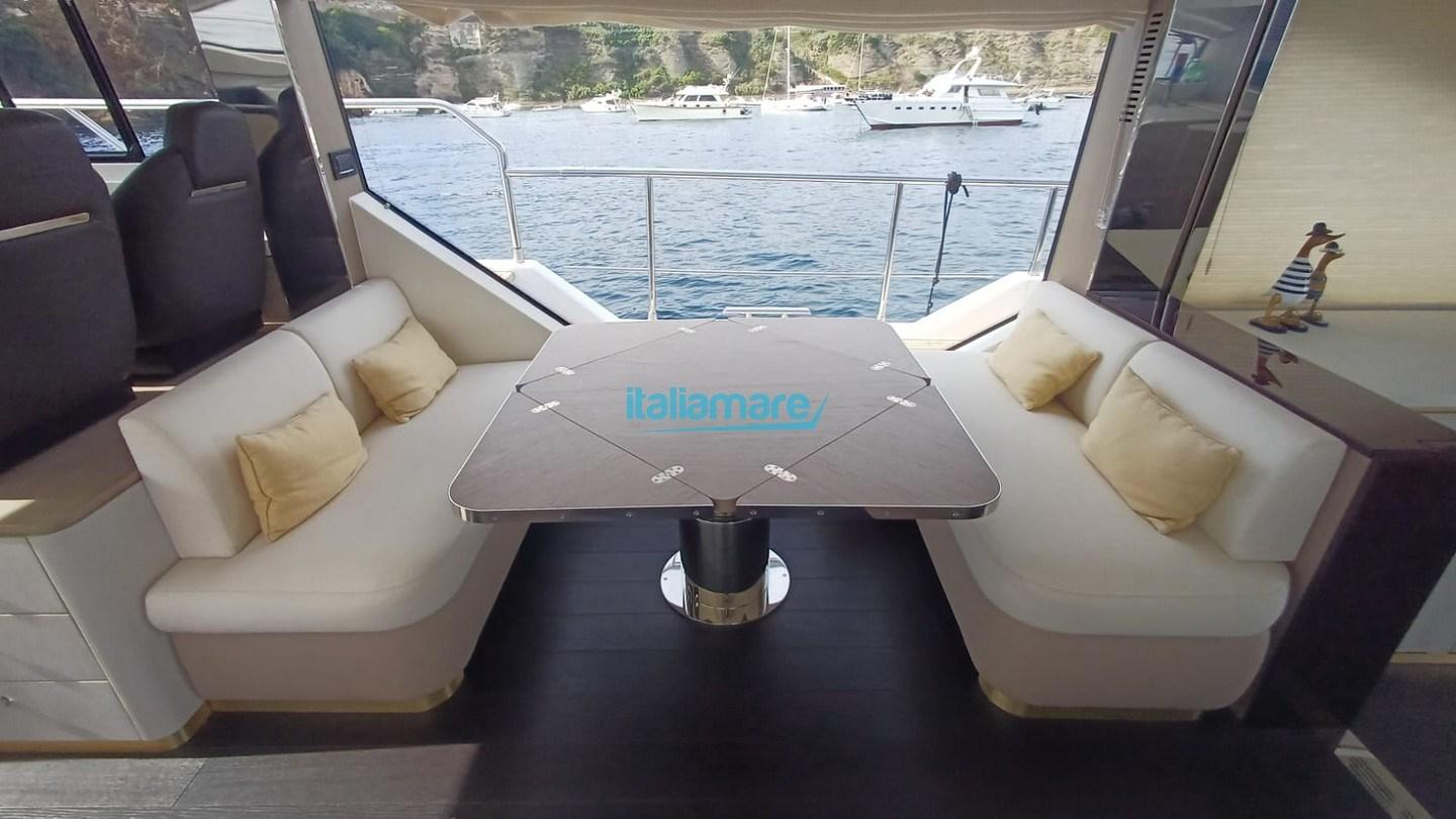 Accessoires principaux : Climatisation - Groupe électrogène 20kW - GPS - Direction par joystick - Seakeeper 9 - Auvent électrique dans le cockpit et sur le flybridge - Teck sur le flybridge - Ponts latéraux en teck - Passerelle - 2 téléviseurs