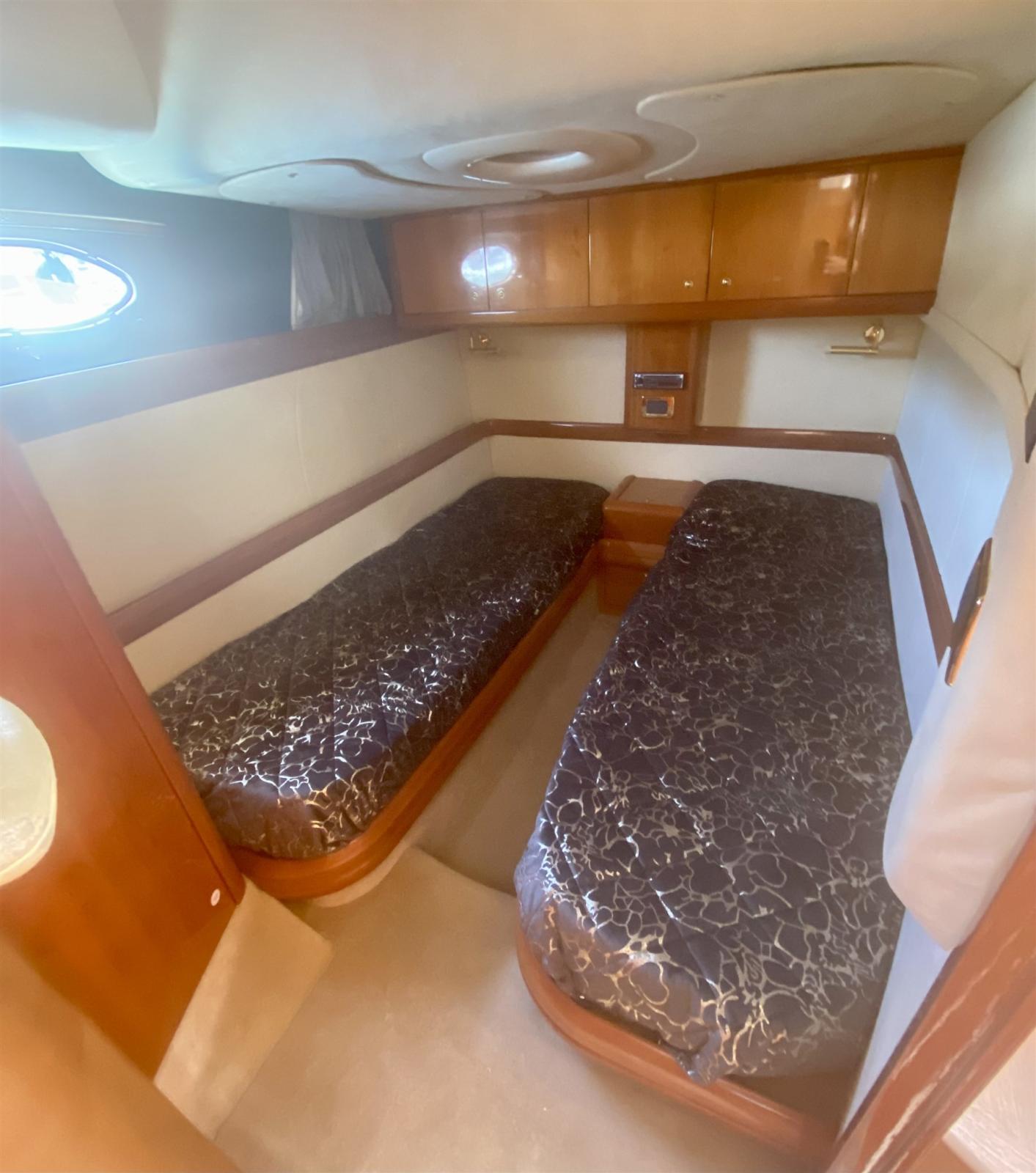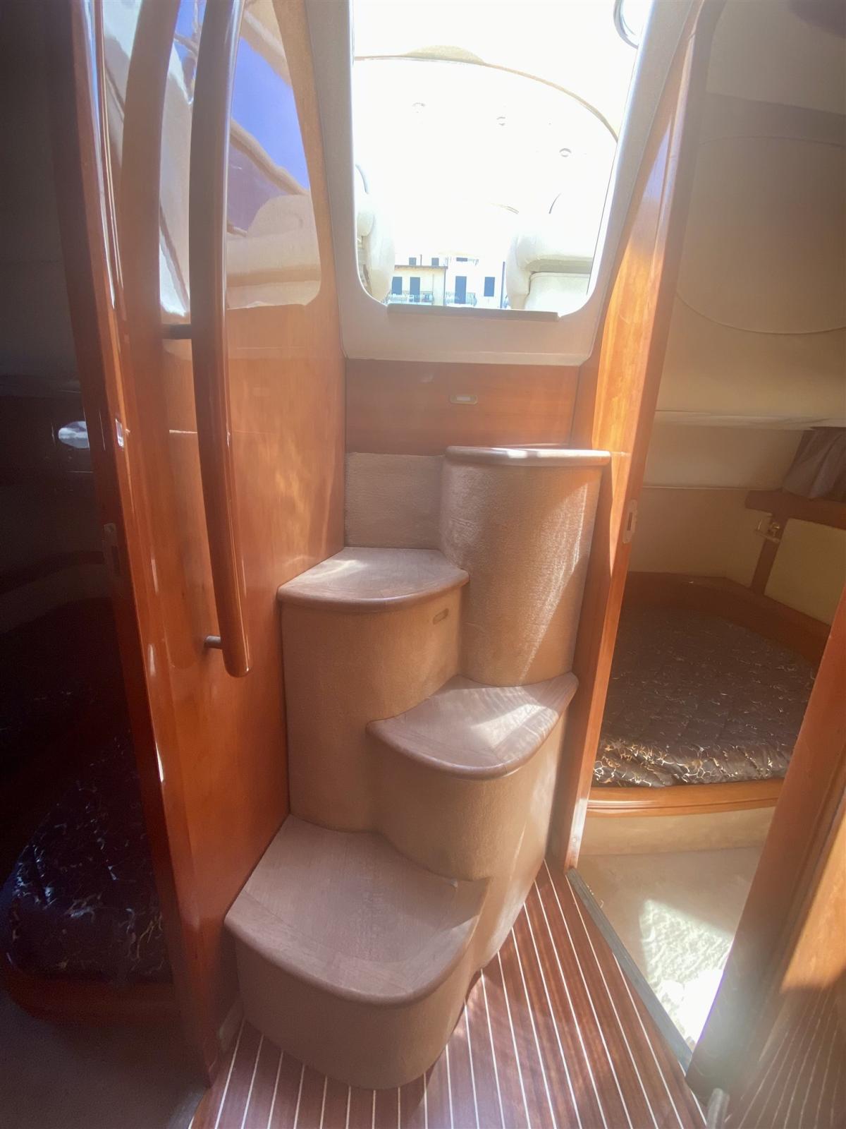 Alarme moteur, Alarme de pompe de cale, Alternateur, Eau sous pression, Câble d’alimentation à quai, Couleur spéciale (SCAFO BLU), Douche de cockpit, Phare de poursuite, Flaps hydrauliques, Garage à annexe, Extincteur(s) fixe(s), Lavabo dans le cockpit, Éclairage de courtoisie, Passerelle, Plateforme arrière, Pompe de cale automatique, Pompe de cale manuelle, Cockpit en teck, Prise de quai, Rollbar, Guindeau électrique, Echelle de bain, table de cockpit, Filières avec sortie latèrale, Corne, Winch électrique arrière.