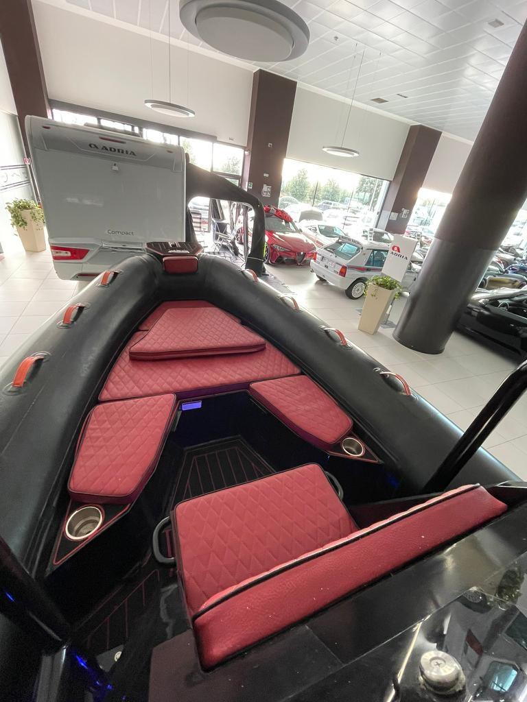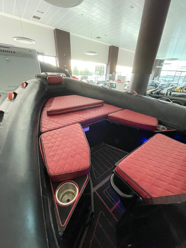 Frattin Yachting vous propose une opportunité de seconde main à ne pas manquer : le Desner 700. Ce bateau pneumatique de sport de 7 mètres attire immédiatement l’attention grâce à sa palette de couleurs audacieuses. La coque et les tubulaires sont d’un noir élégant et profond, qui contraste fortement avec les coussins en rouge feu vif, donnant un look agressif et moderne. Propulsé par un puissant moteur hors-bord Honda de 150 ch, le Desner 700 garantit d’excellentes performances et une agilité pour des balades dynamiques. À bord, l’espace est bien réparti, avec de grands bains de soleil à l’avant optimisés pour un maximum de confort. C’est un excellent choix pour ceux qui veulent un bateau fiable, rapide et visuellement frappant.