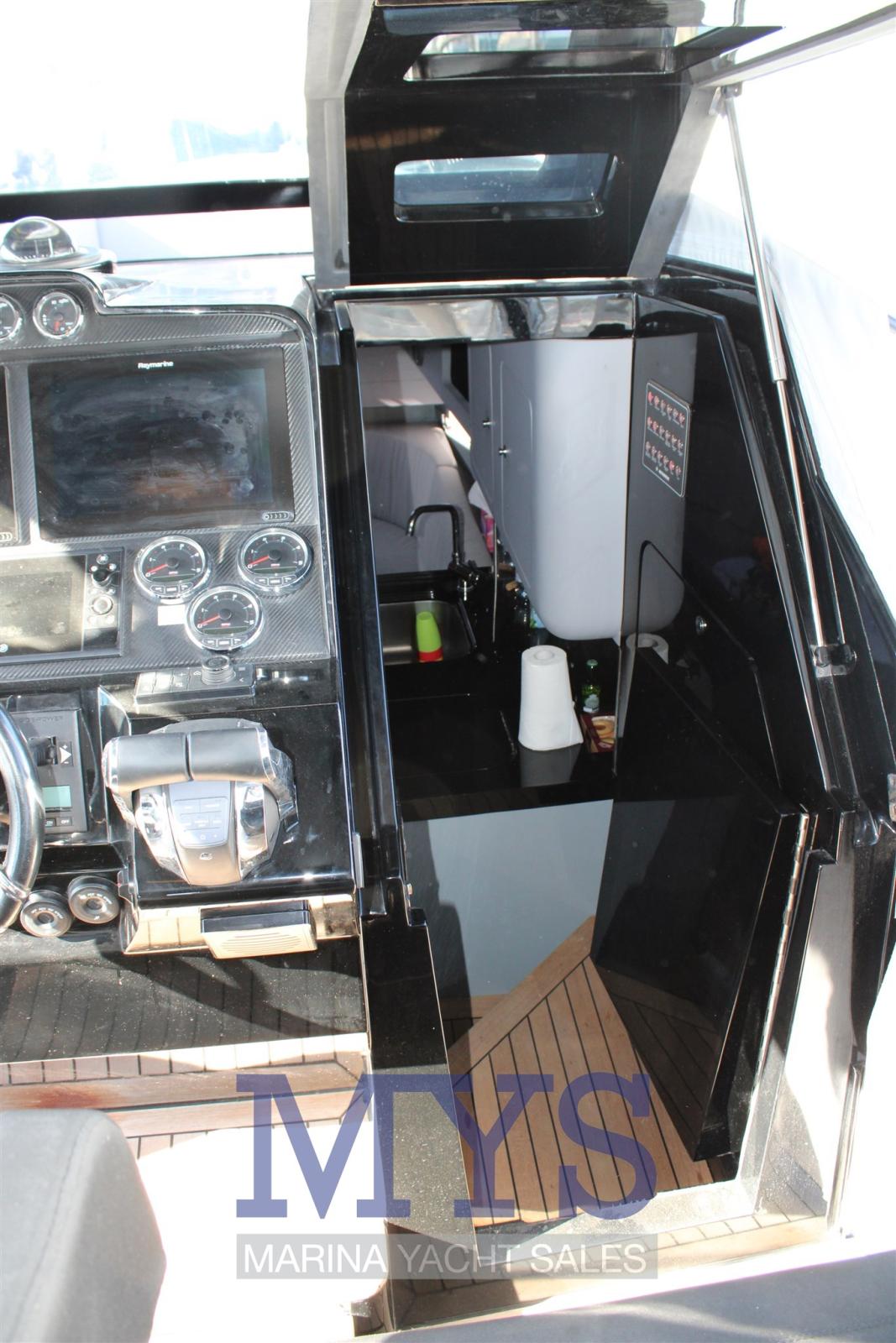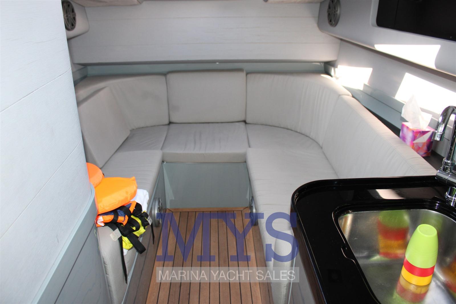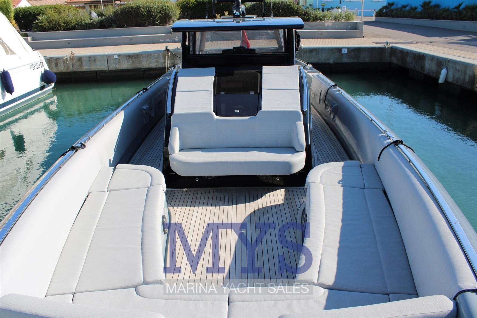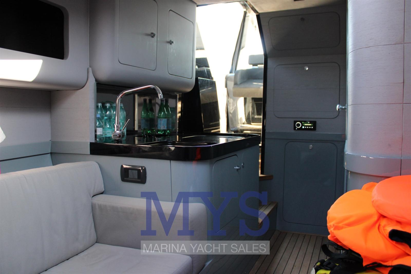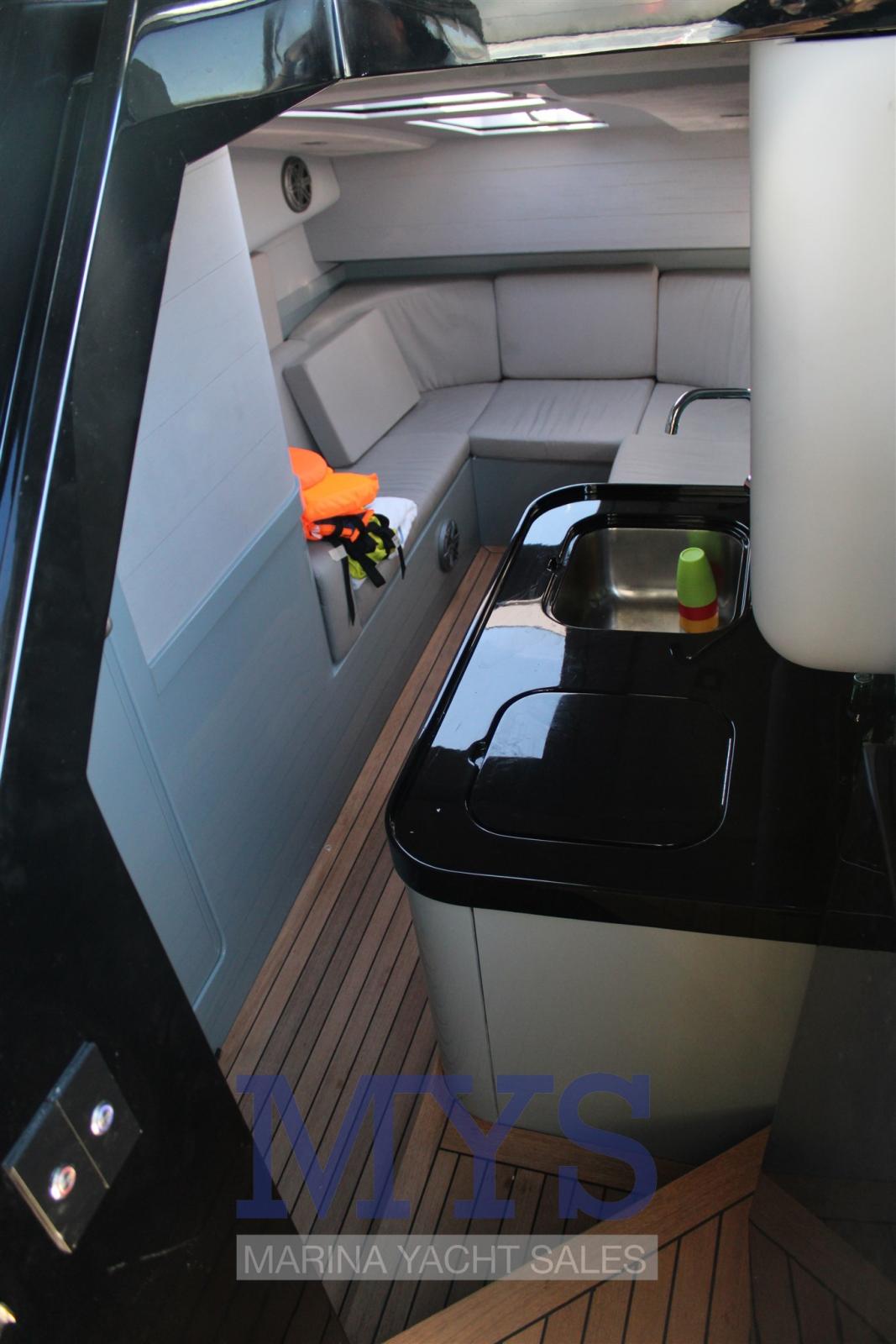 Alarme moteur, Eau sous pression, Douche de cockpit, Phares fixes arrière, Extincteur(s) fixe(s), Éclairage de courtoisie, Spots sous-marins, Plateforme arrière, Pompe de cale automatique, Cockpit en teck, Prise de quai, Rollbar, Guindeau électrique, table de cockpit, Corne.