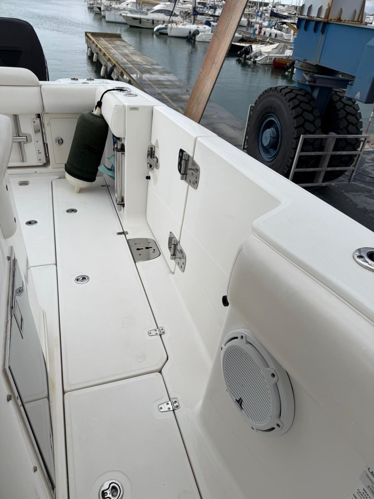 Alarme gaz, Alarme moteur, Alarme de pompe de cale, Alternateur, Eau sous pression, Câble d’alimentation à quai, Douche de cockpit, Phare de poursuite, Flaps électriques, Extincteur(s) fixe(s), Indicateurs de flaps, Lavabo dans le cockpit, Éclairage de courtoisie, Pompe de cale automatique, Pompe de cale manuelle, Pompe de Lavage du Pont, Porte latérale, Prise de quai, Guindeau électrique, Echelle de bain, table de cockpit, Corne, T-Top.