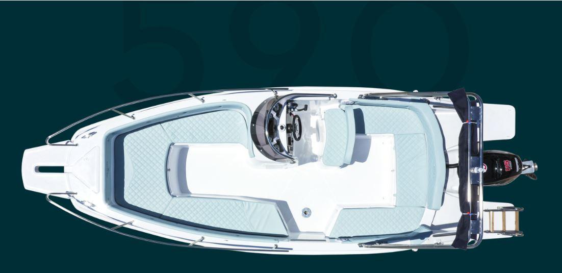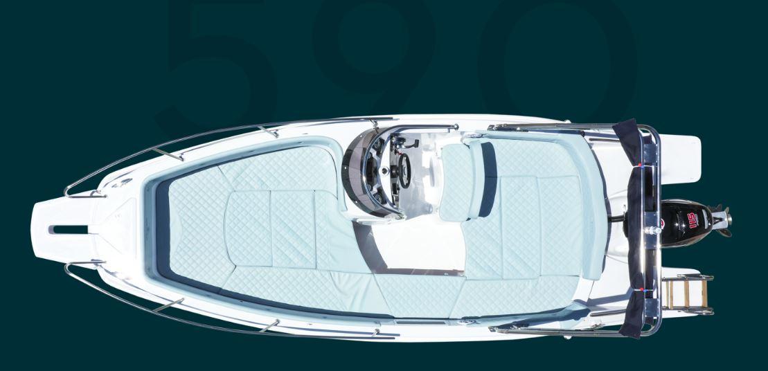 L’EDEN 590 est une nouveauté de la marque Marinello. Ils ont revisité le design de la proue créant une ligne plus définie carré et nettement plus spacieuse !