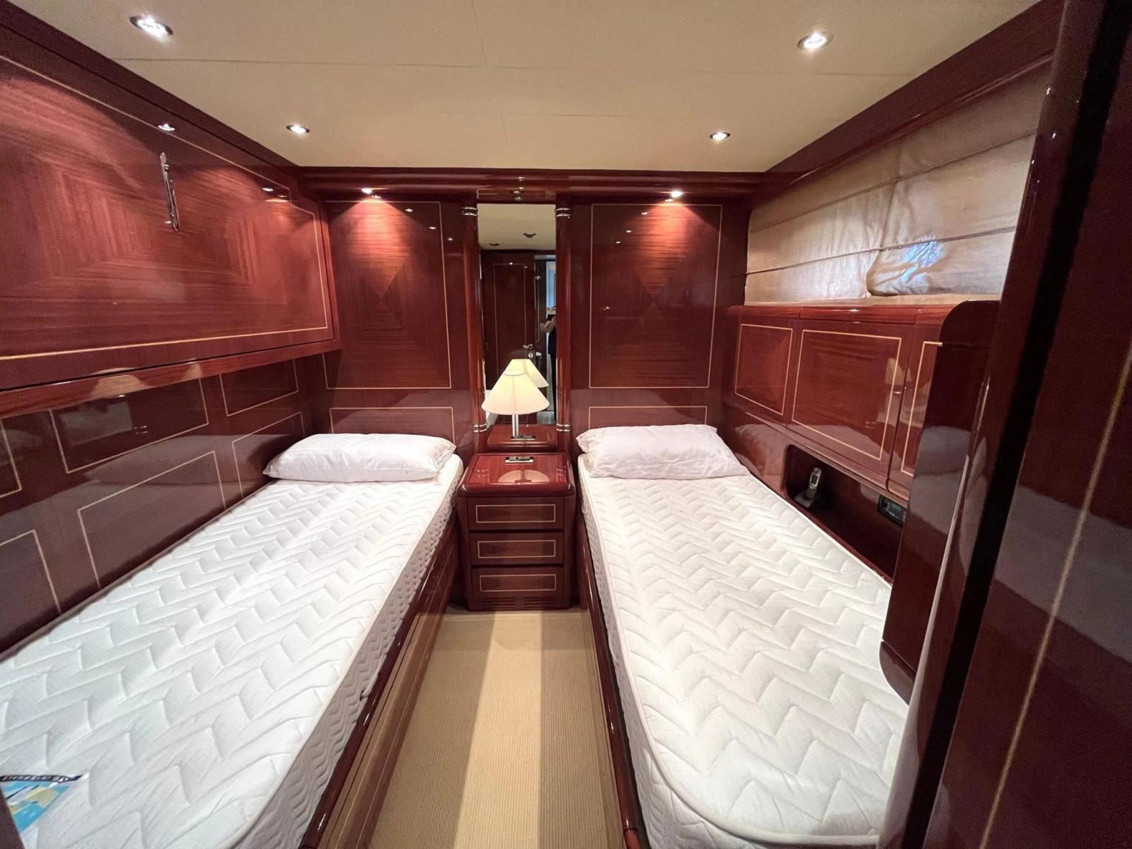 D’une longueur de 22.23 m, ce modèle 2005 est motorisé par MTU (1500 CV) .