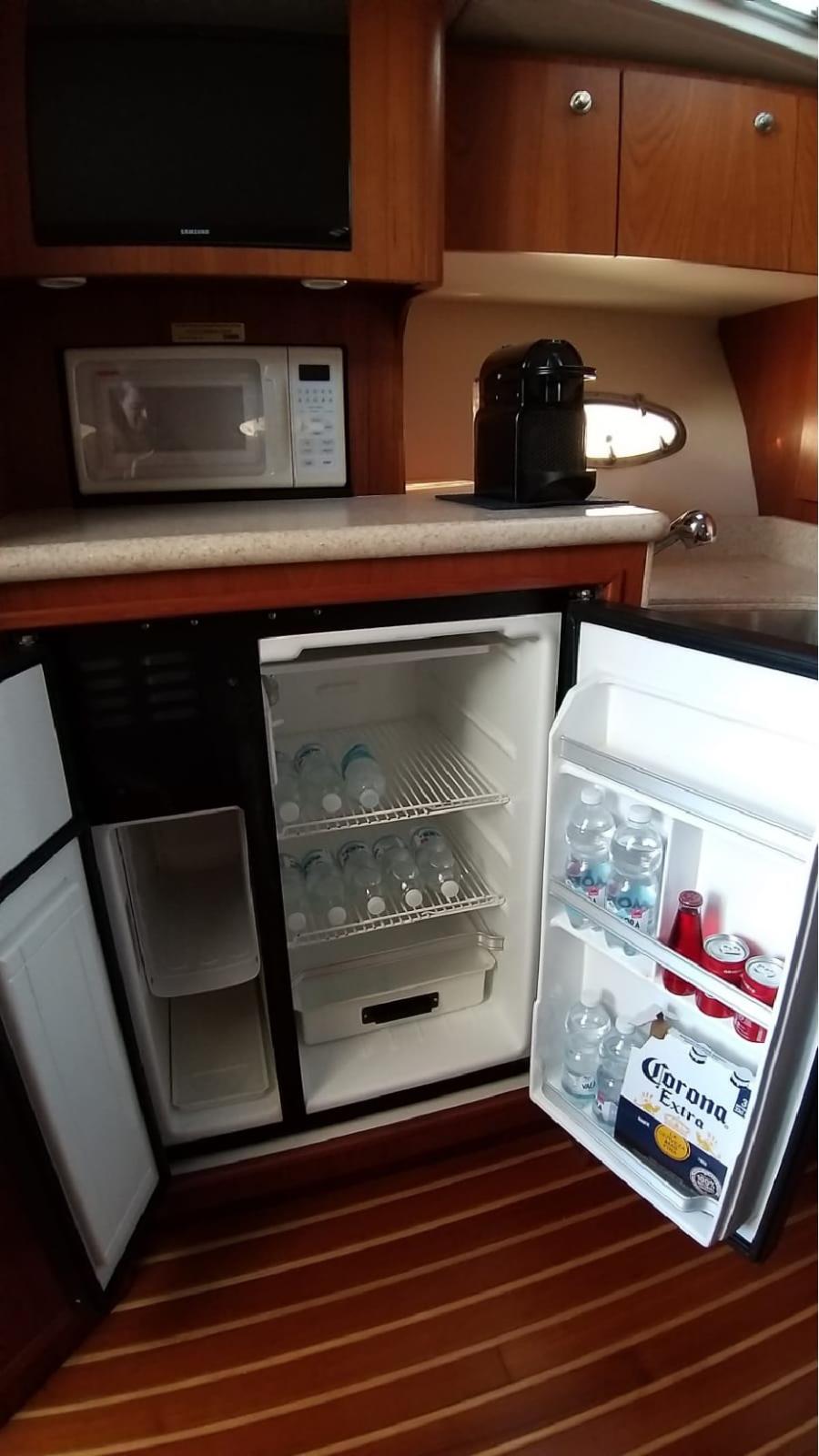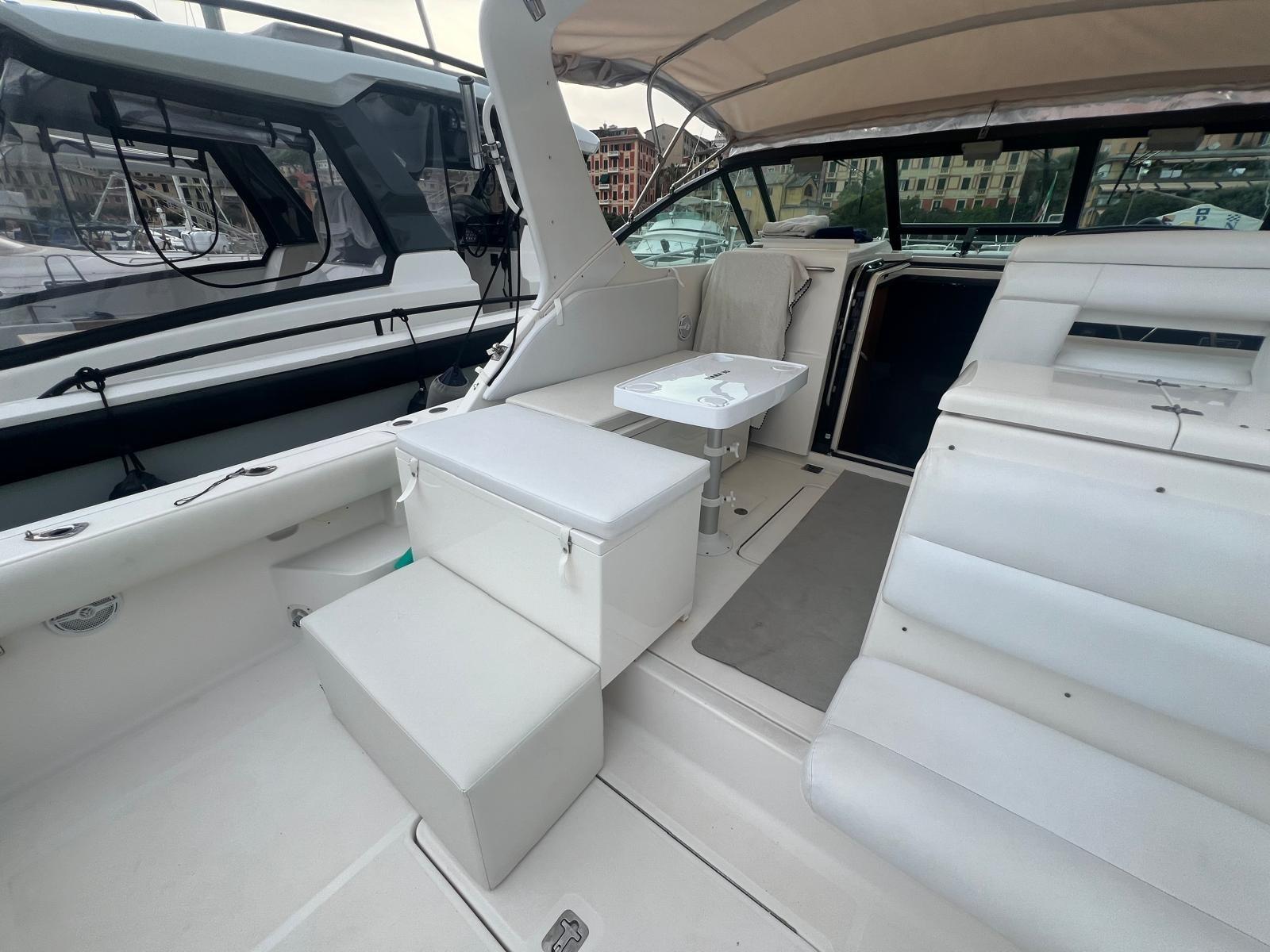 Alarme moteur, Alarme de pompe de cale, Ancre (CON CATENA IN ACCIAIO INOX), Eau sous pression, Douche de cockpit, Phare de poursuite (DOPPIO), Flaps électriques, Extincteur(s) fixe(s), Lavabo dans le cockpit, Éclairage de courtoisie, Plateforme arrière, Pompe de cale automatique, Pompe de cale manuelle, Porte latérale (SPECCHIO POPPA), Prise de quai, Rollbar, Guindeau électrique, Echelle de bain, table de cockpit, Corne.