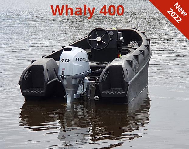 Le Whaly 400 est un bateau incroyablement robuste à double paroi fabriqué en plastique de haute qualité (Polyéthylène). Quasi-insubmersible et indestructible, cette coque nécessite peu d’entretien.