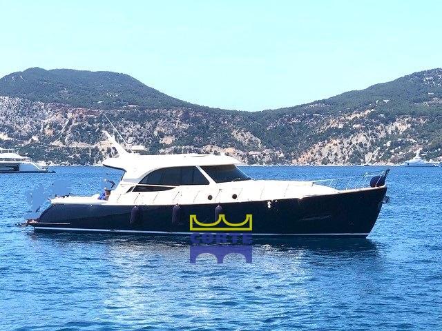 Alarme moteur, Alarme de pompe de cale, Eau sous pression, Passavant en teck, Couleur spéciale, Douche de cockpit, Phare de poursuite, Flaps hydrauliques, Garage à annexe, Hard top (elettrico), Extincteur(s) fixe(s), Lavabo dans le cockpit, Éclairage de courtoisie, Panneau solaire, Passerelle (idraulica a scomparsa), Plateforme arrière (di poppa in teak), Pompe de cale automatique, Porte latérale, Cockpit en teck, Prise de quai, Connexion eau sous pression à quai, Guindeau électrique (nuovo), Echelle de bain, Annexe, Corne, Winch électrique arrière, Winch électrique avant.