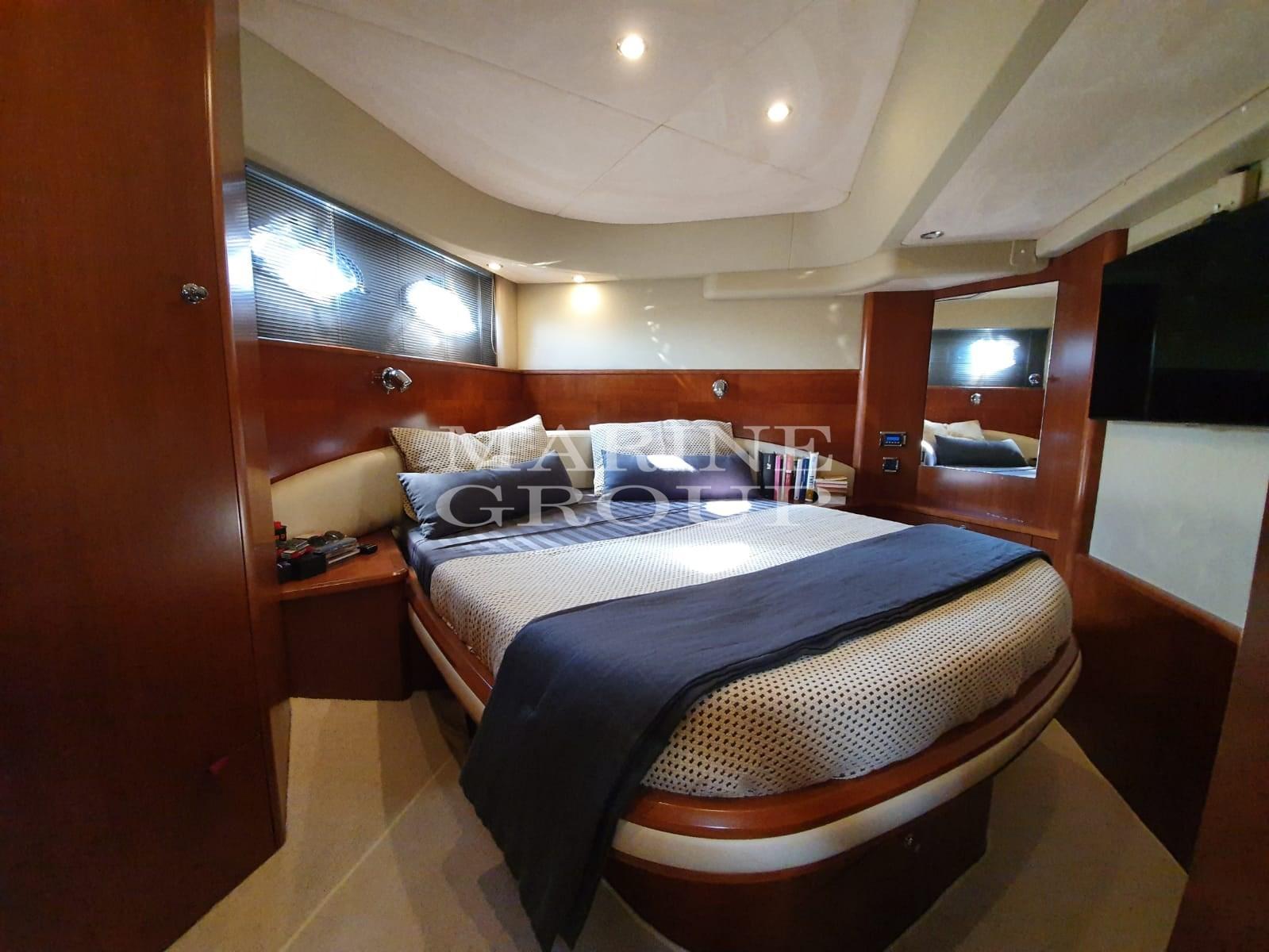 Parquet ; meubles intérieurs en bois de cerisier ; salon avec canapé « C » et cuisine entièrement équipée face à lui ; cabine double principale au milieu du navire avec salle de bain attenante ; Cabine double VIP à l’avant avec accès direct à la salle de bain ; Troisième cabine d’invités avec lits simples superposés.