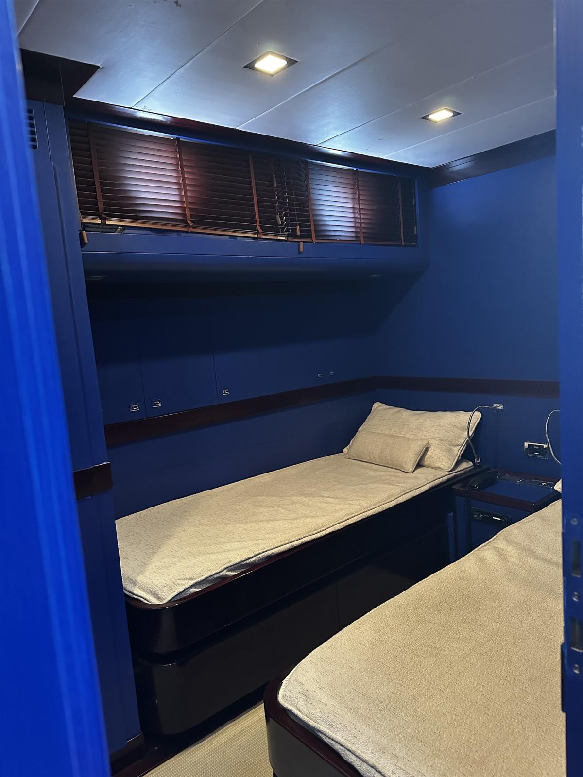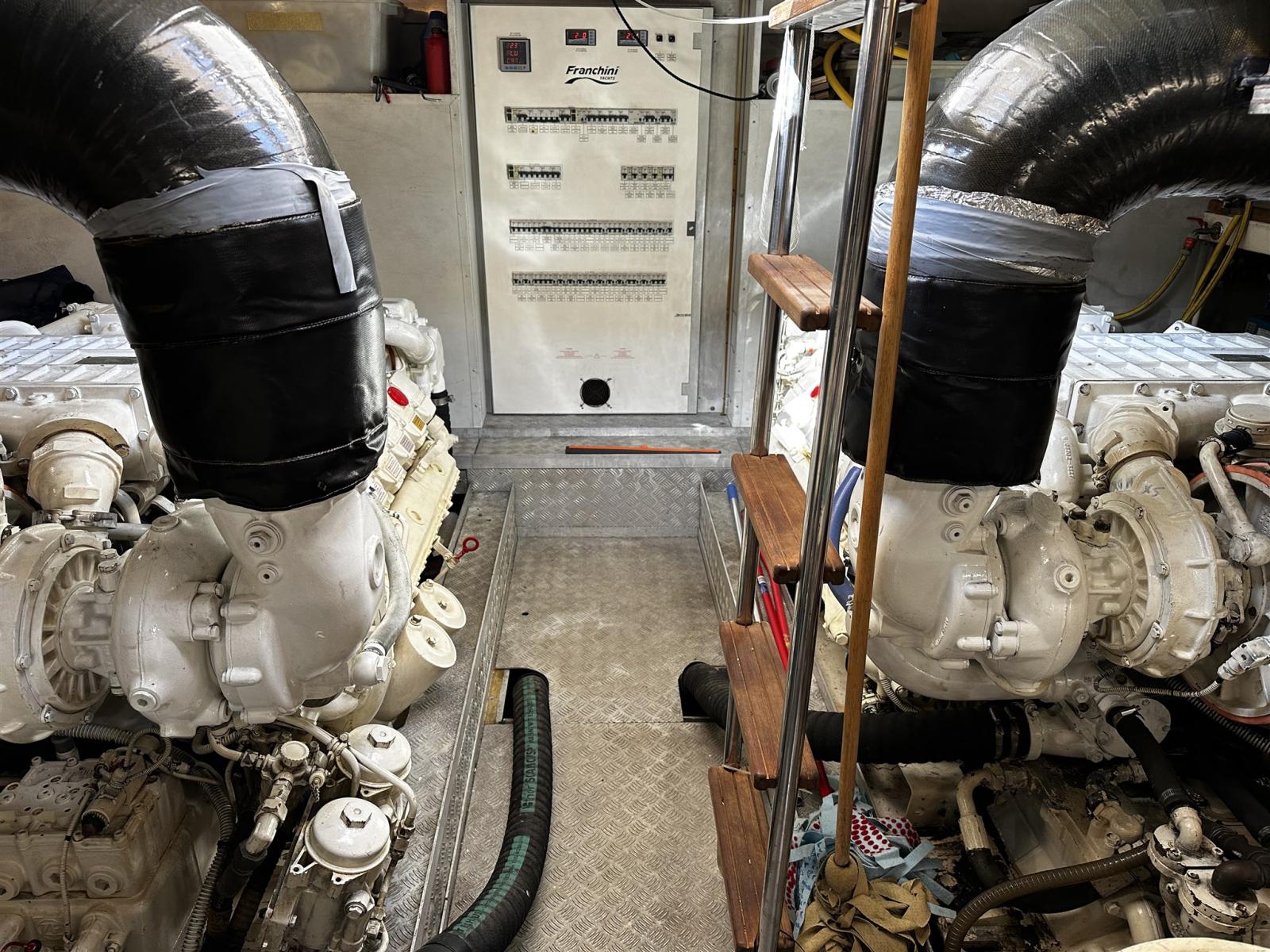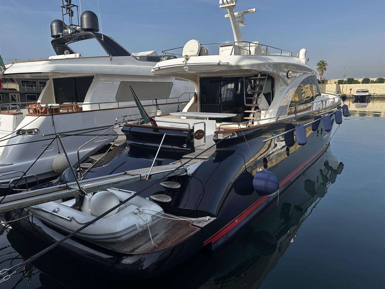 Alarme moteur, Alarme de pompe de cale, 2 Eau sous pression (Gianneschi), Radeau de sauvetage (2 grandi e uno piccolo), Batteries (12 nove 2024), Taquets pliants (solo poppa in pedana), Système de vidange (sala macchina), Passavant en teck, 3 Chargeur de batterie (Mastervolt quello grande nuovo 2024), Double barre à roue, Propulseur de poupe (Vetus), Propulseur d'étrave (Vetus 2400 Wat revisionato 2024), Phares fixes arrière, Phare de poursuite (Prua fly), Flaps hydrauliques, Garage à annexe (Da revisionare l'apertura), Extincteur(s) fixe(s), Compresseur de plongée (Doppia pomba 75000 VTU), Indicateurs de flaps, Lavage de chaine, Lavabo dans le cockpit, Éclairage de courtoisie, Passerelle (IDRAULICA), Plateforme arrière (Idraulica Opac Mare), Pompe de cale automatique, Pompe de cale manuelle, Porte latérale (Acciao Opac Mare), 2 Porte latérale (in cucina e salone elettriche), Cockpit en teck, Prise de quai, Connexion eau sous pression à quai, 2 Onduleur (uno e' per i generatori), Guindeau électrique (Lofrans), Echelle de bain (elettrica Opac Mare), Selles pour Annexe, table de cockpit (Teak verniciato), Table pliante de salon, Annexe (Aer Marine 2.40), Filières avec sortie latèrale, Corne, 2 Winch électrique (poppa), 2 Winch électrique arrière (Lofrans).