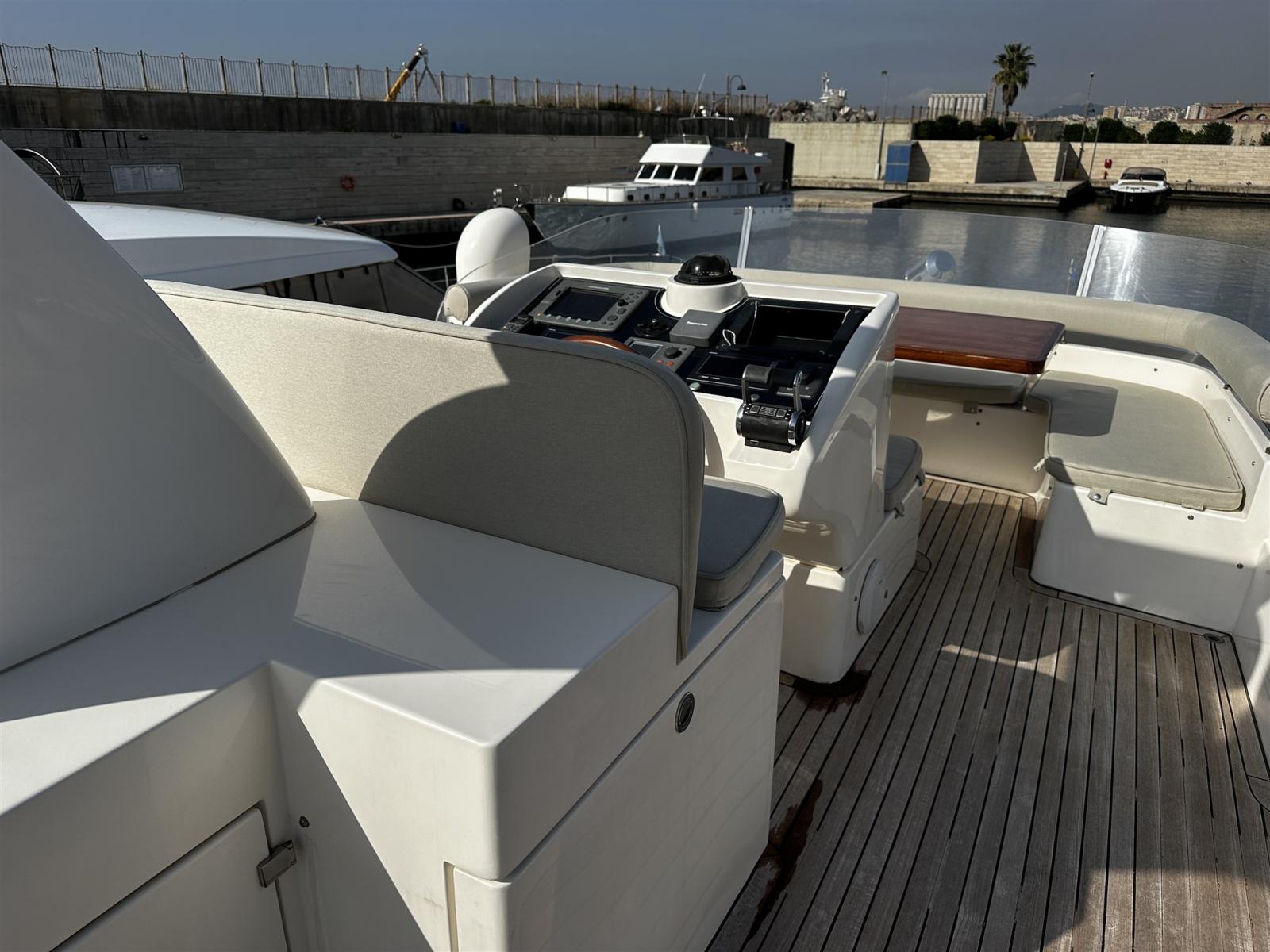 Indicateur d'angle de barre, Antenne radar (raymarine), Commande électrique (3 postazioni), Ordinateur fixe de bord (Naviop ricondizionato), Compteur de chaîne, Sondeur pêche (raymarine), GPS (raymarine E 120 plancia E 80 Fly), Ordinateur de bord, Interphone, Pilote automatique (Raymarine), Radar (Raymarine), Radio VHF (Raymarine Ray 240 E), Siège copilote (2 posti panchetta).