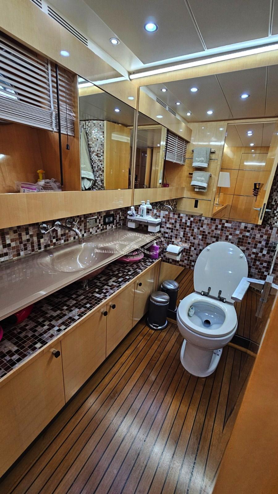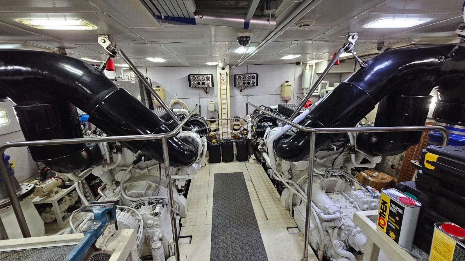 Plateforme arrière pour tender - troisième poste de contrôle à la poupe - propulseur hydraulique à l’avant - passerelle hydraulique - climatisation Condaria dans toutes les cabines et salle des machines - Onan 2 générateurs de 27 kW - Machine à eau - antenne TV par satellite - TV dans le salon et dans toutes les cabines - TV rétractable dans le cockpit - escalier intérieur pour accéder à la porte volante - toilettes de jour - double réfrigérateur et congélateur - four - plaque électrique - double évier - plans de travail en marbre - machine à laver Miele - Sèche-linge Miele - coussins complets - pont solaire à la proue - toit bimini - garage tender à la poupe - jet tender - système Hammann de traitement des eaux noires - bar humide à la volée avec évier, réfrigérateur tiroir en acier inoxydable et machine à glace - Système audio fusion sur la passerelle aérienne.