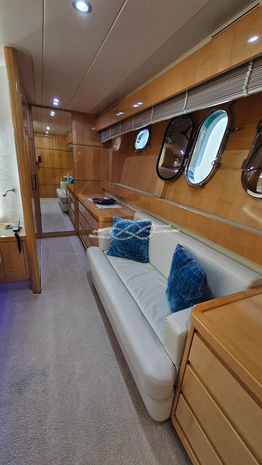 remplacement de tout le cuir de la sellerie intérieure du salon et des cabines par du cuir clair - remplacement de la moquette de l’habitacle - parquet dans le salon et la timonerie - remplacement de tous les projecteurs par des lumières LED (intérieures et extérieures) - nouveau canapé dans le cockpit - laque légère du mobilier de cuisine - remplacement du réfrigérateur de cuisine (en acier) - remplacement de la table à manger et de la table à manger par deux nouvelles tables en érable - remplacement de toutes les plaques d’interrupteurs internes - remplacement de Toutes les tentes et cabines de salon - nouvel auvent bimini sur le pont volant - nouveau lave-vaisselle.
