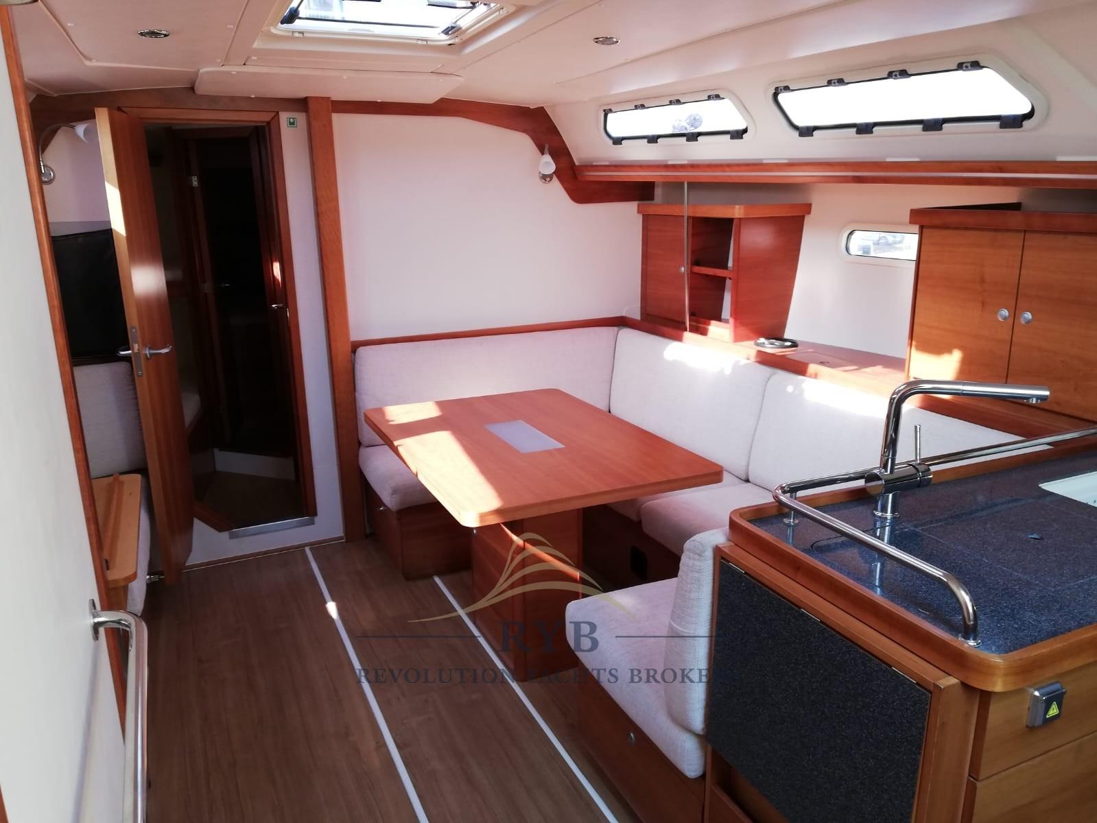 Eau sous pression, Double barre à roue, Propulseur d'étrave (a scomparsa), Éclairage de courtoisie, Plateforme arrière (apribile), Cockpit en teck, Prise de quai, Guindeau électrique, Gréement monotoron (nuovo 2019), table de cockpit (Custom tipo solaris), 6 Winch.