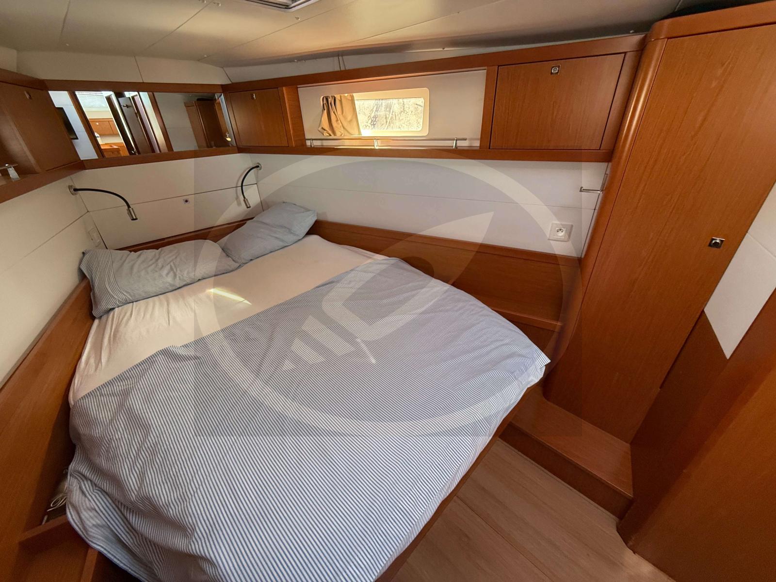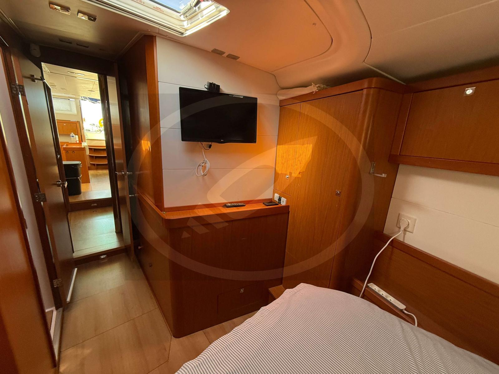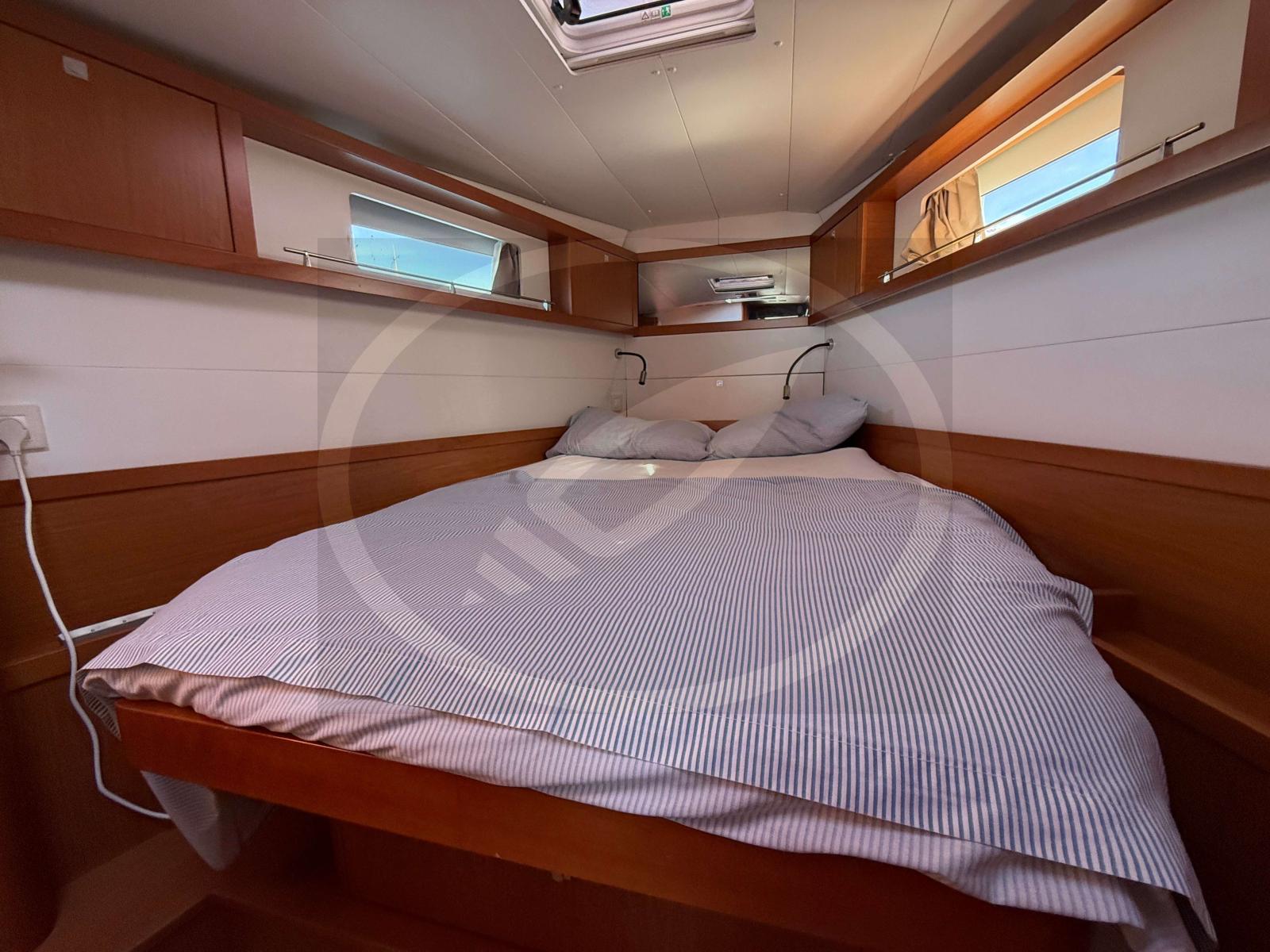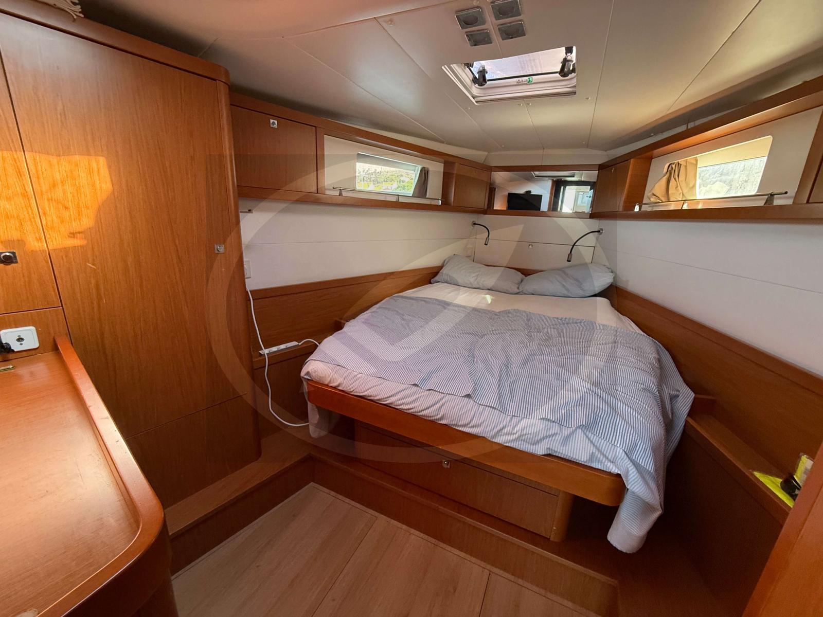 À l’intérieur, l’espace est baigné de luminosité naturelle grâce à de larges vitrages panoramiques. Cette version 3 cabines propose un aménagement luxueux et fonctionnel, idéal pour les longues croisières en toute intimité. Chaque détail, signé Nauta Design, a été pensé pour offrir une circulation fluide et une atmosphère sereine, proche de celle d'un loft flottant.